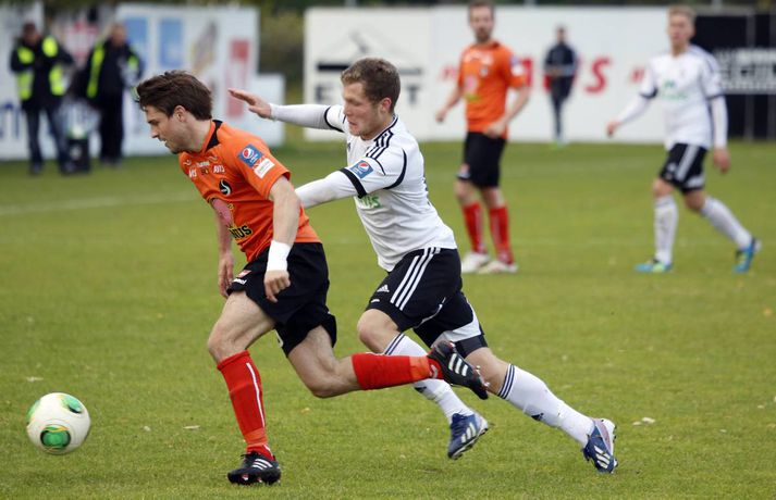 Fylkir og FH mættust á Fylkisvellinum í dag í 19. umferð Pepsi-deildar karla í leik sem myndi falla í gleymskunnar dá ef ekki væri fyrir að úrslit leiksins væru skráð. Leikurinn fór hægt af stað og var mikil stöðubarátta og leikmenn áttu erfitt með að koma boltanum á samherja í fyrri hálfleik. Völlurinn hefur litið betur út má segja og gæti það verið hugsanleg ástæða fyrir því að ekki var mikið um gæði í spilamennsku liðanna. Það fór meira fyrir baráttu leikmanna í þessum leik. Markverðustu atriði fyrri hálfleiks bera þess keim um hvernig leikurinn spilaðist. Davíð Þór Viðarsson fékk gult spjald fyrir tæklingu sem Magnús Þórisson mat sem tveggja fóta en Davíð náði boltanum hreint af Fylkismanninum en Magnús ákvað að veifa gula spjaldinu. Fjórum mínútum seinna lá Davíð í grasinu eftir viðskipti við Ásgeir Börk sem var að skýla boltanum fyrir Davíð og slysaðist til að setja olnbogann í andlit Davíðs. Leikmenn FH vildu fá Ásgeir rekinn af velli en dómari leiksins var ekki á sama máli. Magnús Þórisson dómari, þurfti síðan að skipta sér sjálfum af velli eftir um hálftíma leik og inn á í hans stað kom Erlendur Eiríksson. Þetta er því í annað skiptið í sumar sem skipta þarf um dómara í Árbænum. Fyrri hálfleikur rann út og liðin gengu jöfn til búningsherbergja. Seinni hálfleikur var afrit af þeim fyrri, einkenndist af baráttu og misheppnuðum sendingum og örfáum færum. Engin af færunum eru verð þess að ræða þau eitthvað nánar. Á 74. mínútu leiksins var Atla Viðari Björnssyni skipt inn á í stað Alberts Brynjars Ingasonar og átti hann eftir að hafa mikil áhrif á úrslit leiksins. Fjórtán mínútum síðar fékk hann knöttinn inn í vítateig Fylkis, með varnarmann í bakinu. Hann sneri varnarmanninn snyrtilega af sér og setti boltann síðan á milli fóta Bjarna í markinu og yfir línuna. Staðan orðin 0-1 og FH-ingar létu forystuna ekki af hendi þangað til Erlendur flautaði leikinn af. Eftir leikinn heldur FH enn í við KR sem samt sem áður á tvo leiki inni á þá og verður því að teljast lítil von um að FH nái að landa Íslandsmeistaratitlinum þetta árið. Fylkir er ekki alveg sloppið við falldrauginn en sex stig eru í fallsætið, þeir verða því að halda áfram og reyna að tryggja sæti sitt í næstu leikjum.Davíð Þór Viðarsson: Vantar drápseðlið inn í teig „Þetta var erfiður leikur í dag, Fylkir er náttúrulega með gott lið og þetta var mjög tæpt en við náðum að pota inn einu marki þarna í lokin,“ sagði sigurreifur Davíð Þór Viðarsson, leikmaður FH, eftir sigur sinna manna í Árbænum í kvöld. Aðspurður um hvernig leikurinn leit við honum sagði Davíð: „Við vorum alveg ágætir seinustu 25 mínúturnar í fyrri hálfleik, þá vorum við að halda boltanum ágætlega og náðum að skipta honum á milli kanta en það vantaði þetta síðasta hjá okkur. Eins og er búið að vanta hjá okkur í allt sumar, þetta drápseðli inn í teig“. „Ég var að heyra að KR hafi unnið þannig að það er orðið vonlítið að við náum þeim en við þurfum þá bara að einbeita okkur að Evrópusætinu. Það er ekki orðið öruggt þannig að við þurfum að vinna þá leiki sem eftir eru,“ sagði Davíð að lokum um stöðuna í deildinni og möguleika FH á Íslandsmeistaratitlinum.Ásmundur Arnarsson: Mest svekkjandi að tapa svona Ásmundur Arnarsson var spurður að því hvort það hafi ekki verið svekkjandi að tapa þessum leik sem var jafn alveg þangað til í blálokin. „Þetta eru mest svekkjandi leikirnir, þegar þú ert búinn að vera að berjast fyrir hlutunum allan tímann. Ég verð samt að hrósa strákunum fyrir vinnuframlagið og baráttuna. Skipulagið hélt lengst af, þeir sköpuðu sér lítið og það lá í loftinu að leikurinn myndi fjara út markalaus og auðvitað vill maður að þetta falli sín megin en þeir hafa Atla Viðar og hann er alltaf líklegur til að skora.“ „Það var mjög fátt í þessu, völlurinn náttúrulega erfiður og menn voru ekki að ná að skapa sér neitt af viti. Það komu smá spilkaflar en að mínu mati hefði 0-0 verið sanngjarnt miðað við hvernig þetta spilaðist," sagði Ásmundur um hvernig leikurinn spilaðist. Aðspurður um seinustu leikina og fallbaráttuna hafði Ásmundur þetta að segja: „Við erum fræðilega séð ekki lausir ennþá við fallbaráttuna þannig að við þurfum að halda áfram og taka síðustu leikina á fullu og taka inn fleiri stig.“Heimir Guðjónsson: Það var frábært að vinna þennan leik Heimir Guðjónsson, þjálfari FH, var að vonum ánægður með sigur sinna manna í dag. „Það var frábært að vinna þennan leik, hann var jafn og við byrjuðum ekki hálfleikana vel en við unnum okkur inn í þá og Atli Viðar kom inn á og kláraði þetta fyrir okkur. Fylkir er náttúrulega með mjög gott lið, gott skipulag og með góða leikmenn. Við sáum það bara í seinasta leik þegar þeir unnu Breiðablik 4-1 það var því sterkt að koma hingað og fá þrjú stig." Um spilamennskuna í leiknum hafði Heimir að segja: „Ég hef oft séð betri leik heldur en þennan en ég hef líka séð þá verri, ég kom hérna í fyrra og kvartaði undan vellinum þannig að ég ætla ekki að gera það í dag." Hann var inntur eftir því hvort völlurinn hafi spilað mikið inn í frammistöðu leikmanna í dag. „Nei nei, við unnum þennan leik og það er frábært.“ Heimir var spurður hvort það væri einhver möguleiki á að ná KR að stigum og sagði, „Nei, KR vann held ég þannig að við þurfum bara að fókusera á að klára Evrópusætið. Stjarnan er náttúrulega að spila seinna í kvöld og Breiðablik á morgun og eru bæði lið mjög öflug þannig að við þurfum að hafa okkur alla