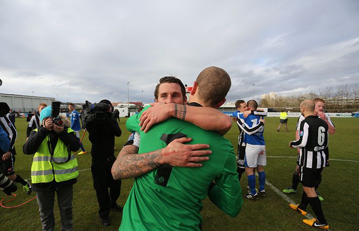Myndir frá sigurhátið KR-inga 28. september 2013 17:49 Hannes Þór og Baldur með bikarinn í dag. myndir/daníel KR-ingar lyftu Íslandsbikarnum í dag en þeir eru verðskuldaðir Íslandsmeistarar í knattspyrnu árið 2013. KR vann Fram, 2-1, í lokaleik sínum í Pepsi-deildinni og settu um leið stigamet. Það var mikið um dýrðir í Vesturbænum í dag og Daníel Rúnarsson, ljósmyndari Vísis og Fréttablaðsins, myndaði stemninguna. Afraksturinn má sjá hér að ofan.mynd/daníel Pepsi Max-deild karla Mest lesið Albert svaraði eftir að hafa verið sakaður um hugleysi Fótbolti Óli Jó kallar ráðninguna á Jóa Kalla algjört bull Íslenski boltinn „Hann er með einhverjar Ibiza-myndir af Slot“ Enski boltinn Dæmd í fjögurra ára fangelsi Fótbolti Þriggja ára strákur setti heimsmet í skák Sport „Ég myndi bróka hann inn í klefa“ Körfubolti Búist við að Salah verði hent úr hóp Enski boltinn Langhlauparar í meiri hættu að fá krabbamein Sport „Hortugasta klapp sem ég hef séð“ Körfubolti Sér bara eina leið fyrir Salah: „Komi og biðjist innilega afsökunar“ Enski boltinn Fleiri fréttir Óli Jó kallar ráðninguna á Jóa Kalla algjört bull „Ég elska þig Ísland, takk fyrir allt!“ Sextán ára með fernu fyrir meistara Víkings Valur dregur sig úr Bose-bikarnum „Sagði bara við hann: Djöfulsins fíflið þitt“ Yngir upp í allt of gamalli deild Þróttur keypti Adam Árna frá Grindavík Ástæðan fyrir því að Þorlákur hætti: „Ég var ekki hrifinn af þessu“ Þorlákur sagði upp störfum hjá ÍBV Þrjár ungar KR-konur leggja skóna á hilluna Murielle elti Óskar í Garðabæinn Segir dökk ský yfir íslensku knattspyrnuhreyfingunni Rúnar sækir gamlan félaga sinn inn í þjálfarateymið Fór frá því að mæta á landsliðsæfingu í það að vera fárveikur í öndunarvél Jasmín kom til að vinna titla og er farin frá Val Framlengir við Breiðablik og nálgast fimm hundruð leikina KSÍ skiptir um mótakerfi og smíðar nýjan vef Damir Muminovic til Grindavíkur Vestramenn sækja son sinn suður Einn fljótasti leikmaður Bestu deildarinnar orðinn Þróttari Aron Jó leystur undan samningi hjá Val Kynntu fyrst Loga Ólafs en svo Jóa Kalla sem á að koma FH á toppinn Atli kveður KR og flytur norður Theodór Elmar hættur hjá KR Hrannar Bogi inn eftir brotthvarf Caulkers Segir ónefndan aðila hafa unnið gegn sér hjá Breiðabliki Alex Freyr frá Fram í Njarðvík Víkingar fá ungan og spennandi kantmann Nýliðarnir fá níutíu leikja mann Jónatan og formaður hissa á tali um KR-löngun Sjá meira