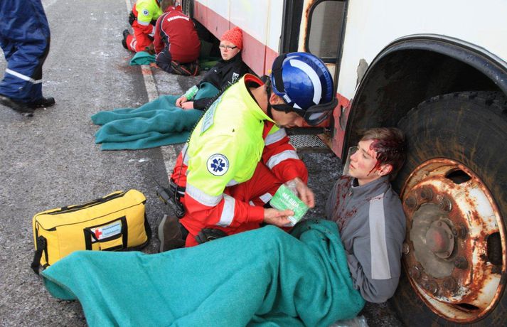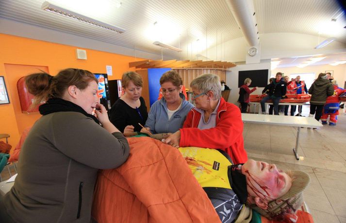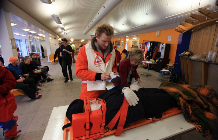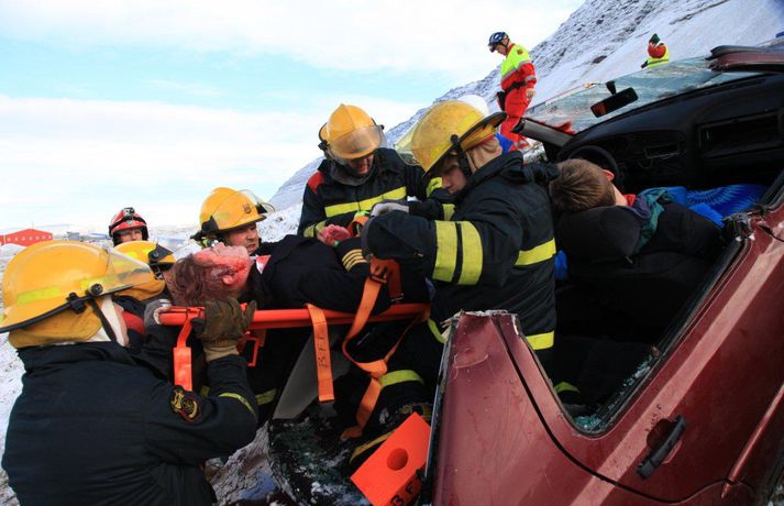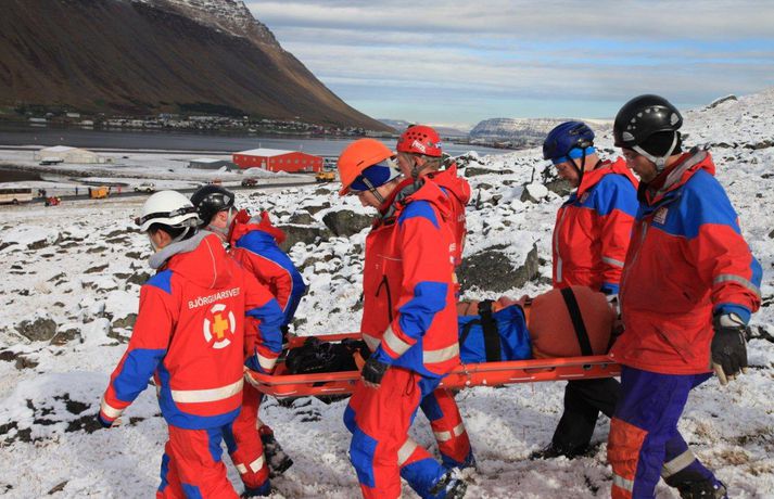 Fjölmenn slysa- og björgunaræfing fór fram í dag 28. september 2013 17:24 Ýmis krefjandi verkefni biðu björgunarmannanna á æfingunni í morgun. Í dag fór fram fjölmenn slysa- og björgunaræfing á Ísafjarðarflugvelli á vegum Ísavía, almannavarna og annarra viðbragðsaðila. Æfingin var liður í að samhæfa björgunaraðgerðir ef til flugslyss kemur. Í morgun var hafist handa við að undirbúa slasaða sem komið var fyrir víðs vegar á hinum ímyndaða slysstað. Það voru síðan ýmis krefjandi verkefni sem biðu björgunarmanna og sjúkraliða. Æfingin þótti takast vel en síðar verður farið yfir niðurstöður með þeim sem tóku þátt. Mest lesið Vaktin: Mikilvæg fundarhöld í Washington Erlent Verðandi sendiherra grínaðist með að Ísland yrði 52. ríkið Erlent Hneykslan meðal kennara vegna rangfærslna Ingu í Kastljósi Innlent Stóri-Boli boðar breytingar og klassískt vetrarveður Innlent Kaus að styðja karlasamtök í stað lögreglu Innlent Kannast ekki við lýsingar leigubílstjóra Innlent Boðaður á fund í ráðuneytinu með stuttum fyrirvara Innlent Verði að bregðast við vinsældum meintra iðnaðarmanna á Facebook Innlent Trump segir Nielsen í vondum málum Erlent Trump sýndi verkamanni puttann Erlent Fleiri fréttir Á batavegi eftir alvarlega líkamsárás á Höfða Léttara yfir formanninum eftir þriggja tíma fund Fékk afa sinn með sér á skólabekk Lögregluaðgerð beint gegn áfengissölu í Kópavogi Boðaður á fund í ráðuneytinu með stuttum fyrirvara Sögulegur fundur um framtíð Grænlands Tveir fulltrúar taka þátt í aukinni hernaðarviðveru Tveir handteknir vegna alvarlegrar líkamsárásar Kaus að styðja karlasamtök í stað lögreglu Ræddu undanþágu losunarheimilda Brutu stjórnsýslulög við útgáfu hvalveiðileyfis Jafnlaunavottunin verður lögð af á þessu ári Ljósvistarhönnuður hoppar hæð sína af gleði vegna breytinga Skoða dóma MDE í ráðuneyti og refsiréttarnefnd Hneykslan meðal kennara vegna rangfærslna Ingu í Kastljósi „Látið undan þrýstingi stóru fyrirtækjanna í búvöruframleiðslu“ Stóri-Boli boðar breytingar og klassískt vetrarveður Bleikja strauk út í sjó úr landeldi Fundað um Grænland og Inga vill aðgreina eftir íslenskukunnáttu Dómur MDE hljóti að vera stjórnvöldum alvarlegt umhugsunarefni Á skilorði eftir að hafa kýlt, skallað og bitið konu sína Verði að bregðast við vinsældum meintra iðnaðarmanna á Facebook Baráttan um Samfylkinguna í borginni nálgast suðumark 90 prósentum landsmanna þótti skaupið gott Kannast ekki við lýsingar leigubílstjóra Alþingi kemur saman í dag eftir jólafrí Vongóð um stuðning Miðflokksins Spyr hvort það hafi borgað sig að koma Flokki fólksins til valda Notað á Íslandi þrátt fyrir að hafa mistekist annars staðar Bláklukka bar þremur lömbum á bænum Viðvík í Skagafirði Sjá meira