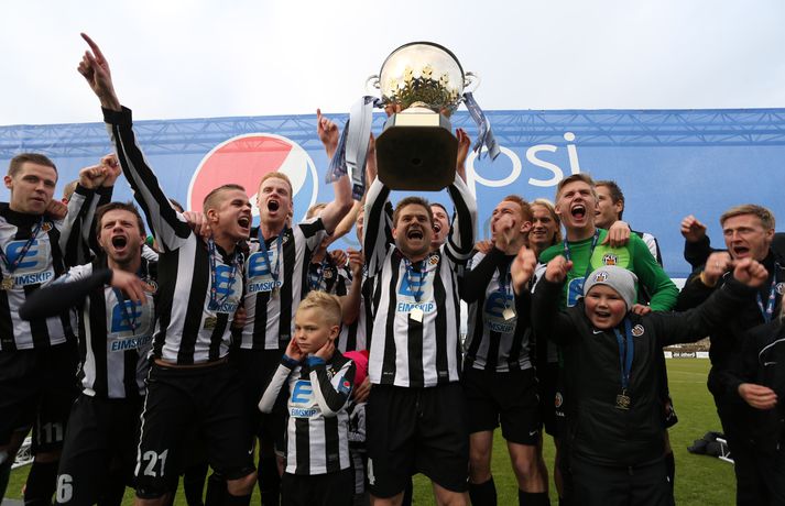 Umfjöllun, viðtöl, einkunnir og myndir: KR-Fram 2-1 | KR setti met Henry Birgir Gunnarsson skrifar 28. september 2013 00:01 KR-ingar lyfta bikarnum í dag. mynd/daníel Íslandsmeistarar KR kláruðu tímabilið með stæl og settu um leið stigamet í efstu deild karla. KR vann nauman sigur á Fram í dag. KR-ingar fóru gríðarlega vel af stað gegn sofandi Frömurum og fengu færi á fyrstu mínútunum til þess að komast yfir. Þeir nýttu þau ekki. Það voru síðan gestirnir sem tóku forystuna. Viktor Bjarki komst inn í teiginn hægra megin. Alls ekki í sérstöku færi en honum var sléttsama og smurði boltann upp í fjærskeytin á sínum gamla heimavelli. Stórbrotið mark. KR-ingar fengu sín færi í hálfleiknum en voru of værukærir er þeir komust í færi. Vantaði allt drápseðlil í þá. Þar af leiðandi leiddu Framarar í hálfleik. Það ætlaði ekki að ganga hjá KR að skora þar til þeir fengu vítaspyrnu. Þá var ýtt á bak Grétars Sigfinns og víti dæmt. Gary Martin tók vítið, spyrnan var skelfileg og Ögmundur varði. Martin var samt heppinn, náði frákastinu og náði með naumindum að koma boltanum í netið. Martin lagði svo upp sigurmarkið fyrir varamanninn Emil Atlason. Átti magnaða sendingu í teiginn á Emil sem kláraði færið vel. Leikurinn bar þess merki að lítið væri undir en það voru þó ágætis tilþrif á köflum. KR er verðskuldaður meistari.Baldur: Mjög stoltur Baldur Sigurðsson hefur átt frábært tímabil hjá KR og að margra mati besti leikmaður tímabilsins. "Ég er að vinna þennan titil í annað skiptið og get ekki neitað því að það venst rosalega vel. Ég er hrikalega stoltur," sagði Mývetningurinn kátur. "Við unnum tvöfalt 2011 og núna erum við að setja stigamet. Það var frábært að koma til baka í ár eftir vonbrigðatímabil í fyrra."Brynjar Björn ætlar ekki að hætta Brynjar Björn Gunnarsson snéri heim í uppeldisfélagið fyrir tímabilið eftir farsælan atvinnumannaferil. "Þetta verður skemmtilegra með hverju árinu. Maður er aldrei of gamall til að vinna titla," sagði Brynjar en verður hann áfram með KR? "Ég verð áfram eins lengi og ég get. Ég reikna með því að spila áfram. Það er engin ástæða til þess að hætta á meðan maður hefur gaman af þessu."Bjarni: Rosalega sætt "Þetta er yndislegt og eins sætt og það verður. Það eru forréttindi að fá að taka þátt í svona ævintýri," sagði Bjarni Guðjónsson, fyrirliði KR, eftir leikinn. "Það er seigla og samheldni í þessu liði. Það er það sem skilar okkur þessum titli. Það eiga allir þátt í þessum titli og eiga hann líka skilinn. "Titillinn 2011 var rosalega sætur út af því hvernig árið spilaðist. Þessi er einnig mjög sætur út af vonbrigðunum í fyrra. Það er ekki hægt að bera þessa titla saman. Þetta er missætt en frábært. "KR hlýtur að halda áfram að styrkja sig og bæta sig. Mér finnst við hafa verið að gera það. Við hljótum að vilja gera betur í Evrópukeppni og halda áfram að keppa um þennan titil. Ég hef aldrei haft eins gaman af þessu og núna. Ég veit ekki hvað ég á að gera klukkan fimm annað en að fara á æfingu. Ef KR vill hafa mig áfram þá verð ég áfram."Kjartan: Allt erfiðið er þess virði í dag "Þessi titill lagar allt. Allt erfiðið og annað er þess virði þegar maður uppsker svona. Ég hef verið á annarri löppinni en samt getað hjálpað og það er gaman," sagði framherjinn Kjartan Henry Finnbogason glaðbeittur eftir leik. "Ég get vonandi komið enn sterkari til leiks á næsta ári. Ég er á leið í aðgerð í næsta mánuði og krossa bara fingur að það muni allt ganga vel. Ég ætla að taka þann tíma sem þarf til þess að jafna mig. "Nú verður fagnað vel með okkar stuðningsmönnum. Við erum búnir að bíða lengi eftir þessum degi. Nú lyftum við bikarnum og fáum okkur svo einn til tvo."Emil: Ótrúleg sending hjá Gary Emil Atlason var hetja KR í dag er hann kom af bekknum og skoraði sigurmark leiksins. "Það var æðisleg tilfinning að skora sigurmarkið," sagði Emil og brosti allan hringinn. "Ég hitti boltann vel en það var ótrúlegt hvernig Gary fór að því að koma boltanum til mín. Þetta var bara ótrúleg tilfinning."Jónas Guðni: Ekkert mál að gíra sig í leikinn "Þetta er æðislegt. Geðveik tilfinning," sagði brosmildur Jónas Guðni Sævarsson eftir leikinn í dag. "Að sjálfsögðu vildum við vinna með alla þessa frábæru áhorfendur á bak við okkur. Það var ekkert mál að gíra sig upp fyrir þennan leik," sagði Jónas Guðni en voru þeir að reyna að hjálpa Gary Martin að skora? "Nei, við vildum bara spila okkar leik og ef við gerðum það þá myndi hann fá sín færi." Pepsi Max-deild karla Mest lesið Albert svaraði eftir að hafa verið sakaður um hugleysi Fótbolti Óli Jó kallar ráðninguna á Jóa Kalla algjört bull Íslenski boltinn „Hann er með einhverjar Ibiza-myndir af Slot“ Enski boltinn Dæmd í fjögurra ára fangelsi Fótbolti Þriggja ára strákur setti heimsmet í skák Sport „Ég myndi bróka hann inn í klefa“ Körfubolti Búist við að Salah verði hent úr hóp Enski boltinn Langhlauparar í meiri hættu að fá krabbamein Sport „Hortugasta klapp sem ég hef séð“ Körfubolti Sér bara eina leið fyrir Salah: „Komi og biðjist innilega afsökunar“ Enski boltinn Fleiri fréttir Óli Jó kallar ráðninguna á Jóa Kalla algjört bull „Ég elska þig Ísland, takk fyrir allt!“ Sextán ára með fernu fyrir meistara Víkings Valur dregur sig úr Bose-bikarnum „Sagði bara við hann: Djöfulsins fíflið þitt“ Yngir upp í allt of gamalli deild Þróttur keypti Adam Árna frá Grindavík Ástæðan fyrir því að Þorlákur hætti: „Ég var ekki hrifinn af þessu“ Þorlákur sagði upp störfum hjá ÍBV Þrjár ungar KR-konur leggja
