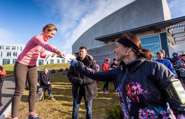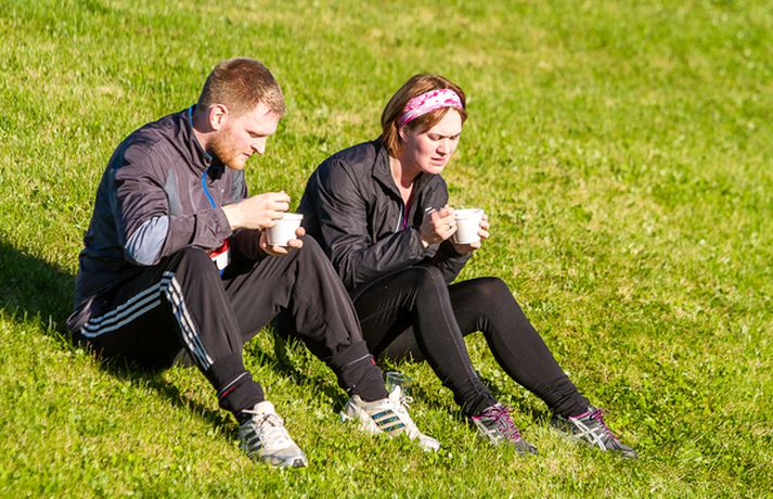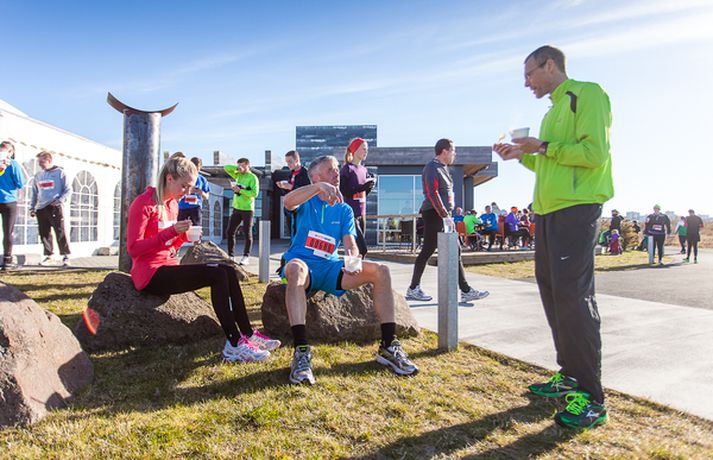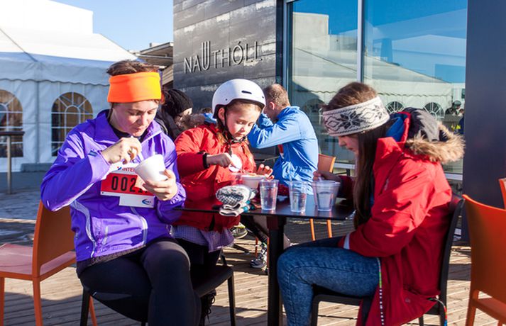 Yfir 500 manns, börn og fullorðnir, hlupu í sannkallaðri haustblíðu um Fossvog og Nauthólsvík um helgina þegar Nauthólshlaupið svokallaða fór fram í annað sinn. Þetta er mikil fjölgun frá því í fyrra þegar um 100 manns tóku þátt í hlaupinu. Það voru staðarhaldarar á veitingastaðnum Nauthól sem stóðu fyrir hlaupinu í samvinnu við Hlaup.is og var boðið upp á tvær vegalengdir, 5 og 10 km hlaup með endastöð við Nauthól í Nauthólsvík. Í lok hlaupsins beið hlauparanna dýrindis graskerssúpa úr eldhúsi meistarakokksins Eyþórs Rúnarssonar, sem gegnir stöðu yfirmatreiðslumanns á Nauthól. Eins og sést á meðfylgjandi myndum þá blandaðist skærlitaður fatnaður hlaupafólksins skemmtilega við haustlitina í Öskjuhlíðinni á meðan sólin skein á heiðum himni.Guðríður María Jóhannesdóttir, framkvæmdastjóri og eigandi Nauthóls segir að þátttakan í hlaupinu hafi farið fram úr hennar björtustu vonum en fimmfalt fleiri hlupu í ár en í fyrra. „Við fengum hugmyndina að því að standa fyrir árlegu hlaupi hérna í fyrra. Við horfum á borgarbúa hjóla, ganga og hlaupa hér framhjá á göngustígnum allt árið um kring og okkur langaði að tengjast þessu fólki betur. Enda er Nauthóll vinsæl stoppistöð fólks sem nýtur útivistar hér í náttúruparadísinni í Nauthólsvík og Öskjuhlíð. Það kostar ekkert í hlaupið, við drögum út ýmsa matarvinninga og svo þykir fólki þessi hlaupaleið bara svo ótrúlega falleg hérna í Fossvoginum, svo maður tali ekki um í svona fallegu veðri eins og við fengum í dag. Þetta var alveg yndislegt og við viljum þakka öllum sem komu að skipulagningu Nauthólshlaupsins með okkur í ár sem og veðurguðunum sem komu með þessa bongóblíðu til okkar í dag.“Smelltu á efstu mynd í frétt til að skoða allar myndirnar í albúminu.Nautholl.isGuðríður María eigandi Nauthóls og Eyþór Rúnarsson matreiðslumaður með meiru.Heit gómsæt súpa beið hlauparanna þegar þeir komu í mark.Þessar konur sáu um að taka á móti hlaupurunum við marklínuna.Þreytan var mismikil eftir hlaup.