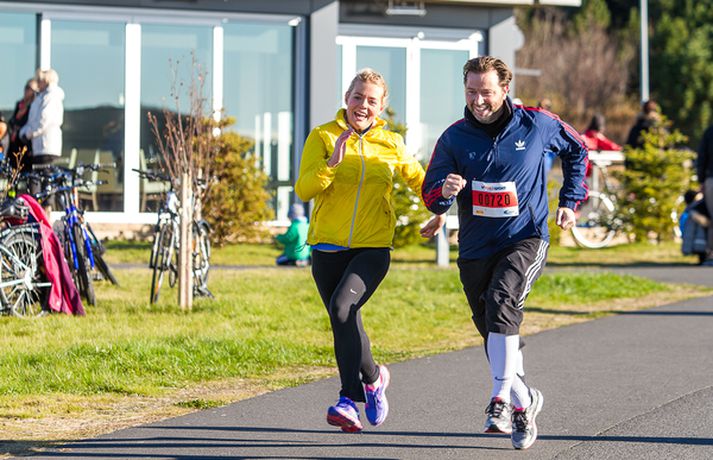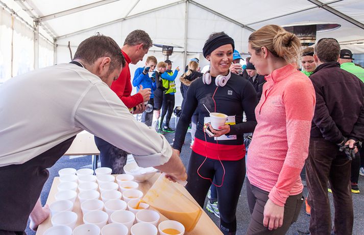 Þarna var gleðin greinilega við völd Ellý Ármanns skrifar 7. október 2013 14:30 Smelltu á myndina og notaðu örvarnar á lyklaborðinu til að skoða allt albúmið. Yfir 500 manns, börn og fullorðnir, hlupu í sannkallaðri haustblíðu um Fossvog og Nauthólsvík um helgina þegar Nauthólshlaupið svokallaða fór fram í annað sinn. Þetta er mikil fjölgun frá því í fyrra þegar um 100 manns tóku þátt í hlaupinu. Það voru staðarhaldarar á veitingastaðnum Nauthól sem stóðu fyrir hlaupinu í samvinnu við Hlaup.is og var boðið upp á tvær vegalengdir, 5 og 10 km hlaup með endastöð við Nauthól í Nauthólsvík. Í lok hlaupsins beið hlauparanna dýrindis graskerssúpa úr eldhúsi meistarakokksins Eyþórs Rúnarssonar, sem gegnir stöðu yfirmatreiðslumanns á Nauthól. Eins og sést á meðfylgjandi myndum þá blandaðist skærlitaður fatnaður hlaupafólksins skemmtilega við haustlitina í Öskjuhlíðinni á meðan sólin skein á heiðum himni.Guðríður María Jóhannesdóttir, framkvæmdastjóri og eigandi Nauthóls segir að þátttakan í hlaupinu hafi farið fram úr hennar björtustu vonum en fimmfalt fleiri hlupu í ár en í fyrra. „Við fengum hugmyndina að því að standa fyrir árlegu hlaupi hérna í fyrra. Við horfum á borgarbúa hjóla, ganga og hlaupa hér framhjá á göngustígnum allt árið um kring og okkur langaði að tengjast þessu fólki betur. Enda er Nauthóll vinsæl stoppistöð fólks sem nýtur útivistar hér í náttúruparadísinni í Nauthólsvík og Öskjuhlíð. Það kostar ekkert í hlaupið, við drögum út ýmsa matarvinninga og svo þykir fólki þessi hlaupaleið bara svo ótrúlega falleg hérna í Fossvoginum, svo maður tali ekki um í svona fallegu veðri eins og við fengum í dag. Þetta var alveg yndislegt og við viljum þakka öllum sem komu að skipulagningu Nauthólshlaupsins með okkur í ár sem og veðurguðunum sem komu með þessa bongóblíðu til okkar í dag.“Smelltu á efstu mynd í frétt til að skoða allar myndirnar í albúminu.Nautholl.isGuðríður María eigandi Nauthóls og Eyþór Rúnarsson matreiðslumaður með meiru.Heit gómsæt súpa beið hlauparanna þegar þeir komu í mark.Þessar konur sáu um að taka á móti hlaupurunum við marklínuna.Þreytan var mismikil eftir hlaup. Mest lesið Krummi kveður pabba sinn Lífið „Ég hef grátið því að ég var svo skotin í þér“ Lífið Rákust á Mamdani yfir morgunbollanum Lífið Joy Harmon er látin Bíó og sjónvarp „Það er verið að kalla hana n-orðinu“ Lífið Fengið sinn skerf af áföllum í lífinu Lífið „Þetta lið á Akureyri vildi ekki gefa mér gullið“ Lífið Leikaraliðið í Leitinni að Gollri fullskipað: Jamie Dornan verður Aragorn Lífið Þetta er áratugurinn sem samtíminn saknar mest Lífið Gaylord Focker deyr ekki drottni sínum Bíó og sjónvarp Fleiri fréttir Svona er dagskrá Barnamenningarhátíðar í ár „Það er verið að kalla hana n-orðinu“ Fjölbreyttur hópur í dómnefnd Ungfrúar Íslands Fengið sinn skerf af áföllum í lífinu Krummi kveður pabba sinn Leikaraliðið í Leitinni að Gollri fullskipað: Jamie Dornan verður Aragorn Oddvitaáskorunin: Myndi vilja vera „sérfræðingur að sunnan“ Rákust á Mamdani yfir morgunbollanum Þetta er áratugurinn sem samtíminn saknar mest Hvað veistu um... Vetrarólympíuleika? Mætti í þáttinn til að vinna sér inn fyrir þurrkara Frumfluttu lag Barnamenningarhátíðarinnar fyrir káta krakka „Ég hef grátið því að ég var svo skotin í þér“ Uppeldið hjá ömmu og afa áhrifamest „Þetta lið á Akureyri vildi ekki gefa mér gullið“ Gurrý um svuntuaðgerðina: „Jesús hvað þetta er búið að vera erfitt“ Clavicular fluttur á spítala vegna ætlaðrar ofskömmtunar Oddvitar landsins takast á við Oddvitaáskorunina Óvænt ökuferð að ógleymanlegu augnabliki Umdeildum K-Pop stjörnum skipt út í Hörpu Opnar sig um andlát kærastans eftir skotárás í New York „Svo kom í ljós að þetta var alls ekki amma mín“ „Hún reyndi aldrei að koma í stað mömmu“ „Ég var mjög skrítinn krakki“ Bryndís Líf orðin móðir Yfirgaf yfirstéttina fyrir loftárásir, listaverkarán og sprengjugerð Oddvitaáskorunin: „Big Papa“ uppáhalds gælunafnið Fyrsti transmaðurinn sem fer með aðalhlutverk í íslenskri kvikmynd Þriðja dóttir Sverris Bergmanns og Kristínar Evu komin í heiminn Óborganlegt faðmlag Jóhanns og Sigurðar Sjá meira