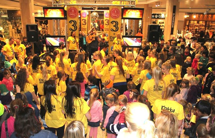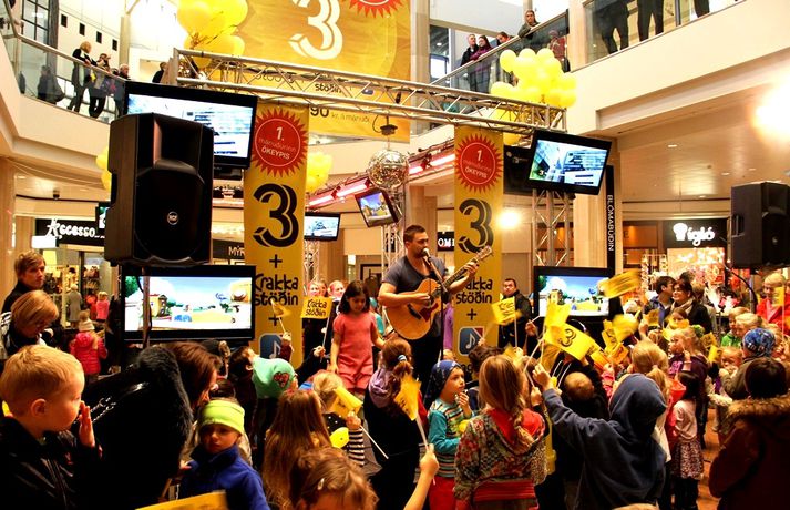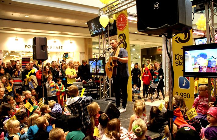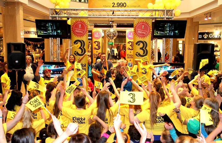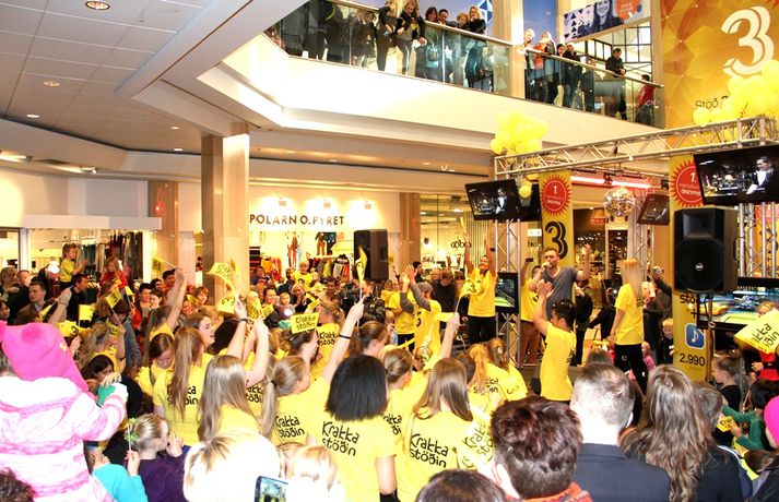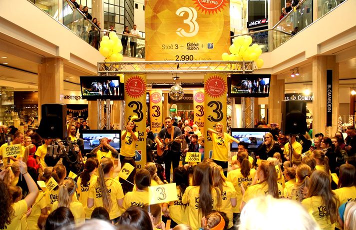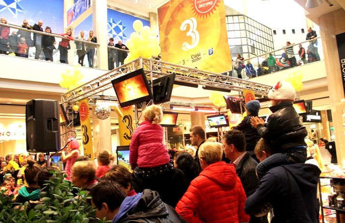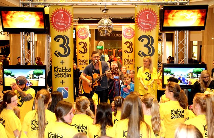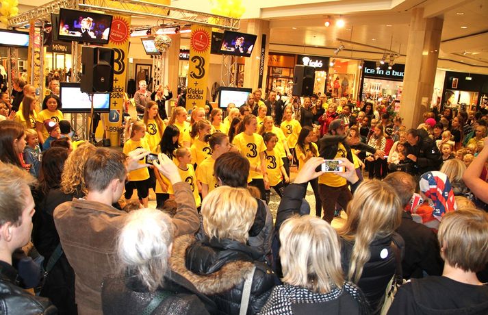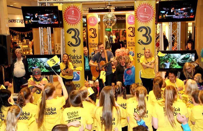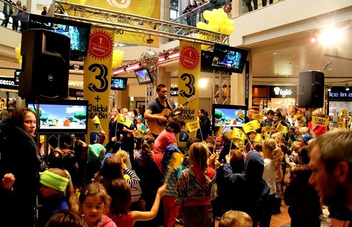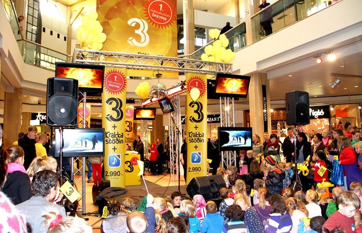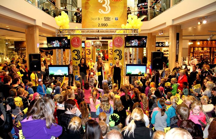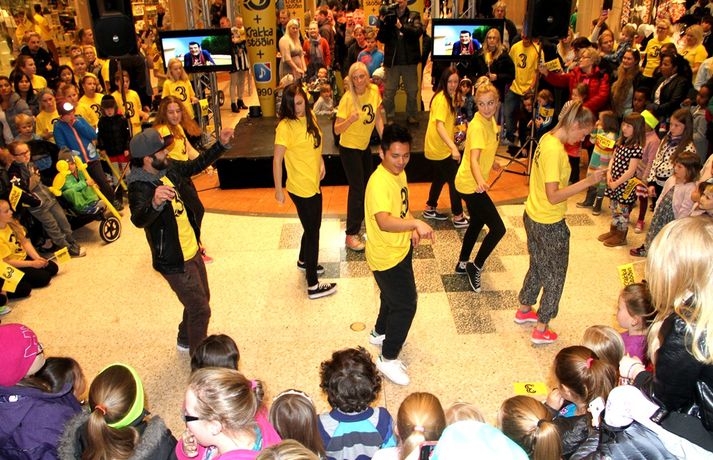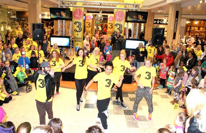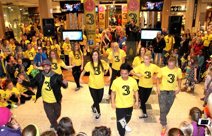 Fjölmenni var á fjölskylduskemmtun Stöðvar 3 í Kringlunni í dag. Friðrik Dór stjórnaði dagskránni með glæsibrag á milli þess sem hann söng. Unnur Eggerts söngkona og þáttastjórnandi Popp og Kók sló þetta líka svona í gegn. Þá dansaði Solla stirða og söng með aðstoð gesta. Boðið var upp á andlitsmálningu, Bjarni töframaður steig á svið og DanceCenter Reykjavík sýndi ógleymanlegt dansatriði. Hér getur þú keypt áskriftartilboð Stöðvar 3 - sjá hér. Stöð 3 seldi gestum Kringlunnar áskriftir.Bjarni töframaður, Nanna Ósk hjá DanceCenter og Frikki Dór sjónvarpsmaður og söngvari.Solla stirða vakti gríðarlega mikla lukku hjá yngri kynslóðinni.Unnur Eggerts söngkona og sjónvarpskona sló í gegn.Stemningin á Stöðvar 3 svæðinu var vægast sagt frábær. Hér er Frikki Dór að syngja um glaðasta hund í heimi.Hér má sjá nemendur frá DanceCenter Reykjavík.
