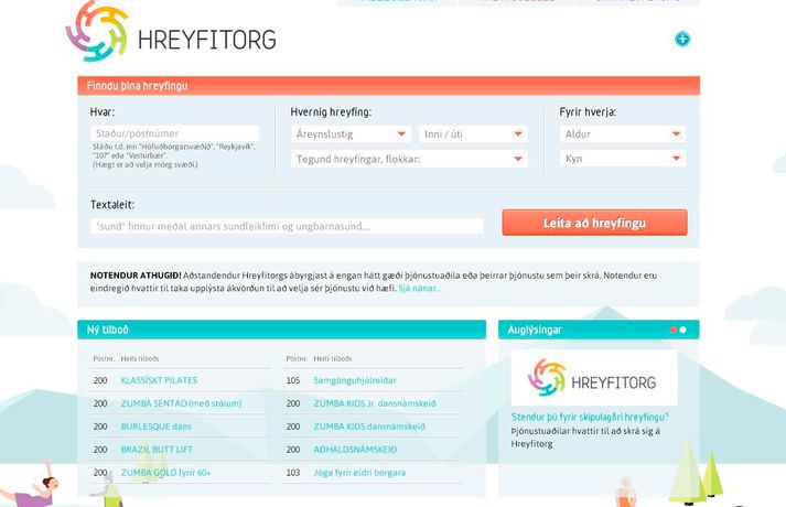 Hreyfitorg er snjallvefur, forritaður af Hugsmiðjunni, sem aðlagar sig sjálfkrafa að skjástærðinni hverju sinni eins og til dæmis á snjallsíma, spjaldtölvu eða stærri tölvu. Embætti landlæknis hafði umsjón með uppbyggingu Hreyfitorgs en Íþrótta- og Ólympíusamband Íslands hefur nú tekið við umsjón vefsins. Aðrir aðstandendur vefsins eru Félag sjúkraþjálfara, Íþróttakennarafélag Íslands, Læknafélag Íslands, Reykjalundur, Ungmennafélag Íslands og VIRK starfsendurhæfingarsjóður. Gígja Gunnarsdóttir verkefnastjóri hreyfingar hjá Embætti landlæknis fræddi okkur um vefinn.Hreyfitorg - hvad er þad og fyrir hverja? „Kannanir benda til að stór hluti landsmanna, á öllum aldri, sé ekki að hreyfa sig nóg. Það er vel þekkt að hreyfing með öðrum getur verið góður stuðningur fyrir einstaklinga að byrja að hreyfa sig reglulega og viðhalda slíkum lífsháttum," segir Gígja. „Hreyfitorgi er ætlað að auðvelda fólki á öllum aldri, hvar sem er á landinu að finna á einum stað upplýsingar um hreyfingu sem samræmist getu og áhuga hverju sinni og stuðlar að heilbrigði og vellíðan. Á þetta við hvort sem fólk er að leita eftir þjónustu fyrir sig sjálft eða fyrir aðra eins og til dæmis foreldrar fyrir börn sín eða fagfólk fyrir skjólstæðinga." „Hreyfitorgi er þannig ætlað að styðja við uppbyggingu kerfis um ávísun á hreyfingu, svonefnds Hreyfiseðils. Þjónustuaðilar sem bjóða upp á skipulagða hreyfingu sem samræmist markmiðum Hreyfitorgs geta sótt um að kynna sína þjónustu á vefnum, sér að kostnaðarlausu. Til að forðast birtingu úreldra upplýsinga fá þeir reglulega áminningu um að endurskoða skráninguna." Áhersla lögð á hreyfingu „Sérstök áhersla er lögð á að stuðla að auknu framboði á einfaldri og ódýrri hreyfingu sem flestir ættu að geta stundað. Sterkir aðilar standa að baki Hreyfitorgi sem hafa innan sinna raða öflugt net þjónustuaðila á sviði hreyfinga og góð tengsl við væntanlega notendur," segir Gígja.Þarfir fólks ólíkar „Hreyfitorg er að taka sín fyrstu skref en það er mjög ánægjulegt að sjá hvað skráningin er nú þegar fjölbreytt. Má þar sem dæmi nefna skógarjóga, íþróttaskóla fyrir fjölskylduna, líkamsrækt fyrir fólk sem hefur fengið heilablóðfall, bakleikfimi, bogfimi og margt fleira. Ég taldi mig vera nokkuð vel með á nótunum um það sem er í boði á sviði hreyfingar en er strax búin að fá upplýsingar um ýmislegt sem ég þekkti ekki til áður. Og það er frábært. Þarfir fólks eru svo ólíkar og því er mikilvægt að úrvalið sé sem fjölbreyttast. Til að endast í reglulegri hreyfingu er mikilvægt að fólk finni sína hreyfingu þ.e. hreyfingu sem því finnst skemmtileg og er hæfilega krefjandi." „Fjölbreytt úrval er sem fyrr segir af hinu góða en líkt og með aðra þjónustu er mikilvægt að neytendur séu duglegir að kynna sér málin og taka upplýsta ákvörðun til að velja hreyfingu sem samræmist þeirra þörfum. Að sama skapi þurfa þeir sem bjóða upp á skipulagða hreyfingu að vanda upplýsingagjöf og hafa viðeigandi forsendur til að standa fyrir þeirri þjónustu sem þeir bjóða upp á s.s. þekkingu, reynslu og aðstöðu. Hreyfitorgi er einmitt ætlað að auðvelda notendum og þjónustuaðilum að ná saman hvað þetta varða. Við hvetjum að sjálfsögðu alla til að smella sér inn á hreyfitorg.is hvort sem þeir vilja kynna eða finna sína hreyfingu."Hreyfitorg.isHreyfitorg.is