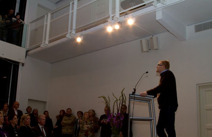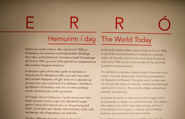 Sýning Errós sem ber yfirskriftina Heimurinn í dag var opnuð í Hafnarhúsinu um helgina að viðstöddum listamanninum. Á sýningunni eru tæplega 70 verk sem Erró hefur gefið Listasafni Reykjavíkur síðustu tvö ár.Borgarstjórinn í Reykjavík, Jón Gnarr, opnaði sýninguna og við sama tilefni hlaut Guðný Rósa Ingimarsdóttir styrk úr Listasjóði Guðmundu S. Kristinsdóttur. Sjá meira um sýninguna hér.Smelltu á efstu mynd í frétt til að skoða allar myndirnar.