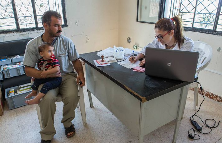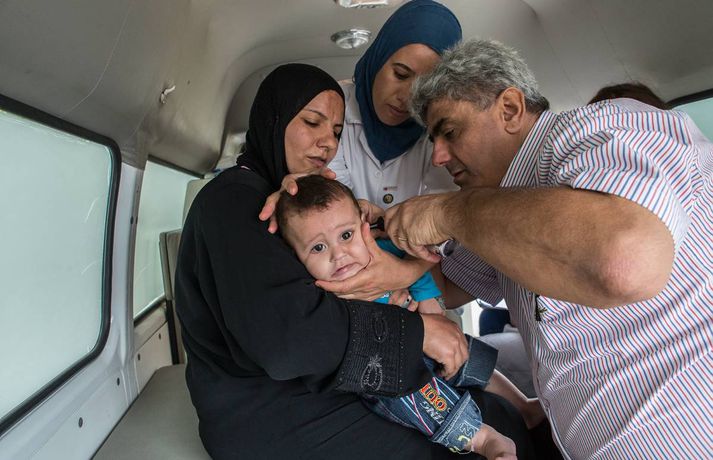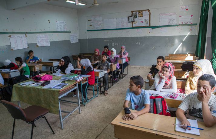 Taka flóttamönnunum opnum örmum Brjánn Jónasson skrifar 12. október 2013 10:00 Sýrlensk stúlka með móður sinni í læknisskoðun hjá Rauða krossinum. Fréttablaðið/Vilhelm Hvernig myndi Ísland taka á móti 80 þúsund flóttamönnum? Gætum við sem þjóð sinnt 200 nýjum flóttamönnum frá nágrannaríki á hverjum einasta degi? Þessi fjöldi er hlutfallslega sambærilegur við þann gríðarlega straum sýrlenskra flóttamanna sem hefur streymt yfir landamærin til Líbanon frá því borgarastyrjöldin í Sýrlandi hófst. Fyrir ríki með um fjórar milljónir íbúa er það risavaxinn biti fyrir Líbanon að taka á móti rúmlega einni milljón flóttamanna. Það er nær óvinnandi verk að taka þannig á móti þeim tveimur þúsundum sem bætast við daglega að sómi sé að. Þrátt fyrir erfiðleikana eru Sýrlendingarnir boðnir velkomnir til landsins og Líbanar taka á sig ýmiskonar skerðingar þeirra vegna, segir Þórir Guðmundsson, sviðsstjóri alþjóðasviðs Rauða kross Íslands.Sýrlensk kona betlar á götu í Beirút með barnið sitt í fanginu. Hún er ekki sú eina því fjölmargar konur og börn betla til að hafa í sig og á.Fréttablaðið/vilhelm„Líbanar taka á móti öllum þessum flóttamönnum með opnum örmum,“ segir Þórir. Hann heimsótti Líbanon nýverið ásamt Vilhelm Gunnarssyni, ljósmyndara Fréttablaðsins, til að kynnast því að eigin raun hvernig hjálparstarf Rauða krossins gengur fyrir sig. Flóttamennirnir setja gríðarlegt álag á innviði Líbanon. Skólar sem áður voru einsetnir eru nú tvísetnir, og sumir jafnvel þrísettir. Raforkuframleiðslan, sem var tæp fyrir, annar engan vegin eftirspurninni. Álagið á heilbrigðiskerfið er einnig gríðarlegt. „Þrátt fyrir allt þetta taka Líbanar vel á móti öllum þessum flóttamönnum. Það er í raun alveg stórkostlegt,“ segir Þórir.Rauði krossinn rekur þrjár færanlegar læknisstöðvar í Líbanon. Þessi móðir kom með nýfætt barn sitt og litlu dóttur sína í læknisskoðun þegar læknirinn kom í heimsókn. Fjölskyldan flúði ófriðinn í Sýrlandi, og býr nú í skólastofu í litlum bæ í Norður-Líbanon ásamt fleiri fjölskyldum.Fréttablaðið/vilhelmRauði krossinn rekur þrjár færanlegar sjúkrastöðvar sem fara á milli þorpa til að veita læknisaðstoð, auk þess sem boðið er upp á ýmiskonar fræðslu og fyrirbyggjandi aðgerðir. Stöðvarnar eru kostaðar af norska og íslenska Rauða krossinum. „Heilbrigðiskerfið í Líbanon er einkarekið, og það kostar mjög mikið að fara á spítala. Sýrlenskir flóttamenn hafa upp til hópa ekki efni á slíku, svo þessi læknisaðstoð sem Rauði krossinn er að veita, sem Íslendingar hafa lagt fé til, verður oft til þess að fólk fái læknisaðstoð sem það hefði ella ekki fengið,“ segir Þórir.Togstreita vegna flóttamanna Opinberar tölur í Líbanon segja að það séu 760 þúsund sýrlenskir flóttamenn skráðir í landinu, en flestir eru sammála um að þeir séu mun fleiri. Sumir vilja tvöfalda þá tölu, en líklegast er að flóttamennirnir séu að lágmarki rúm milljón. Þetta er ekki í fyrsta skipti sem flóttamenn streyma yfir landamæri Sýrlands og Líbanon, en síðast þegar það gerðist lá straumurinn í hina áttina. Mikill fjöldi líbanskra flóttamanna fengu hæli í Sýrlandi á meðan fimmtán ára borgarastyrjöld í Líbanon geisaði. Mörgum Líbönum finnst því mikilvægt að launa greiðann.Heilbrigðisþjónustan í Líbanon er einkarekin og því mjög dýrt að leita til læknis. Margir sækja því í læknisþjónustu á vegum Rauða krossins, eins og faðir þessarar stúlku sem varð aðeins um í læknisskoðuninni. Þó læknisþjónustan sé vel sótt voru ekki miklar raðir þennan daginn, rúmlega tíu foreldrar biðu með börnin sín eftir því að hitta lækninn.Fréttablaðið/vilhelmÞrátt fyrir að Líbanar taki óhikað við flóttamönnum frá Sýrlandi ber sífelt meira á togstreitu milli Sýrlendinga og heimamanna í Líbanon. Sumir flóttamannanna hafa einhverja peninga milli handanna og stofna matsölustaði eða önnur lítil fyrirtæki sem keppa við þau sem fyrir voru. Aðrir taka vinnu sem býðst, þó launin séu langt undir því sem Líbanar myndu sætta sig við. „Ég varð ekki var við þetta, en við vitum að það kemur upp ýmiskonar núningur,“ segir Þórir. Hann segir fólk gera það sem það geti til að bjarga sér. Margar sýrlenskra fjölskyldur lifa af tekjum barna sem eru send í vinnur út á akur. Einu tekjur fjölskyldu sem hann hitti koma frá dreng sem erfiðar rúma sextán tíma á sólarhring í marvöruverslun.Foreldrar sem koma með börnin sín í læknisskoðun fá einnig fræðslu um hreinlæti, sjúkdóma og annað sem þau þurfa að vita. Rauði krossinn býður einnig upp á ýmiskonar sálrænan stuðning, einkum fyrir konur og börn. Þá eru myndaðir hópar þar sem spjallað er um það sem fólkinu liggur á hjarta.Fréttablaðið/vilhelmÓttast átök í Líbanon Pólitískt ástand í Líbanon hefur verið óstöðugt undanfarið, og óttast margir að átökin í Sýrlandi geti orðið til þess að upp úr sjóði í landinu. Það yrði enn hræðilegra en ella í ljósi þess mikla fjölda sýrlenskra flóttamanna sem hafa flúið átökin til Líbanon. „Það væri hrikalegt ef átökin færðust yfir til Líbanon,“ segir Þórir. „Það er mikil spenna í landinu eftir borgarastyrjöldina, en flestir Líbanar virðast staðráðnir í að láta það ekki gerast. Ég sé ekki að spennan sé að ná þeim hæðum að það sé mikil hætta á átökum.“Börn flóttamanna þurfa menntun eins og önnur börn. Í þessum skóla í Shatila-flóttamannabúðunum í Beirút mæta palestínsk börn í skólann fyrir hádegi, og þessir Sýrlensku krakkar fá sína menntun eftir hádegi.Fréttab