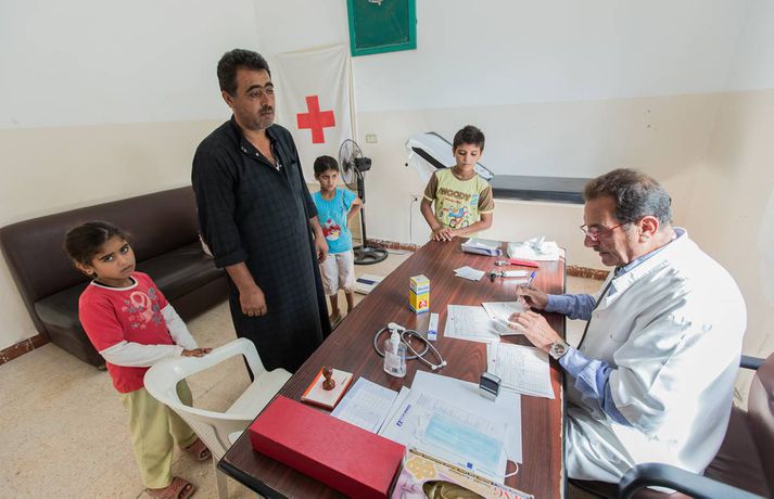 Hvernig myndi Ísland taka á móti 80 þúsund flóttamönnum? Gætum við sem þjóð sinnt 200 nýjum flóttamönnum frá nágrannaríki á hverjum einasta degi? Þessi fjöldi er hlutfallslega sambærilegur við þann gríðarlega straum sýrlenskra flóttamanna sem hefur streymt yfir landamærin til Líbanon frá því borgarastyrjöldin í Sýrlandi hófst. Fyrir ríki með um fjórar milljónir íbúa er það risavaxinn biti fyrir Líbanon að taka á móti rúmlega einni milljón flóttamanna. Það er nær óvinnandi verk að taka þannig á móti þeim tveimur þúsundum sem bætast við daglega að sómi sé að. Þrátt fyrir erfiðleikana eru Sýrlendingarnir boðnir velkomnir til landsins og Líbanar taka á sig ýmiskonar skerðingar þeirra vegna, segir Þórir Guðmundsson, sviðsstjóri alþjóðasviðs Rauða kross Íslands.Sýrlensk kona betlar á götu í Beirút með barnið sitt í fanginu. Hún er ekki sú eina því fjölmargar konur og börn betla til að hafa í sig og á.Fréttablaðið/vilhelm„Líbanar taka á móti öllum þessum flóttamönnum með opnum örmum,“ segir Þórir. Hann heimsótti Líbanon nýverið ásamt Vilhelm Gunnarssyni, ljósmyndara Fréttablaðsins, til að kynnast því að eigin raun hvernig hjálparstarf Rauða krossins gengur fyrir sig. Flóttamennirnir setja gríðarlegt álag á innviði Líbanon. Skólar sem áður voru einsetnir eru nú tvísetnir, og sumir jafnvel þrísettir. Raforkuframleiðslan, sem var tæp fyrir, annar engan vegin eftirspurninni. Álagið á heilbrigðiskerfið er einnig gríðarlegt. „Þrátt fyrir allt þetta taka Líbanar vel á móti öllum þessum flóttamönnum. Það er í raun alveg stórkostlegt,“ segir Þórir.Rauði krossinn rekur þrjár færanlegar læknisstöðvar í Líbanon. Þessi móðir kom með nýfætt barn sitt og litlu dóttur sína í læknisskoðun þegar læknirinn kom í heimsókn. Fjölskyldan flúði ófriðinn í Sýrlandi, og býr nú í skólastofu í litlum bæ í Norður-Líbanon ásamt fleiri fjölskyldum.Fréttablaðið/vilhelmRauði krossinn rekur þrjár færanlegar sjúkrastöðvar sem fara á milli þorpa til að veita læknisaðstoð, auk þess sem boðið er upp á ýmiskonar fræðslu og fyrirbyggjandi aðgerðir. Stöðvarnar eru kostaðar af norska og íslenska Rauða krossinum. „Heilbrigðiskerfið í Líbanon er einkarekið, og það kostar mjög mikið að fara á spítala. Sýrlenskir flóttamenn hafa upp til hópa ekki efni á slíku, svo þessi læknisaðstoð sem Rauði krossinn er að veita, sem Íslendingar hafa lagt fé til, verður oft til þess að fólk fái læknisaðstoð sem það hefði ella ekki fengið,“ segir Þórir.Togstreita vegna flóttamanna Opinberar tölur í Líbanon segja að það séu 760 þúsund sýrlenskir flóttamenn skráðir í landinu, en flestir eru sammála um að þeir séu mun fleiri. Sumir vilja tvöfalda þá tölu, en líklegast er að flóttamennirnir séu að lágmarki rúm milljón. Þetta er ekki í fyrsta skipti sem flóttamenn streyma yfir landamæri Sýrlands og Líbanon, en síðast þegar það gerðist lá straumurinn í hina áttina. Mikill fjöldi líbanskra flóttamanna fengu hæli í Sýrlandi á meðan fimmtán ára borgarastyrjöld í Líbanon geisaði. Mörgum Líbönum finnst því mikilvægt að launa greiðann.Heilbrigðisþjónustan í Líbanon er einkarekin og því mjög dýrt að leita til læknis. Margir sækja því í læknisþjónustu á vegum Rauða krossins, eins og faðir þessarar stúlku sem varð aðeins um í læknisskoðuninni. Þó læknisþjónustan sé vel sótt voru ekki miklar raðir þennan daginn, rúmlega tíu foreldrar biðu með börnin sín eftir því að hitta lækninn.Fréttablaðið/vilhelmÞrátt fyrir að Líbanar taki óhikað við flóttamönnum frá Sýrlandi ber sífelt meira á togstreitu milli Sýrlendinga og heimamanna í Líbanon. Sumir flóttamannanna hafa einhverja peninga milli handanna og stofna matsölustaði eða önnur lítil fyrirtæki sem keppa við þau sem fyrir voru. Aðrir taka vinnu sem býðst, þó launin séu langt undir því sem Líbanar myndu sætta sig við. „Ég varð ekki var við þetta, en við vitum að það kemur upp ýmiskonar núningur,“ segir Þórir. Hann segir fólk gera það sem það geti til að bjarga sér. Margar sýrlenskra fjölskyldur lifa af tekjum barna sem eru send í vinnur út á akur. Einu tekjur fjölskyldu sem hann hitti koma frá dreng sem erfiðar rúma sextán tíma á sólarhring í marvöruverslun.Foreldrar sem koma með börnin sín í læknisskoðun fá einnig fræðslu um hreinlæti, sjúkdóma og annað sem þau þurfa að vita. Rauði krossinn býður einnig upp á ýmiskonar sálrænan stuðning, einkum fyrir konur og börn. Þá eru myndaðir hópar þar sem spjallað er um það sem fólkinu liggur á hjarta.Fréttablaðið/vilhelmÓttast átök í Líbanon Pólitískt ástand í Líbanon hefur verið óstöðugt undanfarið, og óttast margir að átökin í Sýrlandi geti orðið til þess að upp úr sjóði í landinu. Það yrði enn hræðilegra en ella í ljósi þess mikla fjölda sýrlenskra flóttamanna sem hafa flúið átökin til Líbanon. „Það væri hrikalegt ef átökin færðust yfir til Líbanon,“ segir Þórir. „Það er mikil spenna í landinu eftir borgarastyrjöldina, en flestir Líbanar virðast staðráðnir í að láta það ekki gerast. Ég sé ekki að spennan sé að ná þeim hæðum að það sé mikil hætta á átökum.“Börn flóttamanna þurfa menntun eins og önnur börn. Í þessum skóla í Shatila-flóttamannabúðunum í Beirút mæta palestínsk börn í skólann fyrir hádegi, og þessir Sýrlensku krakkar fá sína menntun eftir hádegi.Fréttablaðið/vilhelmLíbanon í hnotskurn Mannfjöldi: Um 4,1 milljónir áætlað. Síðasta manntal var gert 1932 og hefur ekki verið endurtekið af pólitískum ástæðum.Höfuðborg: Bei