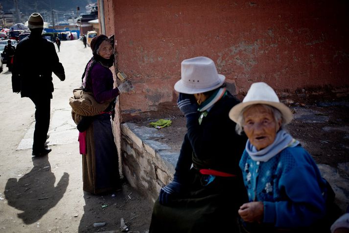 Segir yfirvöld sverta mannorð Tíbeta sem hafa kveikt í sér Guðsteinn Bjarnason skrifar 23. október 2013 11:30 Tíbetar fyrir utan hof skammt frá Labrang munkaklaustrinu í Xaihe. Mynd/AP Fjölskylda Tíbeta, sem kveikti í sjálfum sér í október árið 2012, hefur mátt sæta ásökunum lögreglu um að hafa hagnast á dauða hans. Frændi mannsins segir ekkert hæft í þessum áburði yfirvalda. „Miklu hefur verið logið um Sangay Gaytso og aðra sem hafa kveikt í sjálfum sér,” segir frændinn, sem ekki vill láta nafns síns getið af ótta við hefndaraðgerðir yfirvalda. Sangay Gaytso var 27 ára þegar hann kveikti í sér þann 6. október árið 2012. Þetta gerði hann til að mótmæla því ranglæti, sem tíbetska þjóðin hefur mátt þola af hálfu kínverskra yfirvalda á undanförnum áratugum. Stuttu eftir að hann lést kom lögreglan heim til fjölskyldu hans, spurði undarlegra spurninga og virtist vera með svörin á reiðum höndum: Var ekki búið að skipuleggja sjálfsíkveikjuna fyrirfram? Var hann ekki í tengslum við tíbetska aðskilnaðarsinna í öðrum löndum? Fékk fjölskyldan ekki greiddar þrjár milljónir júana fyrir þessa mótmælaaðgerð? Yfirvöldin héldu því fram að Gaytso hafi verið óforbetranlegur þjófur og kvennabósi. Honum hafi verið att út í að kveikja í sjálfum sér í þeim tilgangi að kynda undir þjóðernishatur meðal Tíbeta í garð Kínverja. „Þetta var allt saman tóm vitleysa,” segir frændinn í viðtali við AP fréttastofuna. Sjaldgæft er að fjölmiðlar fái tækifæri til að ræða eftirlitslaust við íbúa í Tíbet, sem Kínverjar innlimuðu árið 1951. Frá árinu 2009 hafa meira en 120 Tíbetar gripið til þessa örþrifaráðs, að kveikja í sjálfum sér til að vekja athygli á mannréttindabrotum gagnvart Tíbetum. Þeir sem þetta gera hafa ýmist komið úr röðum munka eða almennings, karlar jafnt sem konur og á ýmsum aldri. Mest lesið Gaf fingurinn á Miklubraut Innlent „Ég hef aldrei upplifað annan eins harm“ Innlent Ný könnun Maskínu: „Væri alveg ný staða í íslenskum stjórnmálum“ Innlent Breiddi út faðminn fyrir rasista: „Þið þurfið ekki að biðjast afsökunar á að vera hvít lengur“ Erlent Hundrað og fjörutíu milljarða bótakrafa á Samherja sé súrrealísk Innlent Hrindir af stað söfnun fyrir móður stúlkunnar sem lést í Suður-Afríku Innlent Hyggst kæra dyraverði Auto til lögreglu Innlent „Ótrúlega sorglegt að pabbi sé búinn að vera svona lengi í þessari stöðu“ Innlent Ársæll hringdi beint í utanríkisráðherra eftir fundinn Innlent „Þetta hefur verið þungur tími“ Innlent Fleiri fréttir „Bandaríkin eiga ekki að taka yfir Grænland“ Nýr ritstjóri stöðvaði umfjöllun um brottvísanir Trump Breiddi út faðminn fyrir rasista: „Þið þurfið ekki að biðjast afsökunar á að vera hvít lengur“ Sprengdu rússneskan hershöfðingja í loft upp í Moskvu Undirbúningur árásarinnar stóð yfir í marga mánuði Trump skipar sendifulltrúa fyrir Grænland Segir unnið að því að móta sameiginlega nálgun Bandaríkjanna, Úkraínu og Evrópu Sýknaður af nauðgun eftir að hafa verið skimaður fyrir sjaldgæfri svefnröskun Málið sem Trump getur ekki losað sig við Grunaður um manndráp eftir að tveggja ára drengur féll úr blokk Fóru um borð í vélvana rússneskt skip Baulað á Albanese á minningarathöfn á Bondi-strönd Kvarta yfir ritskoðun Epstein-skjala: „Við vitum ekki hvað við vitum ekki“ Níu skotnir til bana á krá Sextán ára fékk greitt fyrir að færa Epstein stúlkur Ljósmyndir horfnar úr Epstein-skjölunum, þar á meðal ein af Trump Vilja dauðarefsingu af borðinu vegna hagsmunaáreksturs ráðherra Pútín sagður hafa valið Witkoff Gerðu umfangsmiklar árásir gegn ISIS í Sýrlandi Það helsta úr fyrsta skammti Epstein-skjalanna Epstein-skjölin birt Draga tilvist neðanjarðarhafs á Títan í efa Réðust á skip úr skuggaflotanum þúsundir kílómetra frá Úkraínu Enn fleiri myndir úr safni Epsteins: „En hún vill þúsund dali fyrir hverja stúlku“ Trump vill til tunglsins fyrir 2028 Herða reglur og ráðast í endurkaup á skotvopnum Morðinginn í Brown háskóla fannst látinn Evrópa samþykkir 90 milljarða evra lán til Úkraínu Rannsaka tengsl skotárásarinnar við annað morð Sex um borð í einkaþotu sem hrapaði Sjá meira