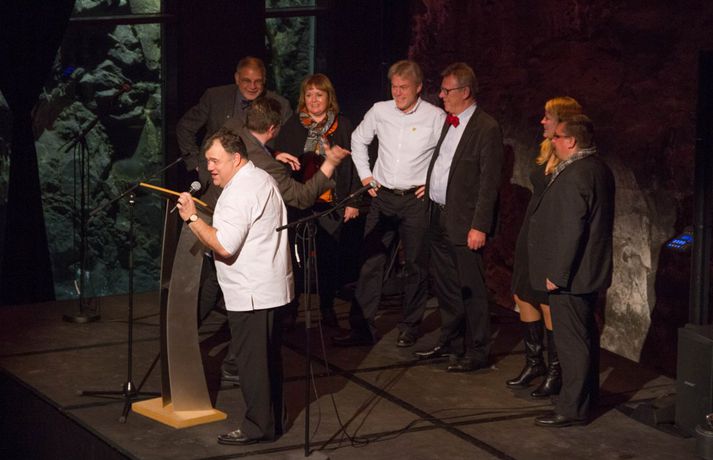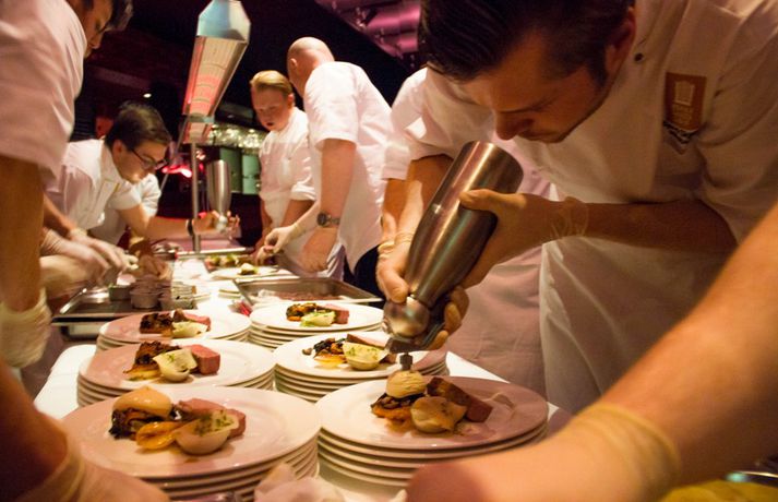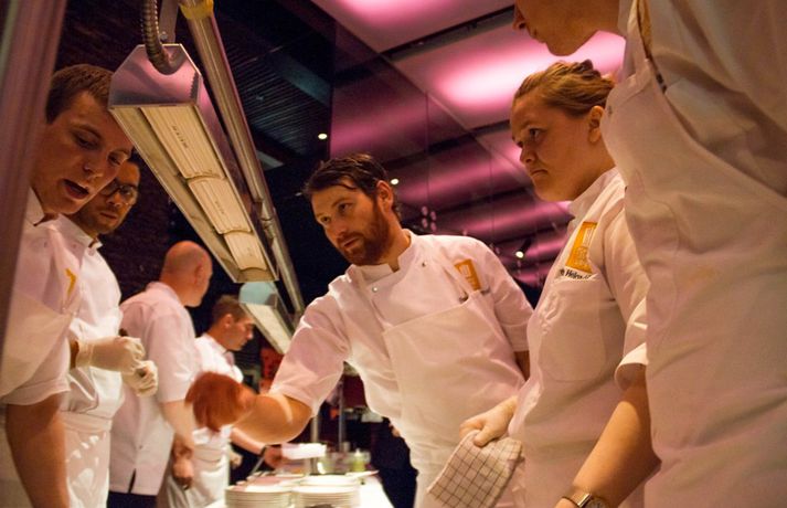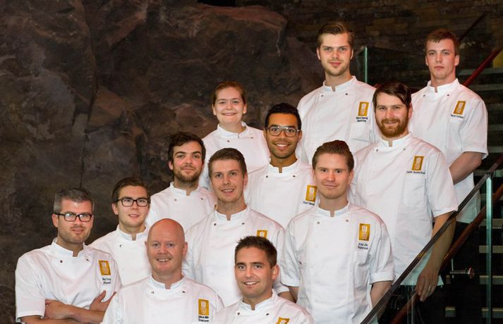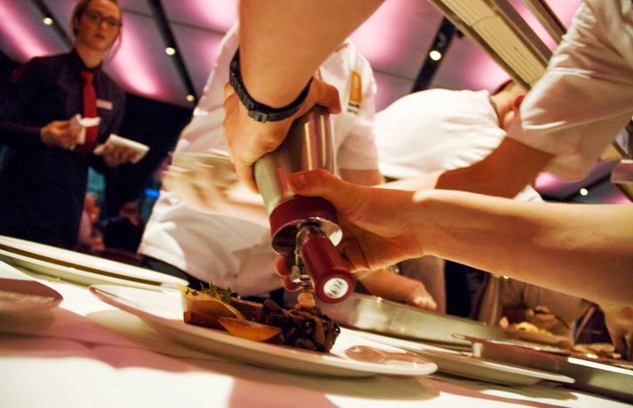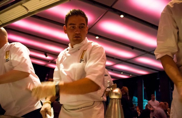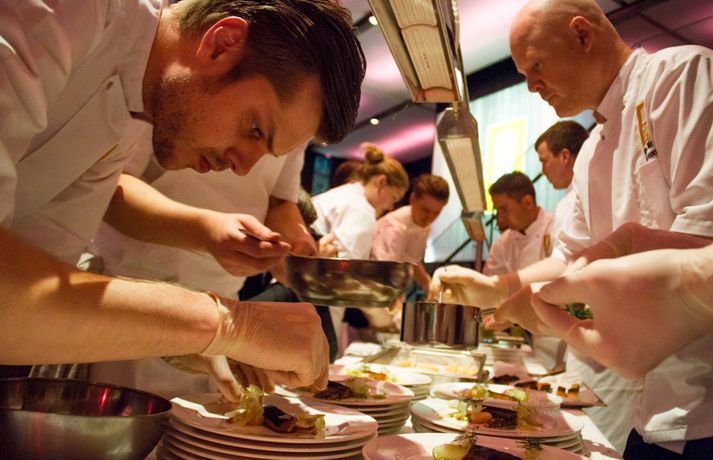 Meðfylgjandi myndir voru teknar á styrktarkvöldverði kokkalandsliðs Íslands sem fram fór á LAVA veitingahúsi Bláa Lónsins á föstudaginn var. Um var að ræða fyrsta skrefið í undirbúningi liðsins fyrir heimsmeistaramótið í matreiðslu sem fram fer í Lúxembúrg á næsta ári. Boðið var upp á metnaðarfullan keppnismatseðil þar sem íslenskt hráefni var í öndvegi. Það er kostnaðarsamt að taka þátt í alþjóðlegum matreiðslukeppnum og því er nauðsynlegt fyrir liðið að eiga stuðningsaðila sem vilja leggja sitt af mörkum til að halda merki íslenskrar matreiðslu á lofti.Á matseðlinum voru fimm vægast sagt ljúffengir réttir: Steinbítskinnar hægeldaðar í kryddjurtaolíu með jarðskokkum, stökku brauði og fáfnisgrasi. Grafinn lax og hörpuskel með skelfisksósu, spergilkáli, byggi, dilli og hrognum. Epla- og seljurótarseyði borið fram með vatnakarsa og heslihnetum. Lambahryggsvöðvi og – tunga með lambasoðsgljáa ásamt kartöflusmælki, villtum sveppum, sýrðum laukum, bakaðri gulrót og sítrónublóðbergi. Skyr frá Erpsstöðum og birki-brioche með hvítsúkkulaði, rabarbara og hnetusmjöri.Örn Árnason leikari stjórnaði veislunni af sinni alkunnu snilld og boðið var upp á söngatriði með þeim Matta Matt og Magna Ásgeirssyni.Facebooksíða kokkalandsliðisins.LAVA - veitingahús Bláa Lónsins.Hér má sjá umfjöllun Ísland í dag um styrktarkvöldverðinn.Kokkalandsliðið: Hákon Már Örvarsson faglegur framkvæmdastjóri, Þráinn Freyr Vigfússon fyrirliði, Viktor Örn Andrésson liðsstjóri, Bjarni Siguróli Jakobsson, Arnar Jón Ragnarsson, Axel Clausen, Þorkell Sigríðarson, Daníel Cochran, Garðar Kári Garðarsson, Fannar Vernharðsson, Ylfa Helgadóttir, Hafsteinn Ólafsson og María Shramko sem er meistari í sykurskreytingum.Kokkalandsliðið hleypti ljósmyndaranum inn í eldhús.Smelltu á efstu mynd í frétt til að fletta albúminu.