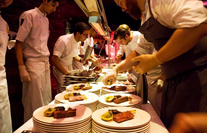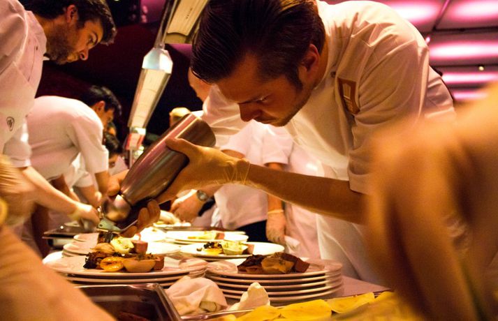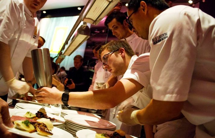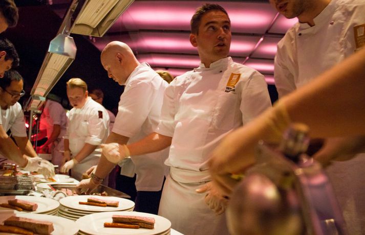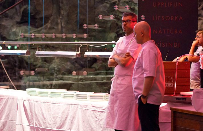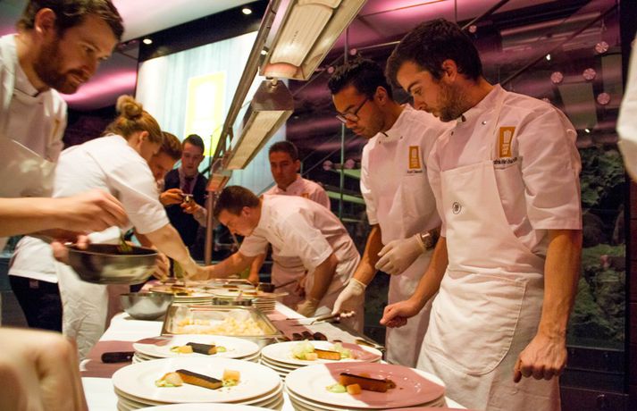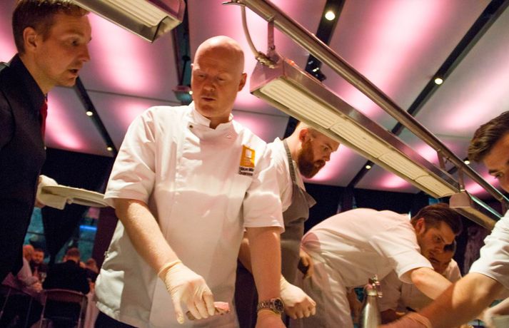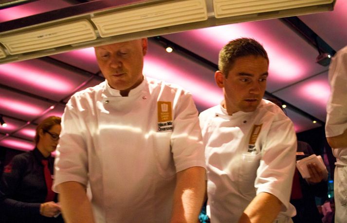 Kokkalandsliðið sló þetta líka svona í gegn Ellý Ármanns skrifar 21. október 2013 14:45 Myndir/Rabbi og Ellý Meðfylgjandi myndir voru teknar á styrktarkvöldverði kokkalandsliðs Íslands sem fram fór á LAVA veitingahúsi Bláa Lónsins á föstudaginn var. Um var að ræða fyrsta skrefið í undirbúningi liðsins fyrir heimsmeistaramótið í matreiðslu sem fram fer í Lúxembúrg á næsta ári. Boðið var upp á metnaðarfullan keppnismatseðil þar sem íslenskt hráefni var í öndvegi. Það er kostnaðarsamt að taka þátt í alþjóðlegum matreiðslukeppnum og því er nauðsynlegt fyrir liðið að eiga stuðningsaðila sem vilja leggja sitt af mörkum til að halda merki íslenskrar matreiðslu á lofti.Á matseðlinum voru fimm vægast sagt ljúffengir réttir: Steinbítskinnar hægeldaðar í kryddjurtaolíu með jarðskokkum, stökku brauði og fáfnisgrasi. Grafinn lax og hörpuskel með skelfisksósu, spergilkáli, byggi, dilli og hrognum. Epla- og seljurótarseyði borið fram með vatnakarsa og heslihnetum. Lambahryggsvöðvi og – tunga með lambasoðsgljáa ásamt kartöflusmælki, villtum sveppum, sýrðum laukum, bakaðri gulrót og sítrónublóðbergi. Skyr frá Erpsstöðum og birki-brioche með hvítsúkkulaði, rabarbara og hnetusmjöri.Örn Árnason leikari stjórnaði veislunni af sinni alkunnu snilld og boðið var upp á söngatriði með þeim Matta Matt og Magna Ásgeirssyni.Facebooksíða kokkalandsliðisins.LAVA - veitingahús Bláa Lónsins.Hér má sjá umfjöllun Ísland í dag um styrktarkvöldverðinn.Kokkalandsliðið: Hákon Már Örvarsson faglegur framkvæmdastjóri, Þráinn Freyr Vigfússon fyrirliði, Viktor Örn Andrésson liðsstjóri, Bjarni Siguróli Jakobsson, Arnar Jón Ragnarsson, Axel Clausen, Þorkell Sigríðarson, Daníel Cochran, Garðar Kári Garðarsson, Fannar Vernharðsson, Ylfa Helgadóttir, Hafsteinn Ólafsson og María Shramko sem er meistari í sykurskreytingum.Kokkalandsliðið hleypti ljósmyndaranum inn í eldhús.Smelltu á efstu mynd í frétt til að fletta albúminu. Mest lesið Krummi kveður pabba sinn Lífið „Ég hef grátið því að ég var svo skotin í þér“ Lífið Rákust á Mamdani yfir morgunbollanum Lífið „Þetta lið á Akureyri vildi ekki gefa mér gullið“ Lífið Leikaraliðið í Leitinni að Gollri fullskipað: Jamie Dornan verður Aragorn Lífið Joy Harmon er látin Bíó og sjónvarp Þetta er áratugurinn sem samtíminn saknar mest Lífið Mætti í þáttinn til að vinna sér inn fyrir þurrkara Lífið „GusGus gera sexý lög og Birnir er einfaldlega sexý beast“ Tónlist Fengið sinn skerf af áföllum í lífinu Lífið Fleiri fréttir Fengið sinn skerf af áföllum í lífinu Krummi kveður pabba sinn Leikaraliðið í Leitinni að Gollri fullskipað: Jamie Dornan verður Aragorn Oddvitaáskorunin: Myndi vilja vera „sérfræðingur að sunnan“ Rákust á Mamdani yfir morgunbollanum Þetta er áratugurinn sem samtíminn saknar mest Hvað veistu um... Vetrarólympíuleika? Mætti í þáttinn til að vinna sér inn fyrir þurrkara Frumfluttu lag Barnamenningarhátíðarinnar fyrir káta krakka „Ég hef grátið því að ég var svo skotin í þér“ Uppeldið hjá ömmu og afa áhrifamest „Þetta lið á Akureyri vildi ekki gefa mér gullið“ Gurrý um svuntuaðgerðina: „Jesús hvað þetta er búið að vera erfitt“ Clavicular fluttur á spítala vegna ætlaðrar ofskömmtunar Oddvitar landsins takast á við Oddvitaáskorunina Óvænt ökuferð að ógleymanlegu augnabliki Umdeildum K-Pop stjörnum skipt út í Hörpu Opnar sig um andlát kærastans eftir skotárás í New York „Svo kom í ljós að þetta var alls ekki amma mín“ „Hún reyndi aldrei að koma í stað mömmu“ „Ég var mjög skrítinn krakki“ Bryndís Líf orðin móðir Yfirgaf yfirstéttina fyrir loftárásir, listaverkarán og sprengjugerð Oddvitaáskorunin: „Big Papa“ uppáhalds gælunafnið Fyrsti transmaðurinn sem fer með aðalhlutverk í íslenskri kvikmynd Þriðja dóttir Sverris Bergmanns og Kristínar Evu komin í heiminn Óborganlegt faðmlag Jóhanns og Sigurðar „Litlu hlutirnir gefa lífinu merkingu“ Mesta áskorunin að greinast með hryggskekkju Sigurður Sævar og Guðbjörg í sundur Sjá meira