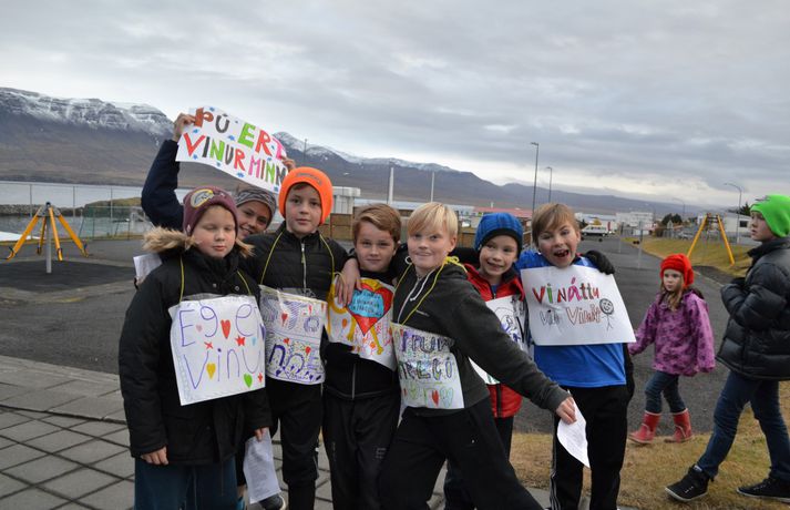 „Hér geisla allir af vináttu,“ segir Stefán Már Gunnlaugsson, sóknarprestur Hofsprestakalls, en hápunkti Vinavikunnar á Vopnafirði verður náð í dag með kærleiksmaraþoni og flugeldasýningu. Kærleiksmaraþonið er haldið í sjöunda sinn í ár en þá ganga unglingar staðarins í hús og bjóða fram aðstoð sína við heimilisverkin. „Við förum í öll hús á Vopnafirði,“ útskýrir Stefán Már og að hans sögn taka íbúar vel í uppátækið. Enda kannski ekki að undra þar sem að heimilisverkin verða seint talin skemmtilegasta iðjan sem völ er á. Kærleiksmaraþonið er ekki eina afþreying dagsins heldur verður að auki haldið Vinabingó og Þorgrímur Þráinsson fjallar um það hvernig gera skal gott samfélag betra. Í Vinavikunni hafa verið fjölmargir viðburðir, allir tengdir vináttu og kærleika. „Þetta hefur gengið framar björtustu vonum. Metmæting á alla viðburði,“ segir Stefán. Síðastliðinn föstudag var til að mynda haldinn knúsdagur. Á knúsdeginum buðu unglingar Vopnafjarðar fram aðstoð sína í verslunarinnkaupum fyrirtækja, stofnana og verslana. Að auki buðu þau öllum knús. Daginn áður þrömmuðu Vopnfirðingar í Vinaskrúðgöngu og fengu sér þar á eftir gómsætar veitingar í Vinakökuboði.Eru semsagt allir í kærleiksríku skapi á Vopnafirði?„Mjög svo,“ fullyrðir Stefán Már, sóknarprestur.Fjölmennt var í skrúðgöngunni þar sem Vopnfirðingar fögnuðu vináttunni.Myndir/Stefán Már Gunnlaugsson