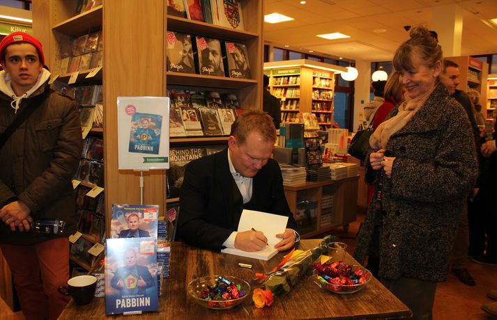 Útgáfu var fagnað í Eymundsson, Skólavörðustíg í gær og var þar margt um manninn. Bjarni Haukur las kafla úr bókinni, Hildur Hermóðsdóttir frá Sölku hélt tölu og Helgi Björnsson og gítarleikari skemmtu gestum en Helgi söng meðal annars lagið Geta pabbar ekki grátið?Pabbinn er fyrsta bók Bjarna Hauks og byggir höfundur hana á einleik sínum Pabbanum sem hefur verið á fjölunum hér og erlendis síðustu ár en leikritið hefur verið sýnt í yfir tuttugu löndum. Í bókinni lýsir hann föðurhlutverkinu og öllu sem því viðkemur.Arnar Grant og fjölskyldaÓlafur Egilsson og Bjarni HaukurSigrún Edda Björnsdóttir og Helgi Björnsson