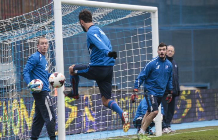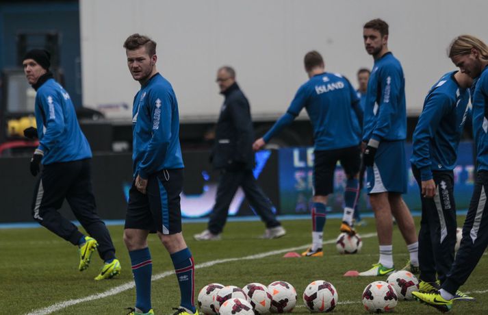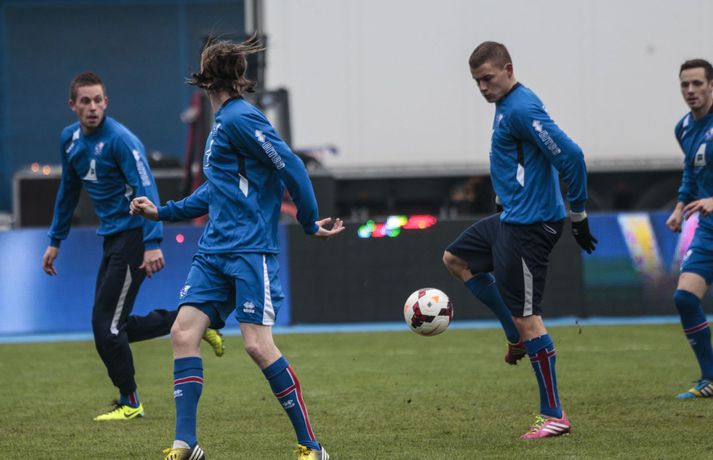 Strákarnir tóku vel á því í Zagreb | Myndir Kolbeinn Tumi Daðason skrifar 18. nóvember 2013 12:36 Myndir/Vihelm Allir leikmenn karlalandsliðs Íslands í knattspyrnu tóku þátt í æfingu liðsins á Maksimir-leikvanginum í Zagreb í Króatíu í dag. Leikmönnum gekk misvel að festa svefn í nótt eftir ferðalagið frá Íslandi. Sumir sofnuðu í vélinni sem hjálpaði ekki til en vafalítið spilar inn í að spennan hjá leikmönnum liðsins, líkt og fjölmörgum landsmönnum, er mikil. Landsliðsþjálfarinn Lars Lagerbäck var ánægður að æfingunni lokinni. Hann sagði æfinguna aðallega hafa snúist um að hlaupa úr sér þreytu, leikmenn væru kannski ekki alveg 100 prósent búnir að jafna sig en þeir yrðu klárir í slaginn á morgun. Strákarnir virkuðu í það minnsta eldhressir á æfingunni sem Vilhelm Gunnarsson, ljósmyndari Fréttablaðsins og Vísis, myndaði í bak og fyrir í dag. Leikurinn annað kvöld hefst svo klukkan 19.15 að íslenskum tíma. Fótbolti HM 2014 í Brasilíu Mest lesið Féll úr skíðalyftu og lést Fótbolti Býst ekki við að spila aftur fyrir landsliðið Íslenski boltinn Goðsögn fallin frá Enski boltinn Var frústreraður vegna landsliðsins Fótbolti Hótað brottrekstri ef hann færi ekki á börurnar Fótbolti Kynntu Sigurð á slaginu sex á aðfangadag Íslenski boltinn Síðasti dansinn hjá Kelce? Sport Dreymir enn um Evrópu: „Ekki tilbúin að borga það sama“ Sport Van de Ven bað Isak afsökunar: „Vildi ekki meiða hann“ Enski boltinn Kærður af knattspyrnusambandinu Enski boltinn Fleiri fréttir Goðsögn fallin frá Zidane sá soninn spila á Afríkumótinu Hótað brottrekstri ef hann færi ekki á börurnar Kærður af knattspyrnusambandinu Bestu jólamörkin: Drogba, Scholes eða Giroud? Býst ekki við að spila aftur fyrir landsliðið Féll úr skíðalyftu og lést Kynntu Sigurð á slaginu sex á aðfangadag Van de Ven bað Isak afsökunar: „Vildi ekki meiða hann“ Var frústreraður vegna landsliðsins Hvers vegna heillast stórliðin svo af Semenyo? Stewart, Snoop og Modric í eina sæng Mahrez batt enda á bið Alsíringa Heyrði hvorki frá Blikum né Víkingum Ruglaðar lokamínútur í Afríkukeppninni Vill ekki segja hversu lengi Bruno er frá Spyr hvort Guardiola stígi á vigtina Viðurkenna að VAR hafi bilað Úr Bestu heim í Hauka „Þetta er stærsti klúbbur Íslands“ Kaupmannahafnarbúi afgreiddi Úganda Arsenal í undanúrslit eftir vító Man. Utd reyndi stíft en Semenyo kaus City Iwobi og Lookman áberandi í sigri Nígeríu „Tölfræðilega séð eiga þeir ekkert að vera í þessari stöðu“ Amanda hætt hjá Twente Jackson hóf Afríkumótið með látum Fullkrug leysir Origi af í Mílanó Versta tímabil Vinícius í mörg ár og samningaviðræður sigla í strand Kongóliðar byrja á sigri Sjá meira