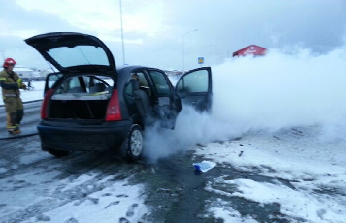 Kviknaði í bíl í Njarðvík Nanna Elísa Jakobsdóttir skrifar 16. nóvember 2013 17:08 Mynd af vettvangi þegar slökkvilið réð niðurlögum eldsins. Mynd/Valtýr Lögreglan á Suðurnesjum fékk tilkynningu skömmu fyrir hálf fimm í dag að eld hefði tekið í bifreið við Njarðarbraut í Njarðvík. Þegar lögregla kom á staðinn var mikill eldur í bifreiðinni. Slökkvilið kom á vettvang skömmu á eftir lögreglu og tók við að ráða niðurlögum eldsins. Bíllinn stóð við svokallað Steinásskýli. Til stendur að rannsaka upptök eldsins en samkvæmt upplýsingum lögreglu er ekkert vitað um þau að svo stöddu. Lögregla sagði engan hafa sakað vegna brunans né að hætta hefði skapast í nágrenni við hann. Mest lesið Bandaríkin og Íran komist að samkomulagi um vopnahlé Erlent Meirihluti þeirra sem taka afstöðu andvíg aðild að ESB Innlent Næturlokunin komi sér afar illa fyrir fjölda íbúa Innlent Hegðun Trumps vonbrigði Innlent Vitað um tíu dauðsföll af völdum eldinga hér á landi Innlent Vinna áfram að alþjóðahöfn og iðnaðarsvæði í Finnafirði Innlent Braut rúðu eftir að hafa verið synjað um starf Innlent Gefur ekki mikið fyrir yfirlýsingar Trump um útrýmingu Íran Innlent Kosningaspá Vísis: Lítill munur á vinstri og hægri í borginni Innlent Nýstaðinn upp þegar bárujárnið fauk inn um svefnherbergisgluggann Innlent Fleiri fréttir Braut rúðu eftir að hafa verið synjað um starf Næturlokunin komi sér afar illa fyrir fjölda íbúa Boða til mótmæla við bandaríska sendiráðið Meirihluti þeirra sem taka afstöðu andvíg aðild að ESB Gefur ekki mikið fyrir yfirlýsingar Trump um útrýmingu Íran Vinna áfram að alþjóðahöfn og iðnaðarsvæði í Finnafirði Hegðun Trumps vonbrigði Vitað um tíu dauðsföll af völdum eldinga hér á landi Kosningaspá Vísis: Lítill munur á vinstri og hægri í borginni Nýstaðinn upp þegar bárujárnið fauk inn um svefnherbergisgluggann Rafmagnslaust var í hluta Seltjarnarness og Vesturbæjar Skipverjar og hafnarverkamenn boða verkfall Harma að íbúar hafi verið í hættu við Fannborg Hótun um útrýmingu, ný kosningaspá og óvenjulegt þrumuveður Alvarlega slasaður eftir umferðarslys í Mývatnssveit Fyrstu merkin um kostnaðinn við stjórnarsetuna Krapaspýja lokar Vestfjarðavegi Konráð segir námslánin vera gjöf en Helga Vala gjald Ásgrímur Halldórsson slapp með skrekkinn frá ofsanum í Dave Drengurinn kominn af gjörgæsludeild Ekki hlutverk grunnskóla að kenna börnum sjálfsvörn Rafmagnsleysið og sjálfsvarnarkennsla Stakk og skar fórnarlambið á háls Auglýstu eftir framboðum og skelltu í lás yfir páska Fleiri óánægðir en ánægðir í fyrsta skipti Keflavíkurflugvöllur á varaafli vegna eldingar Þau skipa lista Sósíalistaflokksins í Reykjavík Tugum sagt upp í þremur hópuppsögnum Eldri borgarar verið í lífshættu vegna ábyrgðarleysis framkvæmdaaðila Virkjuðu flugslysaáætlun á Akureyri Sjá meira