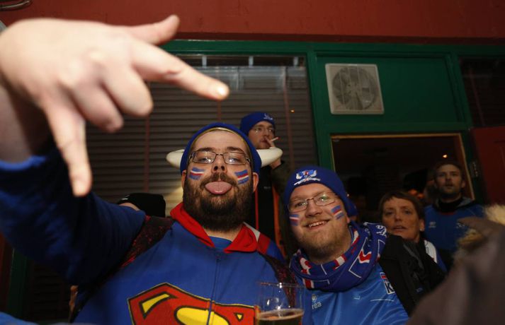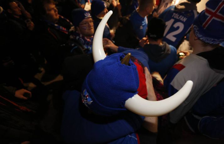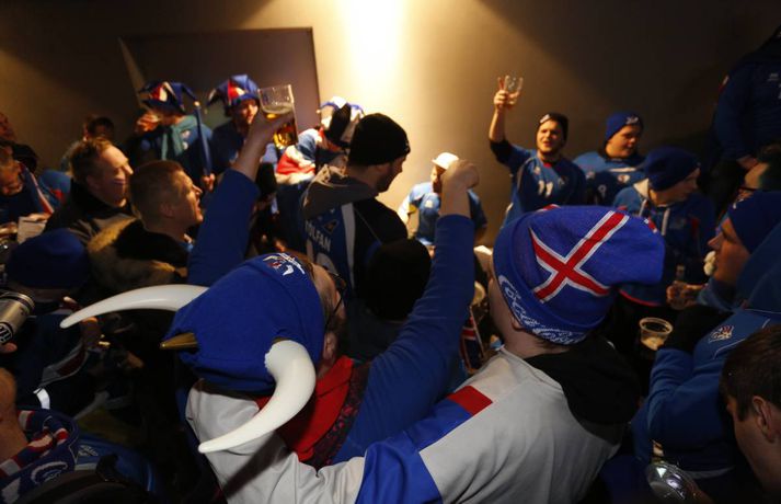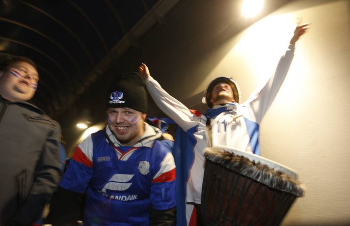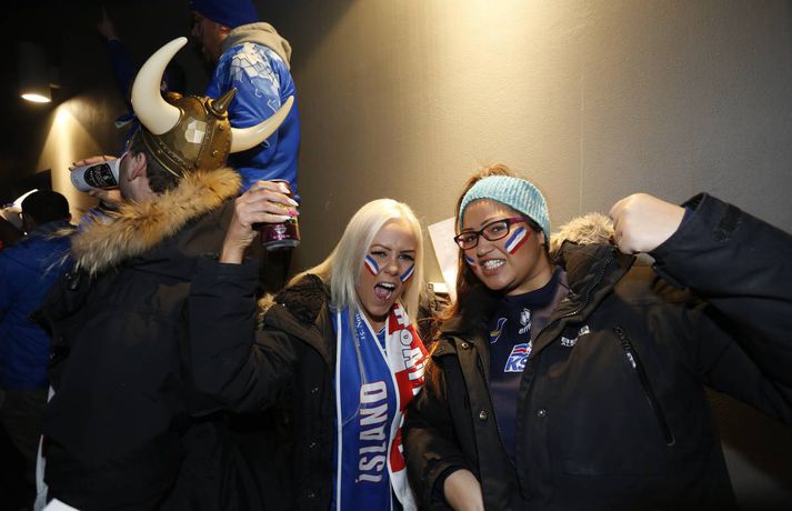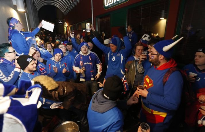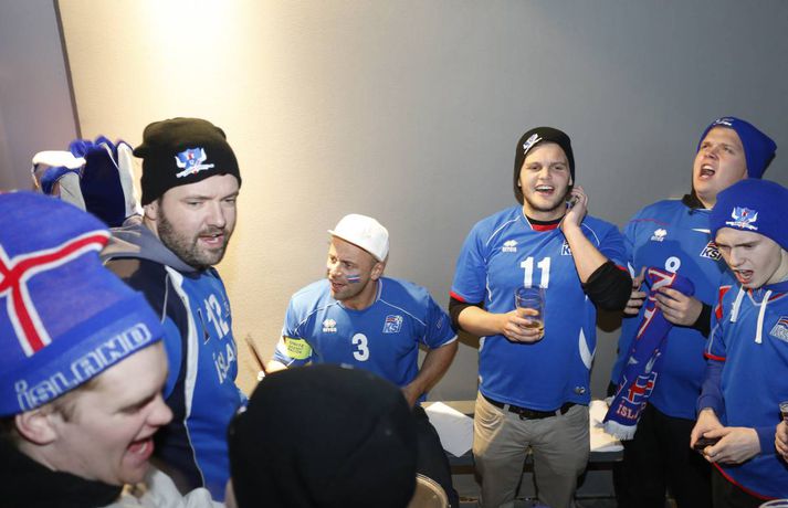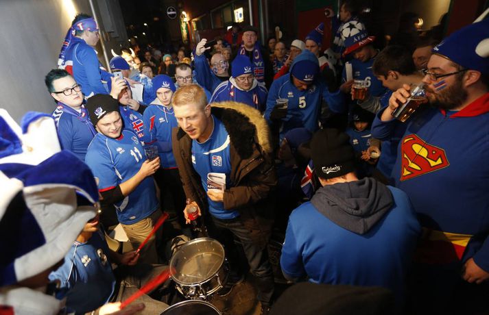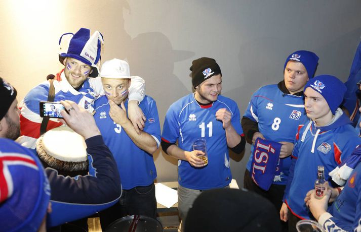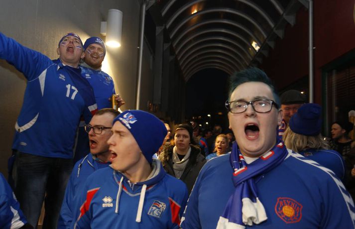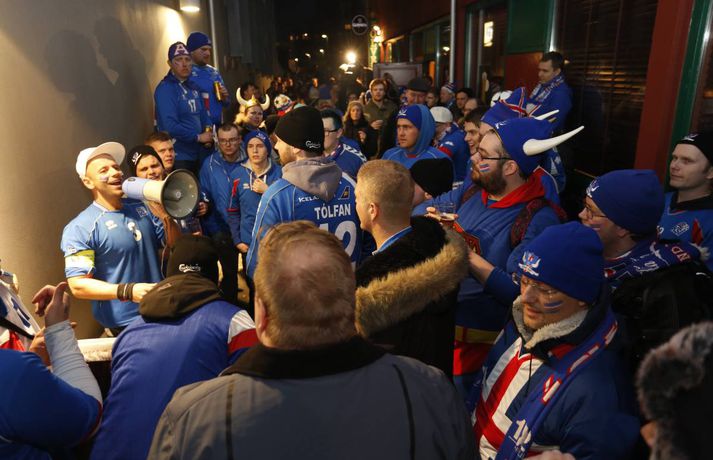 Stuðningsmenn íslenska karlalandsliðsins í knattspyrnu voru háværir fyrir utan Ölver í Glæsibæ rétt fyrir leik Íslands gegn Króatíu. Ljósmyndari Vísis leit við og myndaði fögnuðinn.