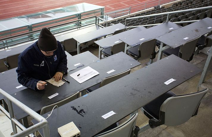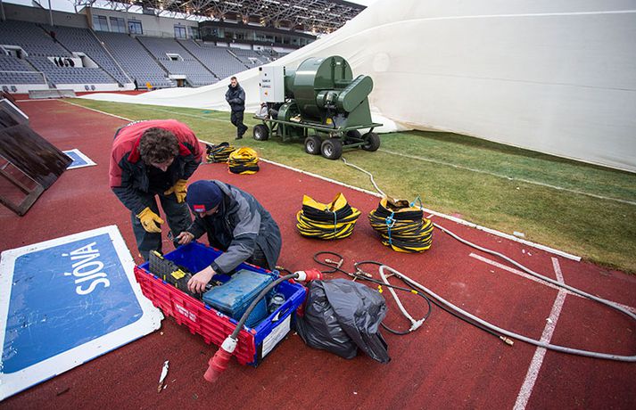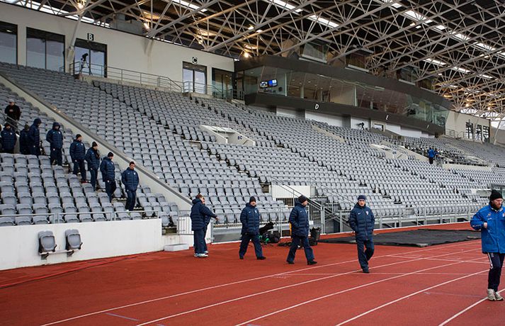 Króatarnir fóru undir dúkinn | Myndir 15. nóvember 2013 13:09 Króatarnir fengu staðfest að grasið á Laugardalsvelli er grænt. myndir/daníel Leikmenn króatíska landsliðsins fengu ekki að æfa á Laugardalsvelli í gær. Þeir voru aftur mættir á völlinn rétt fyrir hádegi til þess að kíkja á völlinn. Það þurfti að fresta því að taka hitadúkinn af vellinum í smá tíma þar sem Króatarnir þurftu að komast á grasið. Það var líka eðlilega stemning í því fyrir leikmennina að komast undir dúkinn fræga. Þegar Króatarnir voru farnir var loksins hægt að fjarlægja dúkinn. Við blasti iðagrænn og fallegur Laugardalsvöllur. Daníel Rúnarsson, ljósmyndari Fréttablaðsins og Vísis, var venju samkvæmt í Laugardalnum og tók myndir af Króötunum undir dúknum. Daníel tók einnig myndir af því er dúkurinn var tekinn af og þegar forsvarsmenn Tólfunnar settu upp nýjan borða á stúkuna. Myndirnar má sjá hér að ofan.Luka Modric, miðjumanni Real Madrid, var kalt á Laugardalsvellinum í hádeginu.mynd/daníel HM 2014 í Brasilíu Mest lesið Viðurkenna að VAR hafi bilað Fótbolti Arnar Daði rekinn frá Stjörnunni en áfram þjálfari kvennaliðsins Handbolti Jólagjöf í Keflavík: Remy Martin snýr aftur Körfubolti Koepka fyrsta stjarnan sem riftir samningi við LIV Golf Úr Bestu heim í Hauka Íslenski boltinn Þessi tíu eru tilnefnd sem Íþróttamaður ársins 2025: 23 ára aldursmunur Sport Stefndi á ÓL en fannst látinn á hótelherbergi Sport Heyrði hvorki frá Blikum né Víkingum Íslenski boltinn Ruglaðar lokamínútur í Afríkukeppninni Fótbolti Ótrúlegur sigur á HM: „Ég er mjög tregur svo pressan nær ekki til mín“ Sport Fleiri fréttir Stewart, Snoop og Modric í eina sæng Mahrez batt enda á bið Alsíringa Heyrði hvorki frá Blikum né Víkingum Ruglaðar lokamínútur í Afríkukeppninni Vill ekki segja hversu lengi Bruno er frá Spyr hvort Guardiola stígi á vigtina Viðurkenna að VAR hafi bilað Úr Bestu heim í Hauka „Þetta er stærsti klúbbur Íslands“ Kaupmannahafnarbúi afgreiddi Úganda Arsenal í undanúrslit eftir vító Man. Utd reyndi stíft en Semenyo kaus City Iwobi og Lookman áberandi í sigri Nígeríu „Tölfræðilega séð eiga þeir ekkert að vera í þessari stöðu“ Amanda hætt hjá Twente Jackson hóf Afríkumótið með látum Fullkrug leysir Origi af í Mílanó Versta tímabil Vinícius í mörg ár og samningaviðræður sigla í strand Kongóliðar byrja á sigri Glódís framlengir samninginn við Bayern Chelsea setur sig í samband við Semenyo Sagan ekki sönn: „Veit ekki hvaðan þetta á að hafa komið“ Hætt við að spila í Ástralíu en óvíst hvar leikurinn verður Neymar kominn á lappir og lofar að skora í úrslitaleik HM Jiménez jafnaði bestu vítaskyttu sögunnar Slot mun sakna Isak í tvo mánuði eftir „glórulausa tæklingu“ Sjáðu „auma“ vítið sem skilaði Fulham sigri Erfitt að vera í burtu þegar mamma greindist „Svona lítur frábær ákvörðun út“ Einn leikmaður með samning og völlurinn ólöglegur Sjá meira