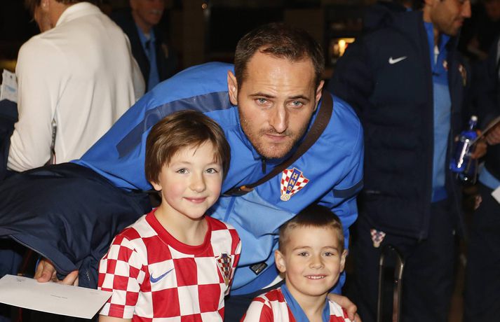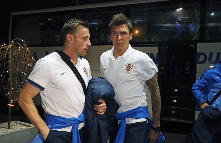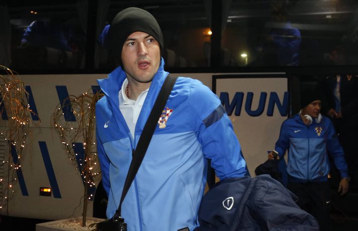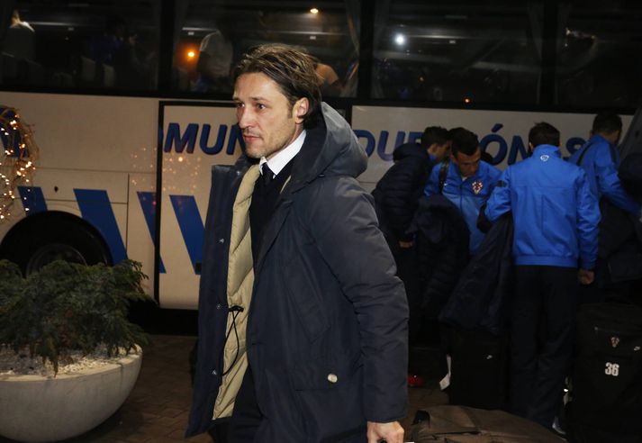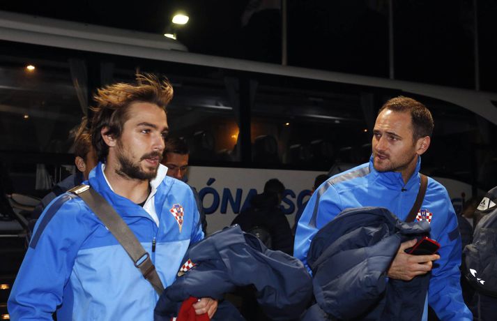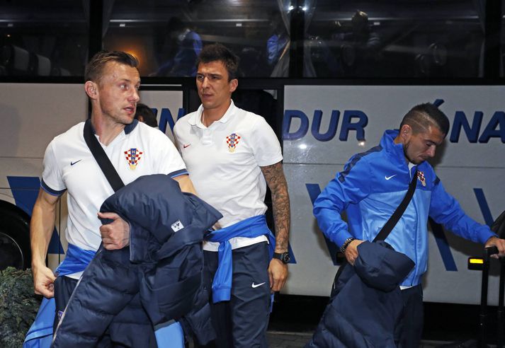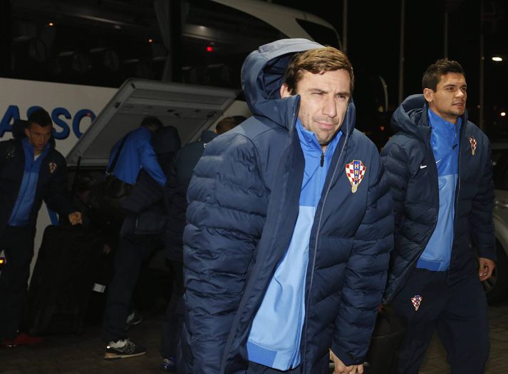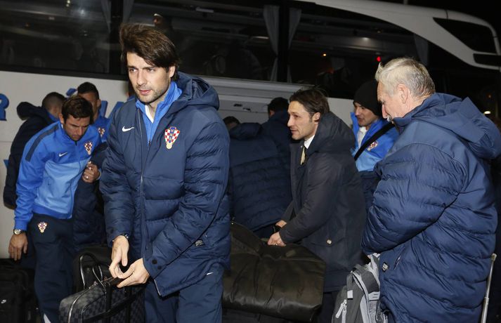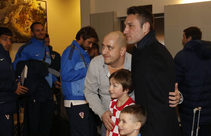 Liðsmenn króatíska landsliðsins í knattspyrnu mættu á Grand Hótel í kvöld eftir flugferð frá Zagreb til Keflavíkur. Luka Modric, Ivica Olic og félagar virtust í fínum gír þegar þeir mættu á hótelið sem mun hýsa þá fram á laugardag. Nokkrir stuðningsmenn Króata voru mættir á svæðið og fengu myndir með hetjunum. Valgarður Gíslason, ljósmyndari Fréttablaðsins og Vísis, náði myndum af Króötum við komuna til Reykjavíkur í kvöld.Ivica Olic, leikmaður Wolfsburg og króatíska landsliðsins, lengst til vinstri.Mynd/ValliDario Srna, leikmanni Shaktar Donetsk og króatíska landsliðsins, virðist hafa verið nokkuð kalt við komuna til Íslands.Mynd/ValliNiko Kovac, þjálfari króatíska landsliðsins.Mynd/Valli