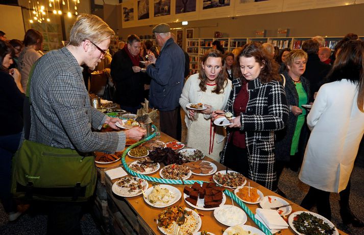 Mikið var um dýrðir þegar útgáfu matreiðslubókarinnar Fagur fiskur var fagnað í bokabúð Forlagsins á Fiskislóð. Gestir gæddu sér á kræsingum hafsins en fólkið á bak við bókina eru þau Sveinn Kjartansson, matreiðslumaður og Áslaug Snorradóttir, ljósmyndari. Sveinn Kjartansson, Áslaug Snorradóttir, Bryndís Jakobsdóttir, Birkir Guðmundsson og Ragga Gísla.Bókin kemur í kjölfar sjónvarpsþáttanna Fagur fiskur sem sýndir voru á RÚV en þeir höfðu það að markmiði að kynna áhorfendum alla þá möguleika í hráefni sem finnst í hafinu í kringum landið.Guðbergur Bergsson og Jóhann Páll Valdimarsson.Lífið á Facebook.