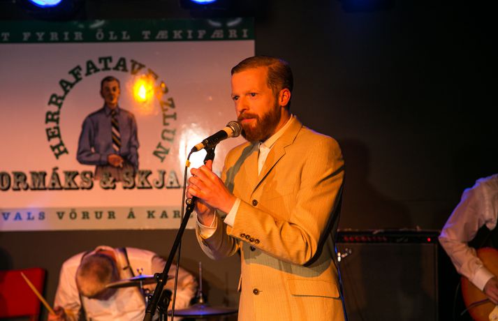 Hin árlega herrafatasýning Kormáks og Skjaldar var haldin með pompi og prakt í Þjóðleikhúskjallaranum síðastliðið miðvikudagskvöld. Hér má sjá nokkrar myndir af þeim glæsilegu flíkum og herramönnum sem fyrir augu bar. Skari Skrípó skemmti hópnumGóð stemning myndaðist í hópnum og brugðu margir á leik. Sú uppákoma átti sér stað að fjölmiðlamaðurinn Helgi Seljan og Bjarni Geir Alfreðsson, einnig þekktur sem Bjarni „snæðingur", giftu sig áður en kvöldið var úti. Hlaut það góðar undirtektir viðstaddra. Það var Guðmundur Jörundsson, eigandi tískuverslunarinnar Jör, sem gaf hjónin saman.Hilmar Guðjónsson leikari stígur léttan dans.