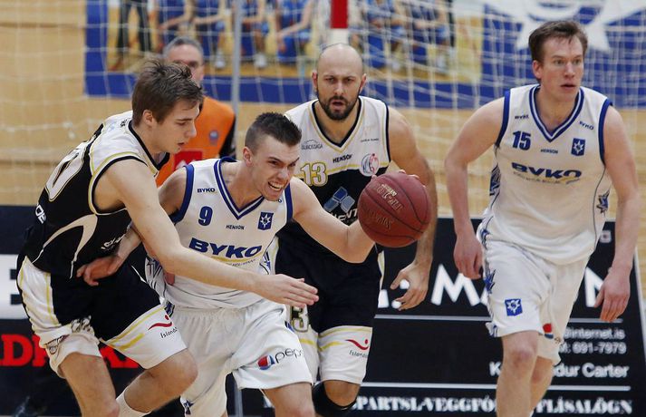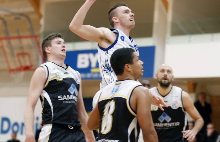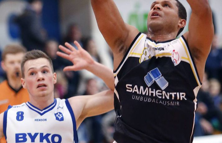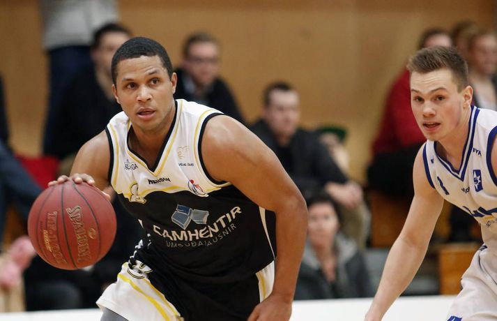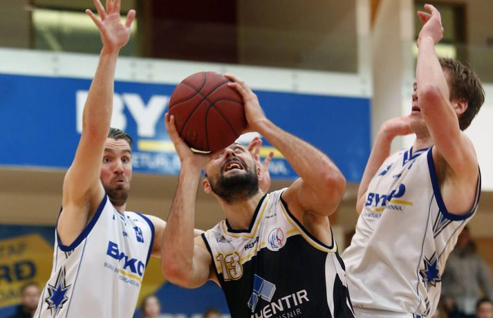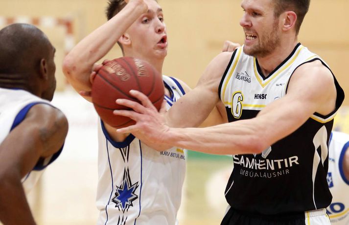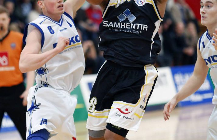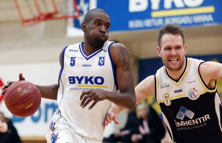 Umfjöllun og viðtöl: Stjarnan - KFÍ 92-77 | Junior kláraði Ísfirðinga Eiríkur Stefán Ásgeirsson í Ásgarði skrifar 9. desember 2013 12:01 Myndir/Valli Stjarnan vann öflugan sigur á KFÍ í Ásgarði í kvöld þrátt fyrir að mæta til leiks með þunnskipað og vængbrotið lið. Bandaríkjamaðurinn Matthew „Junior" Hairston fór á kostum og skoraði 38 stig. Ísfirðingar byrjuðu af miklum krafti og gáfu tóninn snemma með nokkrum þriggja stiga körfum. Stjörnumenn létu þó af sér kveða í öðrum leikhluta og munurinn aðeins eitt stig í hálfleik, 41-40, KFÍ í vil. Hairston og Dagur Kár Jónsson tóku svo leikinn í sínar hendur í þriðja leikhluta og félagar þeirra fylgdu með. Heimamenn skutu grimmt að utan og byggðu upp forystu sem gestirnir náðu ekki að brúa. Justin Shouse og Marvin Valdimarsson voru báðir frá vegna meiðsla í liði Stjörnumanna í kvöld. Talsvert hefur verið um meiðsli í herbúðum Garðbæinga og var Teitur Örlygsson, þjálfari Stjörnunnar, aðeins með átta leikmenn á skýrslu að þessu sinni. Þar af voru aðeins þrír yfir tvítugu. Gestirnir gengu á lagið í upphafi leiks og byrjuðu að skjóta grimmt á heimamenn. Það bar árangur og þó svo að Bandaríkjamaðurinn Jason Smith hafi ekki náð sér neitt sérstaklega á strik var stigaskorið að dreifast á marga menn. Stjörnumenn tóku sig taki í öðrum leikhluta og hleyptu meiri baráttu í leikinn. Ísfirðingar svöruðu og héldu sínu taki á leiknum, þó svo að það hafi oft staðið tæpt. En í síðari hálfleik hófst sýning Junior Hairston. Hann var hreinlega allt í öllu, bæði í vörn og sókn. Hann frákastaði grimmt, varði mikilvæg skot og vann mikilvæga bolta. Ef hann keyrði ekki sjálfur upp að körfunni bjó hann tækifæri fyrir samherja sína - sem þeir nýttu vel. Dagur Kár Jónsson átti einnig góðan leik, þrátt fyrir slaka skotnýtingu. Hann var með tólf stoðsendingar og fann Hairston á köflum sérstaklega vel. Þegar að Ísfirðingar ákváðu að stöðva Hairston í teignum fór hann bara út fyrir þriggja stiga línuna og raðaði niður skotum þar. Hann og Kjartan Atli Kjartansson buðu upp á væna syrpu í fjórða leikhluta sem gerði í raun út um leikinn. Stjörnumenn náðu að stöðva Jason Smith, hættulegasta leikmann KFÍ. Smith nýtti aðeins sex af 22 skotum sínum úr opnu spili í kvöld og var langt frá sínu besta. Mirki Virijevic spilaði vel og Ágýst Angantýsson valdi skotin sín vel. En það vantaði heilt yfir betra framlag frá gestunum að þessu sinni, sérstaklega í seinni hálfleik.Birgir Örn: Þeirra stíll að tuða Birgir Örn Birgisson, þjálfari KFÍ, sagði það hafa verið svekkjandi að hafa ekki gert betur gegn undirmönnuðu liði Stjörnunnar í leik liðanna í kvöld. Eftir góða byrjun og fínan fyrri hálfleik tóku Garðbæingar leikinn í sínar hendur í seinni hálfleik. „Við misstum aðeins dampinn í sóknarleiknum og fengum þá á okkur auðveldar körfur," sagði hann um það sem fór úrskeðis hjá hans mönnum í seinni hálfleik. „Við vorum í vandræðum með okkar sóknarleik og létum þar að auki tuðið þeirra fara í taugarnar á okkur. Það á ekki að gerast því það er þeirra stíll að tuða,“ sagði Birgir Örn. „Við bara héldum ekki einbeitingunni.“ Matthew Hairston fór mikinn í upphafi seinni hálfleiks, sérstaklega í teig Ísfirðinga. En þegar KFÍ-menn stöðvuðu hann þar þá hélt hann sig fyrir utan þriggja stiga línunnar með góðum árangri. „Við réðum ekki við hann fyrir utan og ég verð bara að taka það á mig og minn undirbúning. Ég taldi hann ekki vera svona góða skyttu fyrir utan,“ sagði Birgir. Stjörnumenn voru án nokkurra lykilmanna í kvöld en Ísfirðingar náðu ekki að færa sér það í nyt. „Við viljum auðvitað koma í alla leiki til að vinna þá, sama hvernig hitt liðið er skipað. En það gekk því miður ekki upp í kvöld.“ Hann neitar því ekki að hann hefði viljað fá meira framlag frá sínum lykilmönnum í kvöld. „Þetta rann ekki jafn ljúft og gegn Snæfelli á föstudaginn. Það vantaði líka meira frá þriðja og fjórða manninum líka - að hann kæmi með eitthvað extra eins og gerðist á föstudaginn.“Teitur: Einn af mínum stærstu sigrum „Þetta var eins gott og við þorðum að vona. Þetta var skref upp á við fyrir Stjörnuna að allir þessir kjúklingar fengu að spila svona margar mínútur í kvöld,“ sagði Teitur Örlygsson, kampakátur þjálfari Stjörnunnar, eftir sigur hans manna á KFÍ í kvöld. „Þetta var einn mínum stærstu sigrum í þessu húsi og ég er afar stoltur af því.“ Ísfirðingar byrjuðu vel og Teitur sagðist hafa átt von á því að gestirnir myndu skjóta grimmt í upphafi leiks. „Við vorum búnir að ákveða að láta þá stráka sem eru ekki vanir að draga vagninn í þeirra liði taka fullt af skotum fyrir utan. Þess í stað létum við Jason [Smith] hafa virkilega mikið fyrir öllu því sem hann gerði í leiknum enda stigahæsti leikmaður deildarinnar.“ „Okkar leikáætlun gekk nánast fullkomlega upp. Þeir hættu að hitta svona vel eins og þeir gerðu í upphafi leiks og við náðum að frákasta vel.“ Hann hrósaði Junior Hairston fyrir hans framlag í kvöld. „Hann er rosalegur stemningsleikmaður og getur verið alveg óútreiknanlegur. En hann hefur verið alveg frábær síðustu þrjá leiki. Hann er alveg magnaður og vonandi verður ekkert lát á því.“Hairston: Vildi stíga upp Matthew „Junior“ Hairston átti magnaðan leik í kvöld en hann skoraði 38 stig, tók fjórtán fráköst og varði fjögur skot. Lengi átti hann meira en helming skoraðra stiga sinna manna í leiknum. „Hver sigur er mér mikilvægur og ég vil bara taka einn leik fyrir í einu. Við vorum fáliðaðir í kvöld 