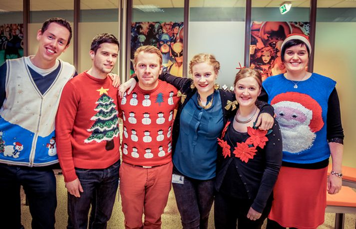 Starfsfólk TM Software hélt jólapeysudag síðasta föstudag í tilefni af jólasöfnunarátaki Barnaheilla - Save the Children á Íslandi en fyrirtækið sá um að setja upp vef átaksins í WebMaster-áheitakerfinu. Hæfileikaríkasta starfsfólkið tók fram prjónana og prjónaði peysur eða vesti á meðan aðrir beittu listarinnar kúnstum og föndruðu sinn jólafatnað. Jólaandinn var allsráðandi þegar starfsfólkið skreytti vinnustaðinn sinn í takt við sígild og ekki svo sígild jólalög.Heiða Dögg Jónsdóttir.Helga Kolbrún Magnúsdóttir, Óskar Guðjón Karlsson og Gunnar Geir Jóhannsson.Lúðvík Snær Hermannsson.Fjóla Jónsdóttir og Oddur Helgi Guðmundsson.Arnþór Snær Sævarsson.Pétur Ágústsson.