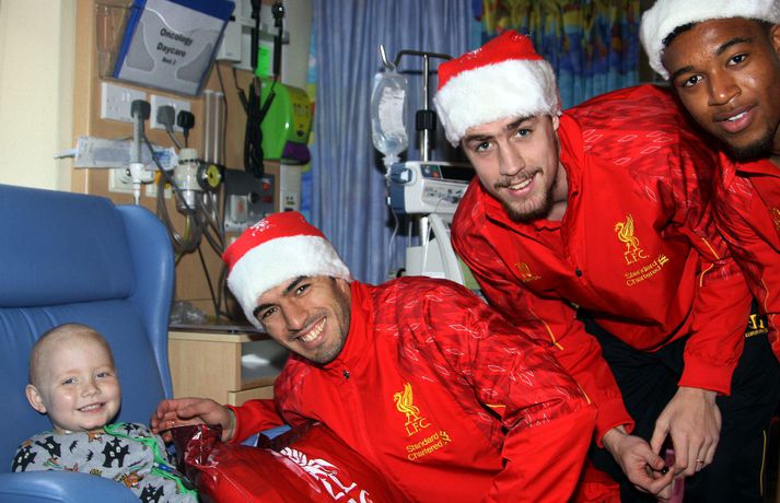 Leikmenn Liverpool heimsækja veik börn | Myndir 12. desember 2013 15:45 Þessi stuðningsmaður Everton fékk sína árlegu heimsókn frá leikmönnum Liverpool. Leikmenn Liverpool fóru í gær í sína árlegu heimsókn á Alder Hey-barnaspítalann. Sú heimsókn mælist ávallt vel fyrir. Þeir komu með gjafir handa börnunum en Steven Gerrard var þó með stærsta pakkann en hann var í formi 96 milljón króna styrks. Eins og sjá má á aðalmynd fréttarinnar heimsækja leikmenn Liverpool alla krakkana, líka harða stuðningsmenn erkifjendanna. Krakkarnir voru að vonum hæstánægðir með heimsóknina eins og sjá má á myndunum hér að ofan.Suarez var hress. Enski boltinn Mest lesið Hafnaði 34 milljónum: „Vil ekki styðja kerfi sem býr til fíkn og eyðileggur líf“ Sport Littler sjóðheitur en sá fjórði besti varð fyrir áfalli Sport Liverpool-skotmarkið ekki á förum í janúar Enski boltinn Arnar Þór ráðinn til FIFA: „Himinlifandi að hafa fengið þetta starf“ Fótbolti Salah sakaður um dýfu: „Getum ekki keppt við Egypta og dómarana“ Fótbolti Syrgja átján ára fimleikakonu Sport Haukur náði hundrað og hundrað fyrir EM Handbolti Skoraði og fékk gult fyrir að benda Fótbolti Írar ætli að fylgja eftir tillögu Heimis Fótbolti Dagskráin í dag: Messan, meistarar Hauka, píla og NFL-veisla Sport Fleiri fréttir Liverpool-skotmarkið ekki á förum í janúar Aldrei spilað þarna en sagði strax já „Viss um að ég myndi skora einn daginn“ Watkins hélt ótrúlegri sigurgöngu Villa áfram Schade og Jiménez sendu Brentford og Fulham í efri hlutann Arsenal aftur á toppinn Fyrsta mark Wirtz í þriðja sigrinum í röð Cherki aðalmaðurinn í sigri City Úlfarnir heiðruðu minningu Jota Andri Lucas frá í mánuð Sjáðu dönsku þrumuna sem færði United-mönnum öll þrjú stigin Segir að Arsenal stefni á sögulega fernu á þessu tímabili Amorim endaði viðtalið á gamansömum nótum „Við eigum heima í Evrópu“ Daninn skaut Man. United upp fyrir Liverpool Amorim segir strákinn í frystinum vera framtíðin hjá Man. United Martinez með fyrirliðabandið og báðir Fletcher-bræðurnir á bekknum Havertz gæti snúið aftur á næstu dögum Alfons og Willum sáu tvö rauð spjöld fara á loft Synir Diogo Jota leiða leikmenn út á Anfield Cunha vill skemmta og Howe treystir leikmönnum United horfir til Þýskalands eftir höfnun Semenyo Haaland stóðst vigtun eftir jólin Hápunktarnir hingað til í enska boltanum Goðsögn fallin frá Kærður af knattspyrnusambandinu Bestu jólamörkin: Drogba, Scholes eða Giroud? Van de Ven bað Isak afsökunar: „Vildi ekki meiða hann“ Hvers vegna heillast stórliðin svo af Semenyo? Stewart, Snoop og Modric í eina sæng Sjá meira
