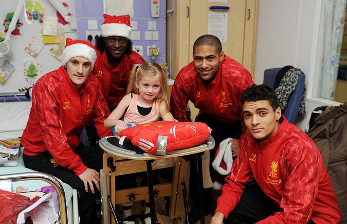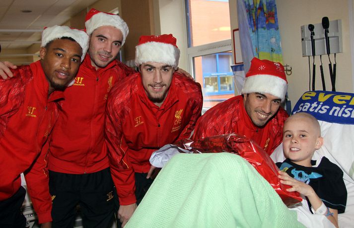 Leikmenn Liverpool fóru í gær í sína árlegu heimsókn á Alder Hey-barnaspítalann. Sú heimsókn mælist ávallt vel fyrir. Þeir komu með gjafir handa börnunum en Steven Gerrard var þó með stærsta pakkann en hann var í formi 96 milljón króna styrks. Eins og sjá má á aðalmynd fréttarinnar heimsækja leikmenn Liverpool alla krakkana, líka harða stuðningsmenn erkifjendanna. Krakkarnir voru að vonum hæstánægðir með heimsóknina eins og sjá má á myndunum hér að ofan.Suarez var hress.