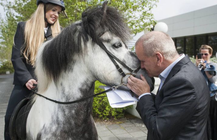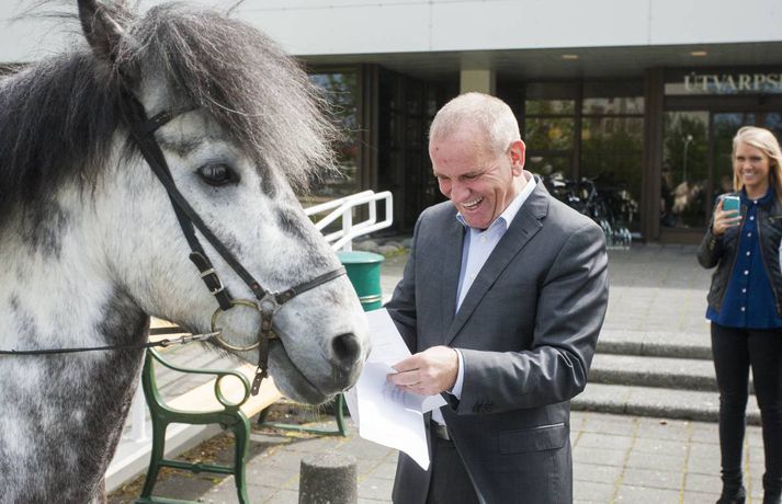 „Hann var bara ánægður með þetta og sagði meðal annars að hesturinn væri fallegur," segir Áslaug Arna Sigurbjörnsdóttir, formaður Heimdallar, sem kom ríðandi í höfuðstöðvar Ríkisútvarpsins í dag og afhenti Páli Magnússyni útvarpsstjóra uppsagnarbréf fyrir hönd stóðhestsins Tóns frá Austurkoti. „Þetta var sem sagt uppsagnarbréf af útvarpi og sjónvarpi ríkisins. Stóðhesturinn er skilgreindur sem eignarhlutafélag og greiðir nefskatt, en hann getur eðli málsins samkvæmt ekki nýtt sér áskriftina," segir Áslaug Arna. Þá sendi félagið einnig bréf á Illuga Gunnarsson menntamálaráðherra þar sem skorað er á hann að afnema nefskattinn.Bréfið sem Páli var afhentÍ tilkynningu frá Heimdalli segir að félagið telji að íslenska ríkið eigi ekki að standa fyrir rekstri fjölmiðils, hvort sem um er að ræða ljósvakamiðil eða prentmiðil. „Ætli ríkið sér á annað borð þó að reka fjölmiðil væri nær að slík stofnun verði sett á fjárlög. Þannig væri stofnunin í samkeppni við aðrar ríkisstofnanir og hægt að huga að auknu aðhaldi hjá Ríkisútvarpinu. Það er fráleitt að skattgreiðendur og fyrirtæki séu þvinguð til að halda uppi Ríkisútvarpinu með sérstökum skatti og njóti þannig sérstöðu í tekjuöflun umfram aðrar ríkisstofnanir eins og t.d. Landspítalann,“ segir í tilkynningunni.Páll Magnússon les uppsagnarbréfið í Ofanleitinu í dag.Mynd/Anton Brink