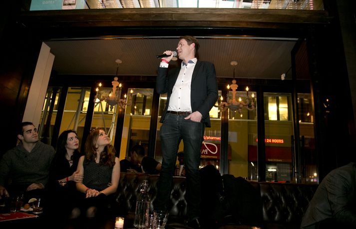 Íslenskur spurningaleikur kynntur í New York Hanna Rún Sverrisdóttir skrifar 6. nóvember 2013 17:13 myndir/ASTRSK PR Útgáfuhóf var haldið í New York í gær fyrir QuizUp spurningaleikinn sem kemur út á morgun. Leikurinn verður stærsti spurningaleikur í heimi með á annað hundruð þúsund spurningar í tæplega 300 flokkum. Það er íslenska tölvuleikjafyrirtækið Plain Vanilla sem þróaði leikinn. Þetta kemur fram í fréttatilkynningu frá fyrirtækinu. Þorsteinn B. Friðriksson, framkvæmdastjóri og stofnandi Plain Vanilla var viðstaddur útgáfuhófið ásamt hópi íslenskra og erlendra starfsmanna. Fullt var út úr dyrum í veislunni en þangað voru meðal annars mættir blaðamenn frá viðskiptamiðlunum Business Insider og Forbes auk fjárfesta og helstu áhrifavalda í tæknibransanum í New York. Þorsteinn hélt stutta tölu þar sem hann kynnti QuizUp og bauð veislugestum að spila leikinn en stöðunni var varpað upp á skjá og gestirnir gátu unnið til verðlauna með því að sigra aðra gesti í leiknum.Svona lítur leikurinn út.Neal Ostrov, markaðsstjóri Plain Vanilla, segir leiksins beðið með mikilli eftirvæntingu. Hann segir að hægt verði að spila leikinn á snjallsíma og spjaldtölvu. „QuizUp er einn fyrsti snjallsíma- og spjaldtölvuleikurinn sem er með sinn eigin samfélagsvef á bakvið leikinn,“ segir Ostrov. Hann segir að markmiðið sé að fólk kynnist og vináttubönd styrkist í gegnum sameiginleg áhugamál sem fólk keppist við að svara spurningum um. Jafnvel gæti fólk kynnst hinum eina rétta eða hinni einu réttu eftir að hafa att kappi í leiknum. Ostrov segist vonast til þess að leikurinn falli í kramið hjá Íslendingum sem hafa, sem kunnugt er, mikinn áhuga á spurningaleikjum en meðal vinsælustu sjónvarpsþátta hér á landi eru spurningakeppnir af ýmsu tagi. Leikjavísir Mest lesið Meðalmennskan plagar Brján Gagnrýni Aldrei of seint að prófa sig áfram Tíska og hönnun Kynslóðabilið kom í ljós þegar umræðan beindist að blautbolakeppni Lífið Hvað þýðir „six-seven“? Lífið Hótelstjóri Hótels Tindastóls er allur Bíó og sjónvarp Skein skært í sögulegum gleðikonukjól Tíska og hönnun Troðningur á yfirfullri opnun: „Þetta var svolítið kreisí“ Lífið Smáforrit til að deila heimilisverkum: „Fæ þrjú stig fyrir að þurrka af á heimilinu“ Lífið Fékk lífið til baka á korteri eftir tólf ár af sársauka Lífið „Fallegasti drengur í heimi“ er látinn Bíó og sjónvarp Fleiri fréttir Nýr íslenskur tölvuleikur um lífsgæðakapphlaupið Battlefield 6: Gamli góði Battlefield er snúinn aftur Ghost of Yōtei: Einhver heimsins fallegasti leikur og skemmtilegur líka Borderlands 4: Læti og óreiða par excellence Prófaðu EVE Vanguard áður en hann kemur út Metal Gear Solid Delta: Snake Eater - Einn besti leikur PS2 öðlast nýtt líf Sjá meira