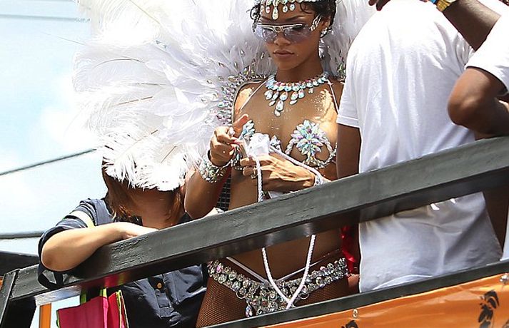 Söngkonan Rihanna var hrókur alls fagnaðar á karnivali á Barbados um helgina en söngkonan er ættuð þaðan. Rihanna tók þátt í hátíðarhöldunum í rosalegu bikiníi og alsett fjöðrum. Við þessa múnderingu var hún síðan í strigaskóm frá Adidas sem var ágætt því hún dansaði og skók sig eins og enginn væri morgundagurinn.Flott múndering.Rihanna var umkringd vinum sínum sem voru álíka fáklæddir og djammaði fram á rauða nótt eins og henni einni er lagið.Sú kann að djamma.Með pela við höndina.Dragðu Tarotspil dagsins hér.