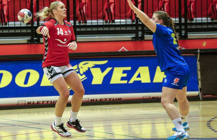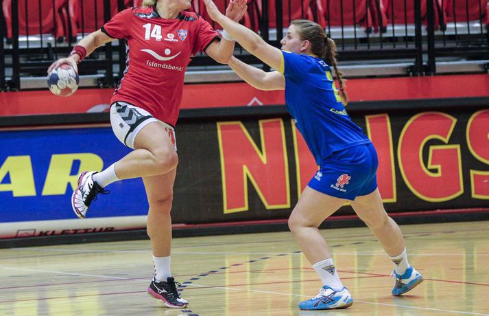 Gróttukonur urðu fyrstar til að taka stig af Val í vetur þegar þær náðu 20-20 jafntefli við Val í Vodafone-höllinni að Hlíðarenda í kvöld þegar liðin mættust í 4. umferð Olísdeildar kvenna í handbolta. Gróttuliðið skoraði þrjú síðustu mörkin í leiknum og fékk að auki tækifæri til að tryggja sér sigur í lokasókninni. Íris Björk Símonardóttir átti frábæran leik í marki Gróttu og varði alls 27 skot í leiknum þar á meðal lokaskot Valsliðsins. Íris lokaði markinu í lokin þegar Grótta breytti stöðunni úr 20-17 í 20-20 og tryggði sér stig en Valskonur skoruðu ekki síðustu sex mínútur leiksins. Sunna María Einarsdóttir, fyrirliði Gróttu skoraði jöfnunarmarkið með frábæru gegnumbroti en það átti margt eftir að gerast í leiknum eftir það. Gróttukonur byrjuðu leikinn frábærlega, skoruðu fyrstu þrjú mörkin og Valsliðið komst ekki á blað fyrr en eftir tæplega fjögurra mínútna leik. Grótta komst síðan í 7-4 en þá var Íris Björk Símonardóttir búin að verja 9 af fyrstu 13 skotum Valsliðsins í leiknum. Stefán Árnarson. þjálfari Vals, átti ás upp í erminni því hann sendi Önnu Úrsúlu Guðmundsdóttur inn í miðja vörnina hjá Val og það var ekki sökum að spyrja því sóknarleikur Gróttuliðsins fór strax að hiksta. Valsliðið náði síðan frábærum níu mínútna kafla þar sem liðið skoraði sex mörk í röð og komst þremur mörkum yfir, 10-7. Gróttustelpurnar gáfust ekki upp þrátt fyrir örlítinn pirring út í dómarana og náðu muninum aftur niður í eitt mark fyrir hálfleik með góðum endaspretti. Valur var 12-11 yfir í hálfleik. Íris Björk Símonardóttir varði sextán skot í fyrri hálfleiknum eða þrettán fleiri skot en landsliðsmarkvörðurinn Guðný Jenný Ásmundsdóttir. Valskonur voru skrefinu á undan allan seinni hálfleikinn en náðu aldrei að losa sig almennilega við baráttuglatt Gróttulið sem gafst aldrei upp. Valsliðið komst mest þremur mörkum yfir en lengst hélst munurinn í tveimur mörkum. Gróttuliðið náði síðan frábærum lokakafla, skoraði þrjú síðustu mörkin og tryggði sér 20-20 jafntefli. Kristín: Íris var með okkur flestallar í vasanumKristín Guðmundsdóttir var að sjálfsögðu svekkt í leikslok eins og félagar hennar í liðinu með að missa leikinn niður í jafntefli enda 20-17 yfir þegar sex mínútur voru eftir "Við áttum að klára þetta í lokin og ég veit eiginlega ekki hvað gerist. Vörnin var ekki nógu góð í lokin en hún hélt samt ágætlega allan leikinn. Mér finnst persónulega sóknarleikurinn vera það sem klikkaði í kvöld því við erum að fá endalaus færi til að skjóta," sagði Kristín. "Vörnin þeirra er mjög opin en Íris er góð fyrir aftan. Hún var með okkur flestallar í vasanunm. Hún er markmaður sem vinnur sína vinnu og hún var greinilega búin að skoða okkur. Við þurfum þá bara að vinna okkar vinnur og skjóta ekki alltaf á sömu staðina," sagði Kristín. "Mér fannst við undirbúa okkur vel fyrir þennan leik og fyrir hörkuleik. Það var ekkert vanmat eða slíkt í gangi því við vitum alveg hverjar eru í þessu Gróttuliði. Þetta er svekkjandi og aðallega af því að við erum búnar að leiða megnið af leiknum," sagði Kristín. "Mér fannst við ekki vera stressaðar í lokin. Við vorum óheppnar með að fá skítamörk á okkur á lokamínútunum sem bæði vörnin og markvörðurinn áttu að stoppa. Við vorum síðan að skjóta mjög illa úr mjög fínum færum," sagði Kristín. "Þetta þýðir ekki neitt fyrir okkur. Við höfum rosalega oft tapað einum leik á tímabili og þetta er bara hann. Það þarf oft eitthvað svoleiðis til að vekja mann. Deildin er jafnari í ár og það eru fleiri lið sem geta stolið sigrum. Við þurfum bara að vera á toppnum í hverjum leik," sagði Kristín. Íris Björk: Ég er mjög stolt af liðinu í kvöldÍris Björk Símonardóttir átti frábæran leik í marki Gróttu og varði alls 27 skot í leiknum eða 59 prósent skotanna sem á hana komu. "Þetta var dýrmætt stig fyrir okkur sérstaklega í ljósi þess að við töpuðum fyrir Fylki á heimavelli um daginn. Við þurfum að vinna þau stig til baka og það var gott að ná stigi hérna í kvöld þótt að það væri svekkjandi að ná ekki báðum stigunum fyrst að við vorum komnar í þessa stöðu," sagði Íris. "Um miðjan seinni hálfleik var eins og við værum að missa dampinn en við náðum að rífa okkur aftur upp sem mér finnst mikið styrkleikamerki. Ég er rosalega ánægð með stigið en það er samt smá svekkjandi að hafa ekki náð í bæði stigin," sagði Íris en Gróttuliðið fékk tvær sóknir í lokin til að komast yfir. "Við bökkuðum vel og náðum að loka á hraðaupphlaupin hjá þeim. Kári lagði mikla áherslu á það fyrir leikinn og ég tel að það hafi gert heilmikið fyrir okkur í leiknum. Ég er mjög stolt af liðinu í kvöld og þetta er vonandi það sem koma skal," sagði Íris. Sunna María: Nú vitum við að við getum unnið hvaða lið sem erSunna María Einarsdóttir, fyrirliði Gróttu, skoraði bara eitt mark í kvöld og það kom á hárréttum tíma því hún tryggði sínu liði þá 20-20 jafntefli á móti Val. "Það var pínulítið heppni í þessu jöfnunarmarki en þetta snýst stundum um það að skora á rétta tímapunktinum," sagði Sunna María Einarsdóttir kát í leikslok. "Þetta var mjög gott stig fyrir okkur sérstaklega þar sem við töpuðum á móti Fylki," sagði Sunna María en Gróttuliðið átti frábæran lokakafla í leiknum og þær komu sterkar til baka þegar Valsliðið virtist vera að klára leikinn. "Það kom bara upp barátta og markvarsla og um leið og við byrjuðum á saxa á forskotið þá brotnuðu þær svolítið. Þær eiga fyrirfram að vinna leikinn og