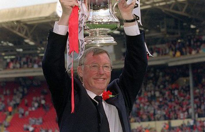 Líklegt er að eintóm fagnaðarlæti brjótist út í Manchester-borg um helgina. Sir Alex Ferguson stýrir United í síðasta skipti þegar félagið fær Englandsmeistarabikarinn afhentan í 20. skipti. Aðeins Wigan getur komið í veg fyrir að ljósblái hluti borgarinnar vinni titil í ár. Wigan og Manchester City mætast á Wembley-leikvanginum í London í 132. úrslitaleik enska bikarins á laugardag. City getur unnið titilinn í sjötta skipti og í annað skiptið á þremur árum. Eftir 43 ára bið vann City loks stóran titil á Englandi og ári síðar kom Englandsmeistaratitillinn eftirsótti í hús. „Ég held að hvorugt liðið sé líklegra fyrir fram til að vinna bikarinn,“ segir Roberto Mancini, knattspyrnustjóri Manchester City. Ítalinn er líklega sá eini á jörðinni sem heldur slíku fram enda himinn og haf á milli styrkleika liðanna. Fráfarandi Englandsmeistarar City sitja í 2. sæti deildarinnar en Wigan berst fyrir lífi sínu í 18. sæti. City hefur aðeins fengið á sig eitt mark í leikjum sínum sex í keppninni hingað til en meiðsli hrjá varnarmenn Wigan. Wigan hefur aldrei unnið stóran titil. Stærsta hnossið í 81 árs sögu félagsins er sigur í C-deildinni árið 1999. „Það vita allir að City er líklegri aðilinn. Hins vegar eru fjölmörg dæmi um afar óvænt úrslit ef rýnt er í söguna,“ segir Roberto Martinez, stjóri Wigan. Dave Whelan, eigandi og stjórnarformaður Wigan, hefur breytt Wigan úr óþekktu neðrideildarliði í enskt úrvalsdeildarlið. Nú er FA bikarinn handan við hornið en Whelan spilaði á sínum tíma í úrslitum með Blackburn sem tapaði gegn Wolves. Hann lauk keppni í leiknum á undan áætlun vegna fótbrots. „Hann þurfti frá að hverfa í úrslitaleiknum árið 1960 og á óunnið verk fyrir höndum á Wembley. Við hjálpum honum til þess að hann geti leitt liðið út á völlinn og lokið hringnum,“ segir Martinez um Whelan. Skotinn lyftir sínum síðastaTekst Roberto Martinez að láta draum Dave Whelan rætast?Hvort sem háværir nágrannar Sir Alex Ferguson og félaga í Manchester United fagna bikarmeistaratitli á laugardeginum eða ekki verður borgin máluð rauð á sunnudeginum. United tekur á móti Swansea í síðasta heimaleik Fergusons og verður Englandsmeistarabikarinn afhentur í leikslok. Tilkynnt var í vikunni að Ferguson myndi hætta sem stjóri Rauðu djöflanna og nú er ljóst að eftirmaður hans verður David Moyes, núverandi stjóri Everton. Tár féllu þegar Ferguson tilkynnti leikmönnum sínum tíðindin og ekki er ólíklegt að svipað verði uppi á teningnum í leikslok á sunnudag. Svo skemmtilega vill til að það var einmitt enski bikarinn sem kom Ferguson á kortið hjá Manchester United. Eftir 43 mánaða titlalausa vertíð sem stjóri United þar sem heitt varð orðið undir sætinu vann United enska bikarinn. Í dag er rauða liðið í Manchester sigursælasta lið enskrar knattspyrnu með 20 Englandsmeistaratitla og 11 bikarmeistaratitla. Þar af hefur Ferguson unnið þrettán og fimm. Sögulegir úrslitaleikir í enska bikarnumDave Beasant lyftir bikarnum árið 1988Nordicphotos/GettyKenny Dalglish er eini spilandi þjálfarinn sem hefur unnið bikarinn. Það gerði hann með Liverpool 1986.Dave Beasant varð fyrsti markvörðurinn til að verja vítaspyrnu í úrslitaleiknum 1988.Ashley Cole hefur oftast allra orðið bikarmeistari eða sjö sinnum.Didier Drogba hefur oftast allra skorað í bikarúrslitaleiknum eða fjórum sinnum.Louis Saha tók sér stystan tíma allra til að skora mark í úrslitaleik eftir aðeins 25 sekúndur fyrir Everton árið 2009.Curtis Weston er sá yngsti til að spila í úrslitum. Hann var 17 ára og 119 daga í 3-0 tapi Millwall gegn Man. Utd árið 2004.Kevin Moran varð fyrsti leikmaðurinn til að fá rautt spjald í úrslitaleiknum með Man. Utd gegn Everton árið 1985. Appelsínugulur bolti var notaður í úrslitaleiknum 1973 í eina skiptið í sögu keppninnar.Viv Anderson var fyrsti þeldökki maðurinn sem bar fyrirliðabandið í úrslitaleiknum 1993. Aðeins einu sinni hafa úrslit ráðist í vítaspyrnukeppni. Þá lagði Arsenal lið Manchester United árið 2005.