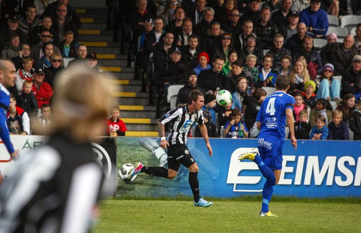 „Þetta var ágætis leikur hjá mér en ég hefði alveg getað spilað betur,“ sagði Gary Martin þegar Fréttablaðið tilkynnti honum að hann væri besti leikmaður 9. umferðar Pepsi-deildar karla. Gary Martin skoraði öll þrjú mörk KR í 3-2 útisigri á Fylki og hann og Vesturbæjarliðið sitja nú á toppnum, hann er markahæstur í deildinni með sex mörk og KR er með fimm stiga forskot í efsta sætinu.Búinn að finna skotskóna „Ég hef ekki verið að bíða eftir fyrstu þrennunni en hef frekar verið að bíða eftir því að mörkin færu að detta inn hjá mér. Nú er ég búinn að skora í þremur deildarleikjum í röð og vonandi búinn að finna skotskóna. Ég og KR erum á toppnum eftir níu umferðir og ég yrði afar ánægður ef sama staða verður upp á teningnum í lok tímabilsins,“ segir Gary. Gary hefur fundið fyrir gagnrýni í upphafi sumars. „Mér fannst ég vera að spila ágætlega en það er ekki slæm tilfinning að fólk hafi búist við meiru. Nú er ég byrjaður að skora og það ætti að vera gott fyrir bæði mig og KR,“ segir Gary. „Liðsandinn er mjög góður og við höfðum allir góða tilfinningu fyrir þessu sumri eftir æfingaferðina til Spánar. Ég kom ekki í KR til að gera stuttan samning, skora mikið af mörkum og fara síðan. Ég ætlaði mér alltaf að koma mér vel fyrir og vinna titla með KR,“ segir Gary. „Það var stimplað inn í mig frá undirskrift að þetta snerist allt um að hjálpa liðsfélögunum. Hér eru menn eins og Bjarni sem hafa spilað allan ferilinn með toppliðum og unnið ófáa titlana. Þegar slíkir menn segja þér eitthvað þá hlustar þú,“ sagði Gary. Það er augljóst að hann lítur upp til Bjarna og það kemur vel fram þegar hann er spurður út í það hvort hann verði áfram vítaskytta KR-liðsins. „Ég held að Bjarni leyfi mér ekki að koma nálægt vítapunktinum eftir vítið mitt á móti Víkingi þannig að mörkin mín í sumar munu koma úr opnum leik,“ segir Gary léttur. Gary viðurkennir að það sé allt annað að spila með KR en með ÍA þar sem hann var á undan. „Ég vissi alveg að það fylgir því pressa að spila fyrir KR og Rúnar sagði mér að allir hötuðu KR nema KR-ingarnir sjálfir. Það vilja allir vinna KR og mér fannst það skrítið til að byrja með. Ég hef samt verið í búningsklefanum fyrir leik á móti KR og ég veit það skiptir menn miklu máli að vinna þá,“ segir Gary. Hann er fyrsti Englendingurinn til að skora þrennu í efstu deild á Íslandi og fyrsti erlendi leikmaðurinn til að skora þrennu fyrir KR síðan að Mihajlo Bibercic náði því 1995. „Ég vissi það ekki en það kallar vissulega fram bros að vera fyrsti Englendingurinn til að skora þrennu í Pepsi-deildinni,“ segir Gary.Engin galdrabrögð „Það vita allir í KR að ég hef verið að spila vel og skila mínu til liðsins. Það hafa ekki verið nein galdrabrögð sem hafa gefið Baldri og Óskari pláss til að vinna með. Það er samvinna allra í liðinu að opna fyrir þá og ef ég er stífdekkaður þá er einhver annar frír. Baldur var í strangri gæslu í gær og ég náði að nýta mér það og skora þrjú mörk,“ segir Gary. En hvað með markmið sumarsins? „Ég setti mér það markmið fyrir tímabilið að skora eitt mark í hverjum tveimur leikjum. Nú veit maður ekki hvað gerist, ég er kominn með sex mörk í níu leikjum. Maður gæti komist á flug og þá veit maður aldrei. Aðalmarkmiðið mitt er samt að vinna deildina með KR,“ segir Gary að lokum.