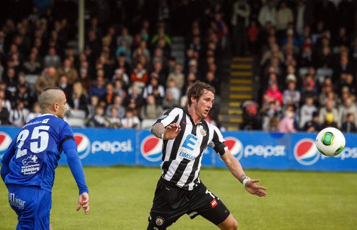 Bjarni leyfir mér ekki að koma nálægt vítapunktinum Óskar Ófeigur Jónsson skrifar 2. júlí 2013 06:30 Gary Martin er markahæsti leikmaður Pepsi-deildarinnar eftir þrennuna á móti Fylki í Árbænum á sunnudagskvöldið. Mynd/Anton „Þetta var ágætis leikur hjá mér en ég hefði alveg getað spilað betur,“ sagði Gary Martin þegar Fréttablaðið tilkynnti honum að hann væri besti leikmaður 9. umferðar Pepsi-deildar karla. Gary Martin skoraði öll þrjú mörk KR í 3-2 útisigri á Fylki og hann og Vesturbæjarliðið sitja nú á toppnum, hann er markahæstur í deildinni með sex mörk og KR er með fimm stiga forskot í efsta sætinu.Búinn að finna skotskóna „Ég hef ekki verið að bíða eftir fyrstu þrennunni en hef frekar verið að bíða eftir því að mörkin færu að detta inn hjá mér. Nú er ég búinn að skora í þremur deildarleikjum í röð og vonandi búinn að finna skotskóna. Ég og KR erum á toppnum eftir níu umferðir og ég yrði afar ánægður ef sama staða verður upp á teningnum í lok tímabilsins,“ segir Gary. Gary hefur fundið fyrir gagnrýni í upphafi sumars. „Mér fannst ég vera að spila ágætlega en það er ekki slæm tilfinning að fólk hafi búist við meiru. Nú er ég byrjaður að skora og það ætti að vera gott fyrir bæði mig og KR,“ segir Gary. „Liðsandinn er mjög góður og við höfðum allir góða tilfinningu fyrir þessu sumri eftir æfingaferðina til Spánar. Ég kom ekki í KR til að gera stuttan samning, skora mikið af mörkum og fara síðan. Ég ætlaði mér alltaf að koma mér vel fyrir og vinna titla með KR,“ segir Gary. „Það var stimplað inn í mig frá undirskrift að þetta snerist allt um að hjálpa liðsfélögunum. Hér eru menn eins og Bjarni sem hafa spilað allan ferilinn með toppliðum og unnið ófáa titlana. Þegar slíkir menn segja þér eitthvað þá hlustar þú,“ sagði Gary. Það er augljóst að hann lítur upp til Bjarna og það kemur vel fram þegar hann er spurður út í það hvort hann verði áfram vítaskytta KR-liðsins. „Ég held að Bjarni leyfi mér ekki að koma nálægt vítapunktinum eftir vítið mitt á móti Víkingi þannig að mörkin mín í sumar munu koma úr opnum leik,“ segir Gary léttur. Gary viðurkennir að það sé allt annað að spila með KR en með ÍA þar sem hann var á undan. „Ég vissi alveg að það fylgir því pressa að spila fyrir KR og Rúnar sagði mér að allir hötuðu KR nema KR-ingarnir sjálfir. Það vilja allir vinna KR og mér fannst það skrítið til að byrja með. Ég hef samt verið í búningsklefanum fyrir leik á móti KR og ég veit það skiptir menn miklu máli að vinna þá,“ segir Gary. Hann er fyrsti Englendingurinn til að skora þrennu í efstu deild á Íslandi og fyrsti erlendi leikmaðurinn til að skora þrennu fyrir KR síðan að Mihajlo Bibercic náði því 1995. „Ég vissi það ekki en það kallar vissulega fram bros að vera fyrsti Englendingurinn til að skora þrennu í Pepsi-deildinni,“ segir Gary.Engin galdrabrögð „Það vita allir í KR að ég hef verið að spila vel og skila mínu til liðsins. Það hafa ekki verið nein galdrabrögð sem hafa gefið Baldri og Óskari pláss til að vinna með. Það er samvinna allra í liðinu að opna fyrir þá og ef ég er stífdekkaður þá er einhver annar frír. Baldur var í strangri gæslu í gær og ég náði að nýta mér það og skora þrjú mörk,“ segir Gary. En hvað með markmið sumarsins? „Ég setti mér það markmið fyrir tímabilið að skora eitt mark í hverjum tveimur leikjum. Nú veit maður ekki hvað gerist, ég er kominn með sex mörk í níu leikjum. Maður gæti komist á flug og þá veit maður aldrei. Aðalmarkmiðið mitt er samt að vinna deildina með KR,“ segir Gary að lokum. Pepsi Max-deild karla Mest lesið Viðar Örn leitaði sér aðstoðar við áfengis- og spilafíkn Íslenski boltinn „Þetta er ekki flókið“ Handbolti „Donald Trump er algjör hálfviti“ Sport Rúmlega hálfur milljarður manna sótti um miða á HM Fótbolti Börsungar sluppu fyrir horn Fótbolti Tindastóll - ÍR 101-90 | Stólarnir fóru létt með Breiðhyltinga Körfubolti Spálíkan kippir okkur niður á jörðina fyrir EM Handbolti „Búið að rífa úr honum stælana, egóið og hrokann“ Handbolti „Ég held að þetta verði bara betra héðan í frá“ Körfubolti „Var í raun bara verið að yfirspila okkur“ Körfubolti Fleiri fréttir Viðar Örn leitaði sér aðstoðar við áfengis- og spilafíkn Trúin eykst á Suðurnesjum með komu McLaughlin Blikar farnir að fylla í skörðin Víkingur og Breiðablik mætast í fyrsta leik Bestu deildarinnar Rafael Máni eltir rætur sínar upp á Skaga Tveir ungir varnarmenn til FH Kristín Dís áfram í herbúðum Blika Miðbær Reykjavíkur er Íslandsmeistari Snýr aftur til Íslands og tekur við ÍBV Róbert með þrennu í sigri KR Fram lagði Leiknismenn Landsliðsbræður Palestínu sameinast í Keflavík Bikarhetjan til KA Þrótti berst mikill liðsstyrkur úr Keflavík Jón Guðni aðstoðar Ólaf Inga Blikarnir eru búnir að missa 34 mörk og 25 stoðsendingar Birta eltir ástina og semur við Genoa Júlíus Mar seldur til Kristiansund Bæði Blikaliðin fá sánuklefa fyrir komandi tímabil Feginn að vera fluttur heim úr fátækrahverfinu í Kína Svekktur að fá ekki leyfi til að taka við ÍBV Alfreð hættur hjá Breiðabliki Skipulagsbreytingar á skrifstofu KSÍ Nýliðarnir fá bandarískan markvörð Júlíus sagður á förum frá KR til Noregs Vestri opnar knattspyrnuakademíu í Senegal Valur fær Dana til að fullmóta teymi sín Ingimar Stöle semur við Val Adda verður hægri hönd Ian Jeffs í sumar „Mér var bara tjáð að þeir ætluðu að leita eitthvað annað“ Sjá meira