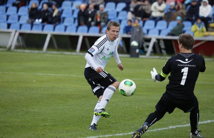 Hver þeirra fær gullskóinn? Óskar Ófeigur Jónsson skrifar 28. september 2013 10:00 Atli Viðar Björnsson er kominn í þriðja sinn í færi við Gullskóinn í lokaumferðinni. Hann hefur skorað þrjú mörk eftir að hafa komið inn á sem varamaður. Mynd/Valli KR-ingar eru Íslandsmeistarar, Víkingur og ÍA eru fallin í 1. deild og bæði FH og Stjarnan hafa tryggt sér sæti í Evrópukeppninni að ári. Það er því ekki mikið undir hjá liðunum í lokaumferð Pepsi-deildar karla en markahæstu mennirnir eru aftur á móti ekki búnir að segja sitt síðasta í baráttunni um gull-, silfur- og bronsskóinn. Fjórir leikmenn eiga raunhæfa möguleika á því að fá tilnefninguna markakóngur en Framarinn Hólmbert Aron Friðjónsson er þó ekki í sterkri stöðu enda tveimur mörkum á eftir efstu mönnum og í heimsókn hjá Íslandsmeisturum KR. KR-ingurinn Gary Martin er markahæstur og verður alltaf hærri en Viðar Örn Kjartansson verði þeir jafnir því Englendingurinn hefur spilað í mun færri mínútur. Rúnar Kristinsson, þjálfari KR, hefur tekið hann fjórtán sinnum út af í sumar, sem kemur sér vel núna. Viðar hefur aðeins verið tekinn einu sinni út af og það á 87. mínútu. Gary Martin hefur verið sjóðheitur enda með fimm mörk í síðustu fjórum leikjum en Viðar Örn Kjartansson hefur skorað jafnt og þétt í allt sumar og er með þrjú mörk í síðustu fjórum leikjum. Sá allra heitasti í deildinni síðustu vikurnar hefur hins vegar verið FH-ingurinn Atli Viðar Björnsson, sem hefur skorað fimm mörk á síðustu 130 mínútum eða mark á 26 mínútna fresti. Atli Viðar er einn af markahæstu leikmönnum efstu deildar frá upphafi og enginn hefur skorað fleiri mörk fyrir FH í efstu deild. Atla vantar hins vegar gullskóinn til að fullkomna safnið. Hann fékk silfurskóinn 2009 og 2011 og bronsskóinn 2010. Atli Viðar missti af gullskónum fyrir fjórum árum þrátt fyrir að vera með þriggja marka forskot fyrir lokaumferðina því KR-ingurinn Björgólfur Takefusa skoraði fimm mörk í lokaumferðinni. Sumarið 2010 skoraði Atli Viðar jafnmörg mörk og þeir markahæstu en lék þá fleiri leiki. Hér fyrir neðan eru upplýsingar um markahæstu leikmenn deildarinnar en þar er hægt að sjá tölur yfir leiki og spilaðar mínútur í sumar en það eru einmitt þær tölur sem ráða röðinni skori leikmenn jafnmörg mörk. Þessir eiga möguleika á því að vinna gullskóinn í dag:Mynd/AntonGary John Martin 22 ára framherji KR 12 mörk 21 leikur/1678 mínúturSkór í skápnum EnginnHitastigið 5 mörk í síðustu 4 leikjumMörk í fyrri leiknum 0 mörk á 90 mínútum á móti Fram (úti) ---Viðar Örn Kjartansson 22 ára framherji Fylkis12 mörk 21 leikur/1887 mínúturSkór í skápnum EnginnHitastigið 3 mörk í síðustu 4 leikjumMörk í fyrri leiknum 0 mörk á 90 mínútum á móti ÍA (heima) ---Atli Viðar Björnsson 33 ára framherji FH11 mörk 18 leikir/1044 mínúturSkór í skápnum 2 silfurskór og einn bronsskórHitastigið 5 mörk í síðustu 4 leikjumMörk í fyrri leiknum 0 mörk á 17 mínútum á móti Stjörnunni (úti) ---Hólmbert Aron Friðjónsson 20 ára framherji Fram10 mörk 20 leikir/1599 mínúturSkór í skápnum EnginnHitastigið 1 mark í síðustu 5 leikjumMörk í fyrri leiknum 1 mark á 90 mínútum á móti KR (heima) --Chukwudi Chijindu 27 ára framherji Þórs 9 mörk 17 leikir/1321 mínúta --Hörður Sveinsson 30 ára framherji Keflavíkur 9 mörk 20 leikir/1537 mínútur - Á bronsskó síðan 2004 --Halldór Orri Björnsson 26 ára miðjumaður Stjörnunnar 9 mörk 20 leikir/1800 mínútur --Björn Daníel Sverrisson 23 ára miðjumaður FH 9 mörk 21 leikur/1875 mínútur - Er í banni í dag Pepsi Max-deild karla Mest lesið Albert svaraði eftir að hafa verið sakaður um hugleysi Fótbolti Óli Jó kallar ráðninguna á Jóa Kalla algjört bull Íslenski boltinn „Hann er með einhverjar Ibiza-myndir af Slot“ Enski boltinn Dæmd í fjögurra ára fangelsi Fótbolti Þriggja ára strákur setti heimsmet í skák Sport „Ég myndi bróka hann inn í klefa“ Körfubolti Búist við að Salah verði hent úr hóp Enski boltinn Langhlauparar í meiri hættu að fá krabbamein Sport „Hortugasta klapp sem ég hef séð“ Körfubolti Sér bara eina leið fyrir Salah: „Komi og biðjist innilega afsökunar“ Enski boltinn Fleiri fréttir Óli Jó kallar ráðninguna á Jóa Kalla algjört bull „Ég elska þig Ísland, takk fyrir allt!“ Sextán ára með fernu fyrir meistara Víkings Valur dregur sig úr Bose-bikarnum „Sagði bara við hann: Djöfulsins fíflið þitt“ Yngir upp í allt of gamalli deild Þróttur keypti Adam Árna frá Grindavík Ástæðan fyrir því að Þorlákur hætti: „Ég var ekki hrifinn af þessu“ Þorlákur sagði upp störfum hjá ÍBV Þrjár ungar KR-konur leggja skóna á hilluna Murielle elti Óskar í Garðabæinn Segir dökk ský yfir íslensku knattspyrnuhreyfingunni Rúnar sækir gamlan félaga sinn inn í þjálfarateymið Fór frá því að mæta á landsliðsæfingu í það að vera fárveikur í öndunarvél Jasmín kom til að vinna titla og er farin frá Val Framlengir við Breiðablik og nálgast fimm hundruð leikina KSÍ skiptir um mótakerfi og smíðar nýjan vef Damir Muminovic til Grindavíkur Vestramenn sækja son sinn suður Einn fljótasti leikmaður Bestu deildarinnar orðinn Þróttari Aron Jó leystur undan samningi hjá Val Kynntu fyrst Loga Ólafs en svo Jóa Kalla sem á að koma FH á toppinn Atli kveður KR og flytur norður Theodór Elmar hættur hjá KR Hrannar Bogi inn eftir brotthvarf Caulkers Segir ónefndan aðila hafa unnið gegn sér hjá Breiðabliki Alex Freyr frá Fram í Njarðvík Víkingar fá ungan og spennandi kantmann Nýliðarnir fá níutíu leikja mann Jónatan og formaður hissa á tali um KR-löngun Sjá meira