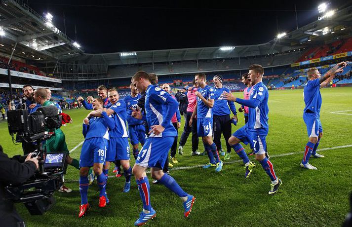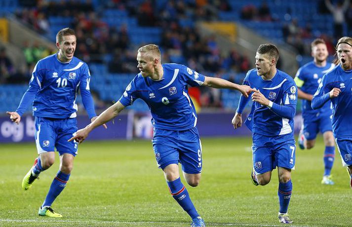 Þeir sem voru spenntir í aðdraganda viðureignar Íslendinga og Norðmanna í Ósló í undankeppni heimsmeistaramótsins fóru vafalítið á taugum í þær tvær klukkustundir sem leikurinn stóð yfir í gær. Fjölmiðlamenn af Klakanum voru engin undantekning. Frá fyrstu mínútu var ljóst að kvöldið yrði langt og ekki fyrir hjartveika. Leikmenn Íslands voru áhorfendur fyrstu tólf mínúturnar og bættust þannig í hóp á annað þúsund stuðningsmanna sem létu vel í sér heyra frá fyrstu mínútu. Sofandaháttur í vörn heimamanna var þó eitthvað sem Gylfi Þór Sigurðsson og Kolbeinn Sigþórsson gátu nýtt sér. Sá síðarnefndi skoraði í fimmta landsleiknum í röð.Náðum einni góðri sókn „Við byrjuðum ekki vel og ekkert lá í loftinu. Við náum einni góðri sókn og nýttum það vel,“ sagði markaskorarinn. Markið efldi sjálfstraustið lítillega en hvergi nærri nógu mikið. Flestir þeirra bláklæddu virkuðu stressaðir og ekki nærri jafnklárir í leikmenn og undirritaður hafði á tilfinningunni fyrir leikinn. Jöfnunarmark Norðmanna var verðskuldað og jafnt í hálfleik. „Við spiluðum ekki nógu vel sem lið í fyrri hálfleik,“ sagði Lars Lagerbäck. Birkir og Eiður Smári fengu sitt dauðafærið hvor snemma í síðari hálfleik en Jarstein í markinu sýndi frábær tilþrif. Norðmenn voru alltaf hættulegir þótt færi væru fá. Því var léttirinn mikill þegar tíðindin bárust frá Bern.Heimamenn komnir í 1-0 og stundarfjórðungur eftir af leiknum. Stuðningsmenn Íslands á Ullevaal ærðust og það sem eftir lifði leiks stóðu þeir í stúkunni og öskruðu úr sér lungun. Fréttirnar frá Bern efldu einnig okkar menn sem settu í áður óséðan gír í leiknum. Þeir fundu bragðið af umspilinu og kunnu að meta það. Norðmenn komust aldrei nærri því að skora og okkar menn voru ekki fjarri því að tryggja sér stigin þrjú.Heyrðu að Sviss hefði skorað „Við heyrðum fögnuðinn í áhorfendum og vissum að Sviss hafði skorað. Það er eins og það hafi komið einhver ró yfir mannskapinn eftir það og við fórum að spila boltanum.“ Það er til marks um hve langt landslið okkar er komið þegar jafntefli við Noreg á útivelli eru hálfgerð vonbrigði. Sækja átti til sigurs og sleppa því að treysta á hjálp frá Sviss. Okkar menn voru fjarri sínu besta enda í nýrri stöðu. Þegar flautað var til leiksloka var takmarkinu þó náð. Sæti í umspili staðreynd sem var eitthvað sem aðstoðarþjálfinn Heimir Hallgrímsson brosti að þegar Lagerbäck nefndi það sem raunhæft markmið í fyrsta skipti fyrir tveimur árum. Lái honum hver sem vill. Um draum var að ræða sem nú er orðinn að veruleika. „Við njótum kvöldsins en það er mikilvægt að leikmenn átti sig á því að þetta var ekki lokaleikurinn. Það eru tvö þrep eftir. Þetta var aðeins tíunda lota af tíu. Hnefaleikakappi sem stendur enn uppréttur eftir tíundu lotu á enn möguleika,“ sagði Lagerbäck og undir þau orð tók Gylfi Þór.Getum átt tvo frábæra leiki„Það getur allt gerst í tveimur leikjum. Við getum átt frábæra leiki og lélega leiki líka. Við bíðum spenntir eftir nóvember.“ Þótt strákarnir okkar hafi oft spilað betur þá náðust góð úrslit, öfugt við það sem hefur svo lengi verið tilfellið. Ágæt frammistaða en léleg úrslit. Strákarnir okkar hafa farið á kostum í yfirstandandi undankeppni frá fyrsta leik þótt lægðir hafa eðlilega komið inn á milli. Hæðirnar hafa verið mun fleiri, hvort sem litið er til leikjanna í Laugardalnum eða á útivelli. Sögulegu afreki er náð sem landsmenn allir geta verið stoltir af. Strákarnir eru þó ekki hættir.