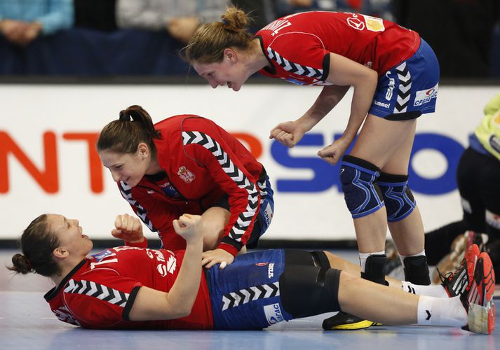 Dragana Cvijic átti stórkostlegan leik með Serbum þegar liðið skellti Norðmönnum á HM kvenna á miðvikudagskvöldið. Átta sinnum skaut hún á markið og alltaf hafnaði boltinn í netinu. Þá tók hún hraustlega á því í vörninni gegn norsku stelpum sem áttu fá svör. Lýsandi leiksins, Harald Bredeli, á TV 2 hefur verið gagnrýndur fyrir orðaval sitt á meðan leik stóð. Cvijic er stór og stæðileg, 185 cm á hæð og 95 kíló. Varð honum tíðrætt um líkamsbyggingu Serbans. „Við sjáum að hún hefur ekki misst úr kvöldverð síðan hún fæddist fyrir 23 árum,“ sagði Bredeli þegar Cvijic nældi í vítakast. Verdens Gang fjallar um málið. Else-Marthe Sörlie Lybekk, sem spilaði 215 landsleiki fyrir Noreg, sagði lýsandann líklega hafa tjáð sig án þess að hugsa. Minnti hún á átta ára gamalt atvik þegar Bredeli sagði í beinni útsendingu að handboltakonan Gro Hammerseng væri glæsilegasta lesbía sem Noregur hefði alið. Lýsandinn gerði sér ekki grein fyrir að kveikt væri á hljóðnemanum. Fyrir vikið var Hammerseng komin opinberlega út úr skápnum gegn vilja sínum. Eftir leikinn gerði Bredeli tapleikinn upp á samfélagsmiðlinum Twitter í nokkrum orðum. „Okkar leikmenn og liðið hafa átt betri daga. Serbar eiga mikið hrós skilið og spiluðu sinn besta leik frá upphafi. Cvijic sýndi fram á mikilvægi kvöldverðar.“ Lybekk segir handboltafólk af öllum stærðum blómstra í íþróttinni. „Hún er einn besti línumaður í heimi og leiðtogi bæði í félagsliði sínu og landsliði. Svona ummæli eiga ekki heima í norsku sjónvarpi. Það eru til aðrar leiðir til þess að vera fyndinn.“Dragana CvijicMynd/NordicPhotos/Getty