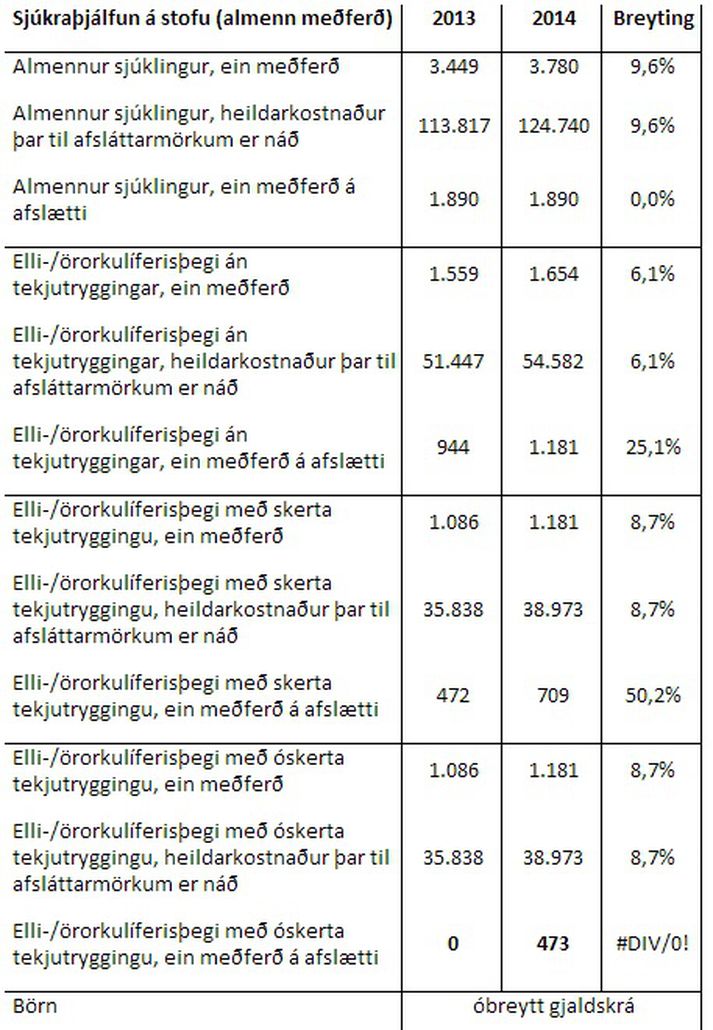 Hlutur sjúklinga vegna sjúkraþjálfunar hækkar um 9,6 % Stefán Árni Pálsson skrifar 3. janúar 2014 13:44 Heilbrigðisráðuneytið hækkar hlut sjúklinga í kostnaðarþátttöku vegna sjúkraþjálfunar um 9,6 %. mynd/samsett Á sama tíma og lagt er að fyrirtækjum og sveitarfélögum að halda í skefjum gjaldskrárhækkunum og álögum á almenning, gengur heilbrigðisráðuneytið fram í því að hækka hlut sjúklinga í kostnaðarþátttöku vegna sjúkraþjálfunar um 9,6 %. Þetta kemur fram í fréttatilkynningu frá Unni Pétursdóttur, formaður Félags sjúkraþjálfara. Um er að ræða breytingu á gjaldskrá sem felst í því að ríkið dregur úr greiðsluþátttöku sinni og því hækkar sú upphæð sem skjólstæðingar sjúkraþjálfara þurfa að greiða. Þessi breyting felur því ekki í sér taxtahækkun til sjúkraþjálfara heldur er um að ræða auknar álögur á skjólstæðinga þeirra. Eins og sjá má á neðangreindu koma breytingarnar mismunandi út fyrir einstaka hópa, allt frá engri breytingu upp í 50% hækkun sjúklingahluta gjaldsins. Eftir breytinguna er greiðsluhlutfall almenns sjúklings komið upp í 80% heildargjaldsins fyrir almennan meðferðartíma. Hér að neðan má sjá skýringarmynd hvernig breytingarnar eiga eftir að hafa áhrifa á verð þeirra sem sækja meðferðar hjá sjúkraþjálfara. Mest lesið Skipuðu húsráðanda að elda fyrir sig áður en ræningjarnir ruddust inn Innlent Föðurnum enn haldið sofandi í öndunarvél Innlent Halldór Blöndal borinn til grafar Innlent Frímúrarareglan vill lögbann á nýjar lögreglureglur Erlent Kolbrúnu Bergþórs sagt upp á Mogganum Innlent Trump hótar skelfilegum afleiðingum afvopnist Hamas ekki Erlent Stoltastur af veiðigjaldinu og telur aðrar skattabreytingar hafa lítil áhrif á heimilin Innlent Fannst látinn utandyra í Borgarnesi Innlent Sagt upp eftir 26 ár á Morgunblaðinu Innlent Erlendir ferðamenn talsvert slasaðir eftir áreksturinn Innlent Fleiri fréttir Stoltastur af veiðigjaldinu og telur aðrar skattabreytingar hafa lítil áhrif á heimilin Föðurnum enn haldið sofandi í öndunarvél Fylgi stjórnarflokkanna dalar Föðurnum í Suður-Afríku enn haldið sofandi Skipuðu húsráðanda að elda fyrir sig áður en ræningjarnir ruddust inn Fannst látinn utandyra í Borgarnesi Halldór Blöndal borinn til grafar Fimm með vanlíðan komast í Skjólshús í tvær vikur Kolbrúnu Bergþórs sagt upp á Mogganum Sagt upp eftir 26 ár á Morgunblaðinu Kominn tími á gos og Veðurstofan öllu viðbúin Sýknuð af ólöglegum innflutningi lyfja vegna rangra upplýsinga Lyfjastofnunar Þriggja hatta Inga segir engin ráðherraskipti í pípunum Desember að komast á lista yfir þá allra hlýjustu Erlendir ferðamenn talsvert slasaðir eftir áreksturinn Samið um Skjólshús og gos gæti komið á hverri stundu Hér verða áramótabrennur á gamlársdag 2025 Björn Ingi leiðir ekki Miðflokksmenn í borginni Gestir á Edition stukku út á náttfötunum Þurrkuðust út af þingi en sitja á tugum milljóna króna Óvenju mikið að gera hjá slökkviliðinu Sósíalistar líta til harðstjórnarríkja sem fyrirmynda Þrír réðust á einn og höfðu af honum farsíma Tvær þyrlur sækja fjóra eftir alvarlegan árekstur á Fagurhólsmýri „Rúllandi rafmagnsleysi“ alla daga og tífaldur þungi í árásum „Gamla góða Ísland, bara betra“ Gróður farinn að grænka fyrir norðan Ferðakostnaður forsetans rúmar tuttugu milljónir Sakamálin sem einkenndu árið sem er á enda Ekki boðlegt að þingið hunsi þjóðaratkvæðagreiðslu Sjá meira