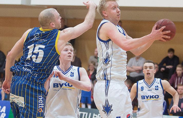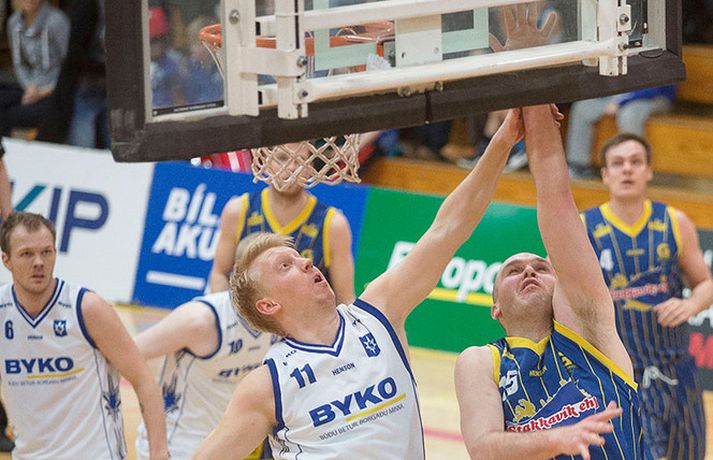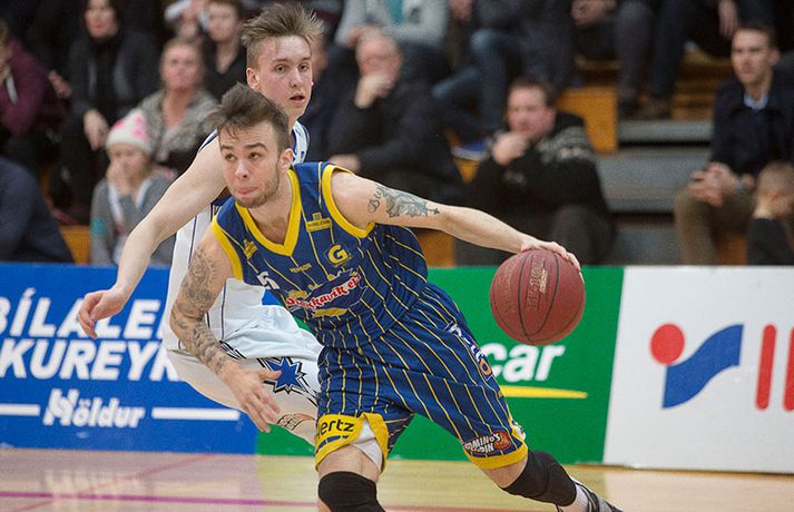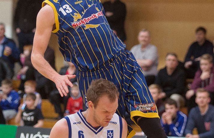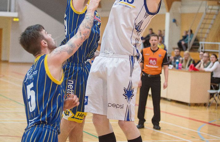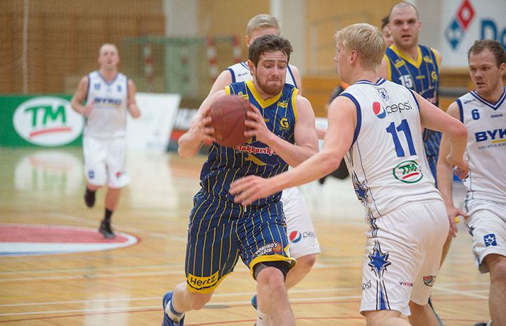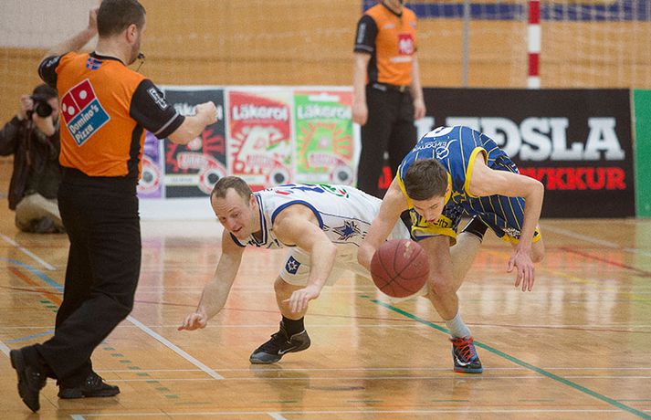 Grindvíkingar unnu nauman sigur á kanalausum Stjörnumönnum, 94-90, í Garðabænum í kvöld þegar liðin mættust í æsispennandi leik í Dominos-deild karla í körfubolta.Daníel Rúnarsson, ljósmyndari Vísis og Fréttablaðsins, var á leiknum í Ásgarði og náði þessum myndum sem sjá má bæði hér fyrir ofan og hér fyrir neðan. Leikurinn var jafn og spennandi frá upphafi til enda en Grindavík vann á endanum fjögurra stiga sigur eftir æsispennandi lokamínútur. Einbeitingarskortur virtist hrjá Íslandsmeistarana í upphafi leiks enda viðurkenndi Sigurður Þorsteinsson að komandi bikarbarátta væri ofarlega í hugum manna. Ungir leikmenn Stjörnunnar voru vel gíraðir í byrjun og liðið fékk framlag frá nánast öllum. Eftir fyrsta fjórðunginn náðu Grindvíkingar upp betri takti og voru á eldi í upphafi 2. leikhluta. Þeir voru eftir það oftast hænuskrefi á undan en Stjarnan átti nóg á tanknum og leikurinn var hnífjafn. Það var hiti í mönnum sem létu dómarana fara nokkuð í taugarnar á sér. Bæði lið gerðu sig sek um slæm mistök í á lokasprettinum en á endanum reyndust mistök Stjörnunnar á ögurstundu vera dýrkeyptari og liðið tapaði fjórða leik sínum í röð. Garðbæingar klúðruðu opnum skotum og töpuðu boltanum klaufalega, atvik sem munu fara í gegnum hugann þegar þeir leggjast á koddann í kvöld. Stjarnan er í 7.-8. sæti með jafnmörg stig og Snæfell sem vann ÍR í kvöld. Grindavík er í þriðja sæti en liðin í kring eiga leiki inni.Sigurður Þorsteins: Stefnum á að vinna alla leiki sem eftir eru"Við höfðum þetta af," sagði Sigurður Þorsteinsson, leikmaður Grindavíkur. "Við byrjuðum þetta skelfilega en löguðum það í öðrum leikhluta. Svo kom stígandi í leikinn og við kláruðum hann." "Bikarleikurinn er ofarlega í hugum manna og ætli það hafi ekki truflað okkur í byrjun. Það var síðan fjör í þessu í lokin, tæknivillur og svona. Það verður að fylgja. Ýmsir dómar fóru í taugarnar á okkur og við fórum örugglega í taugarnar á dómurunum. Þetta fór í báðar áttir." "Við þurftum að klára leikinn upp á þriðja sætið. Það er langskot á toppinn en við verðum bara að halda okkar braut. Markmið okkar er augljóst: Vinna allt, alla leiki sem eftir eru."Dagur Kár: Á morgun er nýr dagur "Það er alltaf svekkjandi að tapa. Við hefðum alveg getað unnið þennan leik, við vorum að spila fínt í dag en náðum ekki að klára þetta," sagði Dagur Kár Jónsson, leikmaður Stjörnunnar. "Við byrjuðum vel, komumst vel í gang og náðum fínu forskoti. Við vorum svo að fá fín skot en þau voru ekki að detta. Boltinn vildi ekki niður og Grindavík náði að komast inn í leikinn." "Það er leiðinlegt að kenna óheppni um. Við hefðum alltaf getað gert betur. Nú notum við þennan leik bara í framhaldinu til að reyna að standa okkur betur. Það er hægt að taka jákvæða hluti úr þessu."Matthew „Junior" Hairston var fjarri góðu gamni í kvöld hjá Stjörnunni. "Við höfum verið í tveimur jöfnum leikjum meðan Junior er í burtu. Það verður fróðlegt að sjá hvernig þetta verður þegar hann kemur aftur og við verðum með heilt lið. Við svekkjum okkur í kvöld en á morgun er nýr dagur og við höldum áfram að reyna að bæta okkur," sagði Dagur.Stjarnan-Grindavík 90-94 (30-20, 19-25, 17-26, 24-23) Stjarnan: Justin Shouse 36/5 stoðsendingar, Marvin Valdimarsson 22/8 fráköst, Dagur Kár Jónsson 16/4 fráköst, Fannar Freyr Helgason 8/10 fráköst/5 stoðsendingar, Jón Sverrisson 4/4 fráköst, Tómas Þórður Hilmarsson 2/8 fráköst, Björn Steinar Brynjólfsson 2. Grindavík: Jóhann Árni Ólafsson 24/7 fráköst, Sigurður Gunnar Þorsteinsson 21/5 fráköst/5 stolnir, Earnest Lewis Clinch Jr. 19/6 stoðsendingar, Ómar Örn Sævarsson 9/13 fráköst, Ólafur Ólafsson 7/4 fráköst, Jón Axel Guðmundsson 7, Þorleifur Ólafsson 4, Kjartan Helgi Steinþórsson 3.Leiklýsing: Stjarnan - Grindavík LEIK LOKIÐ, 90-94: Aftur fór Jóhann á vítalínuna en skoraði að þessu sinni úr báðum. Þar með kláraðist möguleiki Stjörnunnar. Stigahæstu menn koma inn eftir smá stund. 4. leikhluti, 86-92: Stjarnan sendi Jóhann Árna á vítalínuna og hann misnotaði annað skot sitt. Stjarnan fór svo illa að ráði sínu í næstu sókn. 18 sekúndur eftir. 4. leikhluti, 86-91: 50 sekúndur eftir og Grindavík tekur leikhlé. Ólafur Ólafsson fékk dæmda á sig sína fimmtu villu og þar með útilokun. Miði er möguleiki fyrir Garðbæinga. 4. leikhluti, 84-91: Ævintýraleg sókn Stjörnunnar, hvert skotið á fætur öðru en ekki vildi boltinn ofan í. Sigurður Þorsteinsson fór svo á vítalínuna fyrir Grindavík. Klúðraði fyrra skotinu en það síðara fór ofan í. Grindavík hélt boltanum og Clinch hitti úr góðu skoti og fékk víti að auki. 4. leikhluti, 84-87: 1:50 eftir. Dagur Kár Jónsson minnkaði í þrjú stig og Stjarnan vann svo boltann. 4. leikhluti, 82-87: Fannar Helgason hitti ekki einu sinni körfuhringinn, loftbolti. Sigurður Þorsteinsson fór upp og skoraði hinumegin. Stjarnan tekur leikhlé. 2:47 eftir á klukkunni. 4. leikhluti, 82-85: 4 mínútur eftir. Mönnum er heitt í hamsi. Skiljanlega. Stjarnan er með boltann. Sigurður Þorsteinsson með 4 villur hjá gestunum og þeir Jón og Tómas hjá Stjörnunni. 4. leikhluti, 80-81: Leikhlutinn um hálfnaður. Eftir klaufagang Stjörnunnar náði Grindavík að endurheimta forystuna í leiknum. En tæpara getur það ekki verið... Stjarnan er með boltann. 4. leikhluti, 78-77: Justin Shouse að koma heimamönnum yfir. Það er háspenna, lífshætta, stemning, stuð og allur pakkinn í Garðabænum.4. leikhluti, 74-77: Grindvíkingar hænuskrefi á undan en það virðist næg orka í Stjörnumönnum. Twitter: Viktor Hólmgeirsson @ViktorHrafn Koma svo Stjörnumenn - það v
