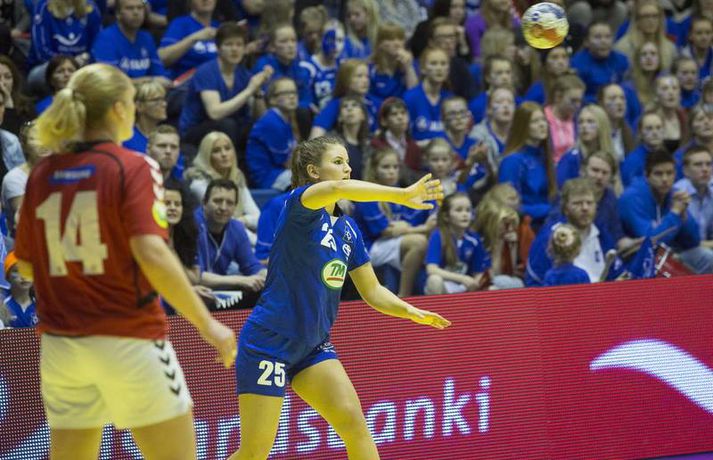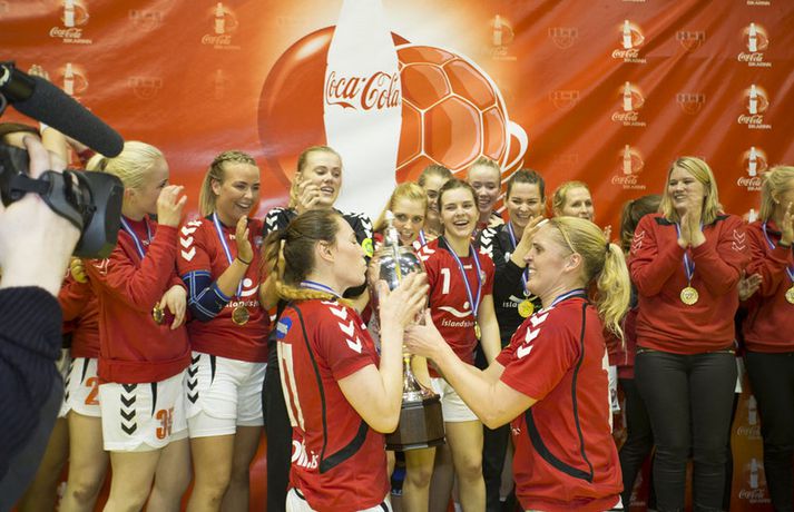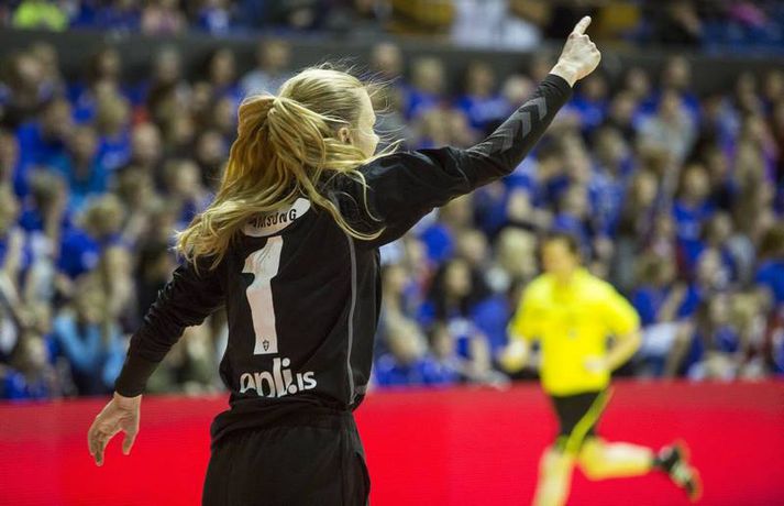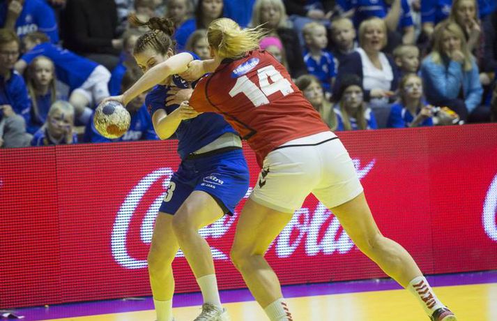 Valskonur héldu áfram sigurgöngu sinni í bikarkeppni kvenna í handbolta í dag þegar þær unnu fimm marka sigur á Stjörnunni, 24-19, í úrslitaleik Coca Cola bikars kvenna í Laugardalshöllinni.Daníel Rúnarsson, ljósmyndari Vísis og Fréttablaðsins, var í Laugardalshöllinni og tók þessar myndir hér fyrir ofan og neðan. Valskonur hafa þar með unnið bikarinn þrjú ár í röð og alls sex sinnum frá upphafi. Frábær vörn Valsliðsins í seinni hálfleiknum lagði öðrum fremur grunninn að sigrinum. Anna Úrsúla Guðmundsdóttir og markvörðurinn Berglind Íris Hansdóttir byrjuðu ekki tímabilið með Val en þær áttu báðar frábæran leik í dag. Anna var frábær í vörninni og skoraði að auki átta mörk. Berglind varði 22 skot í markinu og yfir 55 prósent skota sem á hana komu. Stjörnuliðið var 10-9 yfir í hálfleik og komst þremur mörkum yfir, 13-10, í upphafi seinni háfleiksins. Valsvörnin fór þá í gang fyrir alvöru og þær unnu síðustu 25 mínútur leiksins 14-6. Valsliðið tók öll völd í leiknum um miðjan hálfleikinn þegar þær skoruðu fimm mörk í röð, fengu ekki á sig mark í tíu mínútur og komust yfir í 21-17. Eftir það var leikurinn í höndum Hlíðarendakvenna. Eins og oft vill verða í hröðum spennandi leikjum var mikið um mistök en Valur náði fyrr tökum á spennustiginu og seigt hægt en örugglega fram úr í seinni hálfleik með frábæra vörn og markvörslu að vopni auk þess sem reynslu miklir leikmenn liðsins stjórnuðu leiknum af öryggi. Stjarnan náði aldrei að brjóta frábæra vörn Vals á bak aftur á sama tíma og Valur fann lausnir á vörn Stjörnunnar sem gaf eftir er leið á leikinn.Anna Úrsúla: Hátindur ferilsins að vera bikarmeistari „Það er svakalega góður árangur og við erum hrikalega sátt við okkur,“ sagði Anna Úrsúla um þá staðreynd að Valur hefur unnið bikarinn þrjú ár í röð. „Maður verður aldrei saddur og heldur alltaf áfram. Maður vill vera sigurvegari. „Markmaðurinn er magnaður. Hún er nýkomin aftur eftir tveggja ára frí. Hún er ótrúleg. Hún átti þessa vörn með okkur. „Við náum okkar styrkleikum inn í seinni hálfleiks sem voru ekki alveg inni í fyrri hálfleik og svo kom markvarslan með. Þá vissum við að þetta var að koma. „Það er alltaf mjög skemmtilegt að koma hingað og spila í Höllinni. Það er fullt af fólki og þetta er hátindur ferilsins, að vera bikarmeistari,“ sagði Anna Úrsúla.Berglind Íris: Gaman að fá að taka þátt í þessu „Ég var og er hætt í raun og veru. Ég kem bara inn þegar Jenný (Guðný Jenný Ásmundsdóttir) meiðist alvarlega og það er gaman að fá að taka þátt í þessu, lyfta bikar,“ sagði Berglind Íris Guðmundsdóttir sem fór á kostum í marki Vals í dag. „Mér leið vel og það er frábært að spila fyrir aftan þessar stelpur sem gefa allt í þetta og hjálpa manni svo mikið. Það er ómetanlegt,“ sagði Berglind Íris sem skartaði vænu glóðurauga eftir leikinn. „Ég fékk skot í hausinn úr horninu. Þetta er hluti af þessu. Stefán er líka með glóðurauga þannig að við erum í stíl,“ sagði Berglind og átti þá við Stefán Arnarsson þjálfara Vals.Skúli: Náum ekki að keyra á þær „Við skorum 19 mörk í leiknum og þá gefur augað leið að miðað við fjölda sókna þá er það of lítið til að klára svona leik,“ sagði Skúli Gunnsteinsson þjálfari Stjörnunnar. „Við náum ekki að keyra nóg á þær og keyra hraðaupphlaupin okkar. Við vorum ekki nógu grimmar í seinni hluta seinni hálfleiks. Klikkum á færum og skutum ekki eins og við ætluðum að skjóta. „Þær fengu meira af ódýrum mörkum eins og eftir fráköst. „Við erum með frábært lið og förum í alla leiki til að vinna og hugsum ekki öðruvísi en það er mjög breytt aldursbil í liðinu og við látum þetta bara efla okkur. „Þeir segja það þessir allra bestu að maður þarf að tapa áður en maður vinnur,“ sagði Skúli.Vísir/DaníelVísir/DaníelVísir/DaníelVísir/DaníelVísir/DaníelVísir/DaníelVísir/DaníelVísir/DaníelVísir/DaníelVísir/Daníel