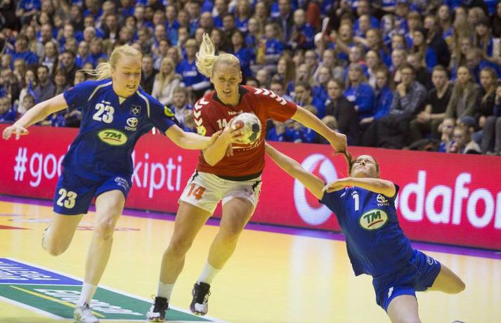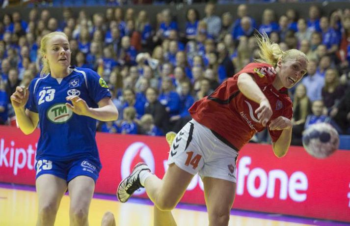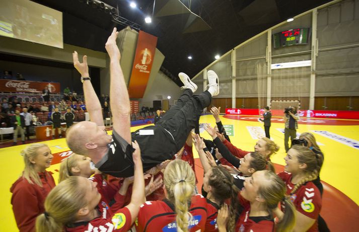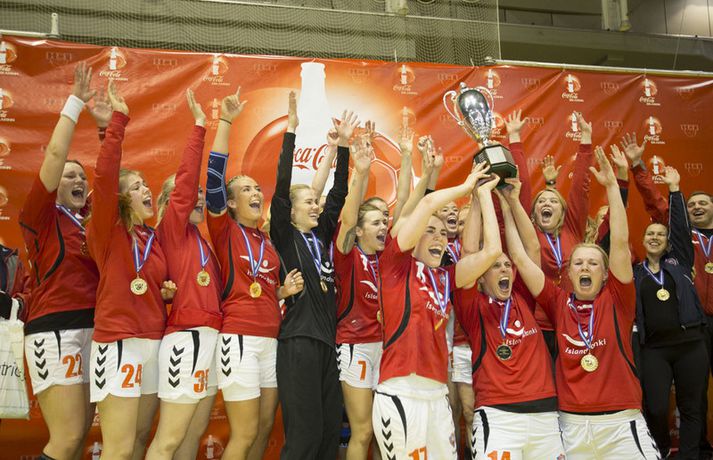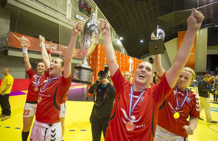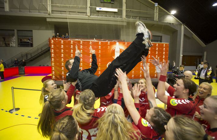 Valskonur bikarmeistarar þriðja árið í röð - Viðtöl og myndir Guðmundur Marinó Ingvarsson í Laugardalshöllinni skrifar 1. mars 2014 00:01 Valskonur héldu áfram sigurgöngu sinni í bikarkeppni kvenna í handbolta í dag þegar þær unnu fimm marka sigur á Stjörnunni, 24-19, í úrslitaleik Coca Cola bikars kvenna í Laugardalshöllinni.Daníel Rúnarsson, ljósmyndari Vísis og Fréttablaðsins, var í Laugardalshöllinni og tók þessar myndir hér fyrir ofan og neðan. Valskonur hafa þar með unnið bikarinn þrjú ár í röð og alls sex sinnum frá upphafi. Frábær vörn Valsliðsins í seinni hálfleiknum lagði öðrum fremur grunninn að sigrinum. Anna Úrsúla Guðmundsdóttir og markvörðurinn Berglind Íris Hansdóttir byrjuðu ekki tímabilið með Val en þær áttu báðar frábæran leik í dag. Anna var frábær í vörninni og skoraði að auki átta mörk. Berglind varði 22 skot í markinu og yfir 55 prósent skota sem á hana komu. Stjörnuliðið var 10-9 yfir í hálfleik og komst þremur mörkum yfir, 13-10, í upphafi seinni háfleiksins. Valsvörnin fór þá í gang fyrir alvöru og þær unnu síðustu 25 mínútur leiksins 14-6. Valsliðið tók öll völd í leiknum um miðjan hálfleikinn þegar þær skoruðu fimm mörk í röð, fengu ekki á sig mark í tíu mínútur og komust yfir í 21-17. Eftir það var leikurinn í höndum Hlíðarendakvenna. Eins og oft vill verða í hröðum spennandi leikjum var mikið um mistök en Valur náði fyrr tökum á spennustiginu og seigt hægt en örugglega fram úr í seinni hálfleik með frábæra vörn og markvörslu að vopni auk þess sem reynslu miklir leikmenn liðsins stjórnuðu leiknum af öryggi. Stjarnan náði aldrei að brjóta frábæra vörn Vals á bak aftur á sama tíma og Valur fann lausnir á vörn Stjörnunnar sem gaf eftir er leið á leikinn.Anna Úrsúla: Hátindur ferilsins að vera bikarmeistari „Það er svakalega góður árangur og við erum hrikalega sátt við okkur,“ sagði Anna Úrsúla um þá staðreynd að Valur hefur unnið bikarinn þrjú ár í röð. „Maður verður aldrei saddur og heldur alltaf áfram. Maður vill vera sigurvegari. „Markmaðurinn er magnaður. Hún er nýkomin aftur eftir tveggja ára frí. Hún er ótrúleg. Hún átti þessa vörn með okkur. „Við náum okkar styrkleikum inn í seinni hálfleiks sem voru ekki alveg inni í fyrri hálfleik og svo kom markvarslan með. Þá vissum við að þetta var að koma. „Það er alltaf mjög skemmtilegt að koma hingað og spila í Höllinni. Það er fullt af fólki og þetta er hátindur ferilsins, að vera bikarmeistari,“ sagði Anna Úrsúla.Berglind Íris: Gaman að fá að taka þátt í þessu „Ég var og er hætt í raun og veru. Ég kem bara inn þegar Jenný (Guðný Jenný Ásmundsdóttir) meiðist alvarlega og það er gaman að fá að taka þátt í þessu, lyfta bikar,“ sagði Berglind Íris Guðmundsdóttir sem fór á kostum í marki Vals í dag. „Mér leið vel og það er frábært að spila fyrir aftan þessar stelpur sem gefa allt í þetta og hjálpa manni svo mikið. Það er ómetanlegt,“ sagði Berglind Íris sem skartaði vænu glóðurauga eftir leikinn. „Ég fékk skot í hausinn úr horninu. Þetta er hluti af þessu. Stefán er líka með glóðurauga þannig að við erum í stíl,“ sagði Berglind og átti þá við Stefán Arnarsson þjálfara Vals.Skúli: Náum ekki að keyra á þær „Við skorum 19 mörk í leiknum og þá gefur augað leið að miðað við fjölda sókna þá er það of lítið til að klára svona leik,“ sagði Skúli Gunnsteinsson þjálfari Stjörnunnar. „Við náum ekki að keyra nóg á þær og keyra hraðaupphlaupin okkar. Við vorum ekki nógu grimmar í seinni hluta seinni hálfleiks. Klikkum á færum og skutum ekki eins og við ætluðum að skjóta. „Þær fengu meira af ódýrum mörkum eins og eftir fráköst. „Við erum með frábært lið og förum í alla leiki til að vinna og hugsum ekki öðruvísi en það er mjög breytt aldursbil í liðinu og við látum þetta bara efla okkur. „Þeir segja það þessir allra bestu að maður þarf að tapa áður en maður vinnur,“ sagði Skúli.Vísir/DaníelVísir/DaníelVísir/DaníelVísir/DaníelVísir/DaníelVísir/DaníelVísir/DaníelVísir/DaníelVísir/DaníelVísir/Daníel Olís-deild kvenna Mest lesið Harma rasíska og transfóbíska grein liðsfélaga Sveindísar Fótbolti Alfreð hissa: Veit að Íslendingar geta mun betur Handbolti Gjöf frá mömmu vatt rækilega upp á sig Sport „Fannst þetta verða svartara og svartara“ Handbolti Segir sönginn um Jota á tuttugustu mínútu hafa áhrif á leik Liverpool Enski boltinn Andri Lucas var kóngurinn á King Power í dag Enski boltinn Haaland fór sem Jókerinn að versla bleyjur Enski boltinn Liverpool féll síðast þegar liðið tapaði fimm í röð Enski boltinn Arne Slot: „Þetta er síðasta spurningin sem ég átti von á“ Enski boltinn Nott. Forest - Man. United | Tekst United að vinna fjórða leikinn í röð? Enski boltinn Fleiri fréttir „Fannst þetta verða svartara og svartara“ Alfreð hissa: Veit að Íslendingar geta mun betur Andri kallaður inn í hópinn fyrir meiddan Hauk Arnór Snær snýr aftur heim Besta handboltadeild heims missir aðalstyrktaraðila sinn Grafalvarleg staða: „Þurfum að fara í sársaukafullar aðgerðir“ ÍR áfram eftir sigur í Mosfellsbæ Uppgjörið: Þýskaland - Ísland 42-31 | Þrot í Þýskalandi Tilkynnti um óléttu og nýjan samning á sama tíma Patrekur hættur eftir dapurt gengi Stjörnunnar Rekinn fyrir ummæli sín um krabbameinssjúka handboltagoðsögn Janus Daði myndaður í heimsókn hjá Barcelona Epicbet sýni handboltann í leyfisleysi: „Enda ólöglegar síður“ Teitur inn í landsliðið Gísli bjó til meira en þriðjung markanna Haukur magnaður í sigri Löwen Blær skoraði þrj