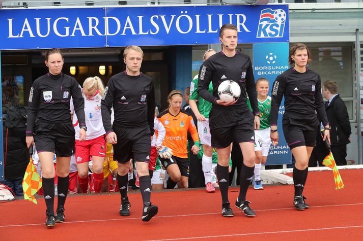 Þrjár íslenskar konur dæma á La Manga Óskar Ófeigur Jónsson skrifar 27. febrúar 2014 16:00 Rúna Kristín Stefánsdóttir (lengst til vinstri) og Bríet Bragadóttir (lengst til hægri) voru aðstoðardómarar Vilhjálmus Alvars Þórarinssonar í bikarúrslitaleik kvenna á síðasta tímabili. Vísir/Daníel Konurnar eru líka að fá verkefni erlendis eins og íslensku karlkynsdómararnir og heimasíða Knattspyrnusambands Íslands segir frá því í dag að þrjár íslenskar konur séu á leiðinni til suður Spánar í byrjun mars. Bríet Bragadóttir dómari og aðstoðardómararnir Birna Bergstað Þórmundsdóttir og Rúna Kristín Stefánsdóttir, munu dæma á æfingamóti U23 landsliða kvenna sem fram fer á La Manga á Spáni. Æfingamótið er í umsjón norska knattspyrnusambandsins og hefst nú í byrjun mars. Þarna fá þær tækifæri til að dæma hjá mörgum af efnilegri knattspyrnukonum heimsins. Íslensku stelpurnar munu starfa sem teymi á þremur leikjum. Þær dæma leik Englands og Svíþjóðar sem fer fram laugardaginn 1. mars, svo dæma þær leik Bandaríkjanna og Svíþjóðar sem fer fram mánudaginn 3. mars og loks dæma þær leik Noregs og Bandaríkjanna sem fer fram miðvikudaginn 5. mars. Pepsi Max-deild kvenna Mest lesið Dómarinn hlýtur mikið lof fyrir stundarbræði í garð Jake Paul og Joshua Sport Sakaður um svindl á HM í pílukasti Sport Pílukastarinn biðst afsökunar á að hafa fallið á lyfjaprófinu og öllum lygunum Sport Tvenna frá Rogers tryggði Villa sigur gegn Manchester United Enski boltinn Arnór Ingvi orðinn leikmaður KR Íslenski boltinn Albert skoraði í fyrsta sigri Fiorentina Fótbolti Haaland gaf barnabarni Hareide gjöf Enski boltinn Tvær títanplötur settar í Jake Paul eftir kjálkabrotið Sport Ronaldo á nærbuxunum lætur Elon Musk efast um sjálfan sig Fótbolti „Ef dómarinn hefði sinnt sínu starfi almennilega hefði Romero ekki fengið spjald“ Enski boltinn Fleiri fréttir Arnór Ingvi orðinn leikmaður KR Breiðablik kaupir Jónatan frá Norrköping Elías mættur til meistaranna KR sagt vera að landa Arnóri Ingva Hilmar Árni til starfa hjá KR Segir fjórðung í bók Óla ósannan Víkingur í úrslit Bose-bikarsins eftir sigur „Verið heiður að spila í appelsínugulu með frábærum liðsfélögum“ Þekkir Egilshöllina vel og skoraði gegn fyrrum félögum Strákar Heimis Guðjóns fengu slæman skell í fyrsta leik Axel verður áfram hjá Aftureldingu Kveður pabba sinn í Laugardalnum og fer til FH „Félag sem var í basli með að ná endum saman og greiða laun á réttum tíma“ Skrýtið og taktlaust: „Ég er ekkert sátt með niðurstöðuna“ Fanndís kveður sviðið: „Ég er búin að fella nokkur tár“ Gylfi með tvö og Víkingar byrja á sigri Frá Akureyri til Danmerkur Markadrottningin heldur að landsliðið sé búið spil Strákarnir í 2. flokki Vals þeir einu sem ekki spila fyrir áramót Dæturnar vildu norður: „Mun alltaf gera allt fyrir þær“ Stjarnan sækir markvörð í 3. deildina „Ég var orðinn algjörlega bugaður“ Jónatan áfram á Hlíðarenda: „Var alltaf jákvæður fyrir því að framlengja“ Óli Jó kallar ráðninguna á Jóa Kalla algjört bull „Ég elska þig Ísland, takk fyrir allt!“ Sextán ára með fernu fyrir meistara Víkings Valur dregur sig úr Bose-bikarnum „Sagði bara við hann: Djöfulsins fíflið þitt“ Yngir upp í allt of gamalli deild Þróttur keypti Adam Árna frá Grindavík Sjá meira