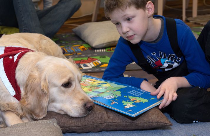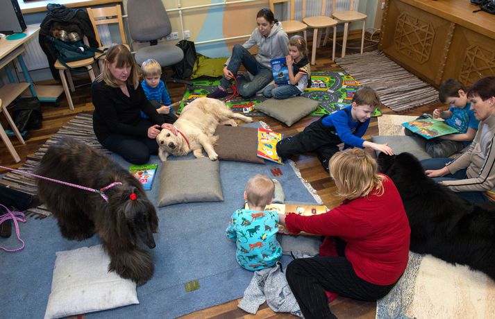 Lestrarskilningur barna aukinn með aðstoð hunda Sunna Karen Sigurþórsdóttir skrifar 6. mars 2014 09:48 Þessi stúlka les fyrir hundinn Ella, sem er af gerðinni Golden Retriver. VÍSIR/AFP Bókasafn í Eistlandi vinnur markvisst að því að auka sjálfstraust barna, auka lestrargetu þeirra og félagslega færni með því að leyfa þeim að lesa upphátt fyrir hunda. Þrír hundar lána eyru sín tvisvar í mánuði fyrir börn á öllum aldri. Aldurshópurinn er breiður, allt frá fimm ára aldri upp í sextán ára aldur. „Þetta er allra besta lausn sem til er fyrir börn með lestrarörðugleika eða lágt sjálfstraust,“ segir Ewa Roots, verkefnastjóri, við fréttastofu AFP. Börnin fá sjálf að velja fyrir hvaða hund þau vilja lesa og taka þau með sér bók að eigin vali. Þá eru börn sem eiga hunda fyrir hvött til þess að lesa fyrir þá heima. „Hundar eru aldrei gagnrýnir á mistök, ólíkt öðrum börnum og fullorðnum, og eru rólegir, góðir hlustendur.“ Mest lesið Spyr hvort skoða þurfi mögulega árekstra eiginmanns ráðherra og fráfarandi forstjóra Innlent Vísar gagnrýni á bug og gefur lítið fyrir rök lækna Innlent „Svo fær maður svona helvíti á fyrsta opnunardegi“ Innlent Sigríður Björk og Jón Karl til Bessastaða Innlent Aftur brotist inn í Húrra Reykjavík Innlent „Áratuga afturför“ og frost í greininni Innlent „Mitt mat að þetta sé ekki peninganna virði“ Innlent Einn læknir sinnir þremur stjórnunarstöðum Innlent Segist hafa rætt tvisvar við prinsinn í gini ljónsins Innlent Huldumaður gaf gullstangir til að laga vatnslagnir borgarinnar Erlent Fleiri fréttir Huldumaður gaf gullstangir til að laga vatnslagnir borgarinnar Spenna eykst á einum helgasta stað gyðinga og múslima Áfram húsleit á fyrra heimili Andrews „Mjög, mjög sorglegt“ Bandaríkjastjórn opnar síðu þar sem Evrópubúar geta séð lokað efni Andrew látinn laus Norðmenn koma af fjöllum og taka fyrir ummæli Trump Nýjar forsetaflugvélar fá Trump-litina „Besti vinur“ Epsteins ætlaði að leysa frá skjóðunni 2016 Karl III: Réttlætið verður að hafa sinn gang Viðbúnaðurinn ekki verið eins mikill frá innrásinni í Írak Andrew handtekinn á heimili sínu Rétta yfir fjórtán ára gömlum leigumorðingja Tjáningarfrelsistal tæknirisa „hreinn þvættingur“ „Grunlaus“ Wexner segist hafa verið gabbaður af Epstein Skíðahópur fórst í snjóflóði í Kalíforníu Fyrrverandi forseti Suður-Kóreu í lífstíðarfangelsi Umdeilt Friðarráð fundar í Washington í dag Tengiltvinnbílar þrefalt eyðslufrekari en framleiðendur segja Verjast fregna af viðræðum dagsins „Stjórinn“ að fá nóg og líkur á árásum Kennir Selenskí um misheppnaða gagnsókn Þrýsta á Alþjóðaorkumálastofunina að hætta við orkuskipti Reyna aftur á morgun Ákærður fyrir að skilja kærustuna eftir á fjallinu Yfir þúsund grunaðir barnaníðingar handteknir í hverjum mánuði Segir Trump setja ósanngjarnan þrýsting á Úkraínu Viðræður gengu ágætlega en ekkert fast í hendi Friðrik leggur land undir fót til að stappa stálinu í Grænlendinga Lindsay Graham hafi hellt sér yfir Frederiksen og sagt Trump geta tekið Grænland Sjá meira