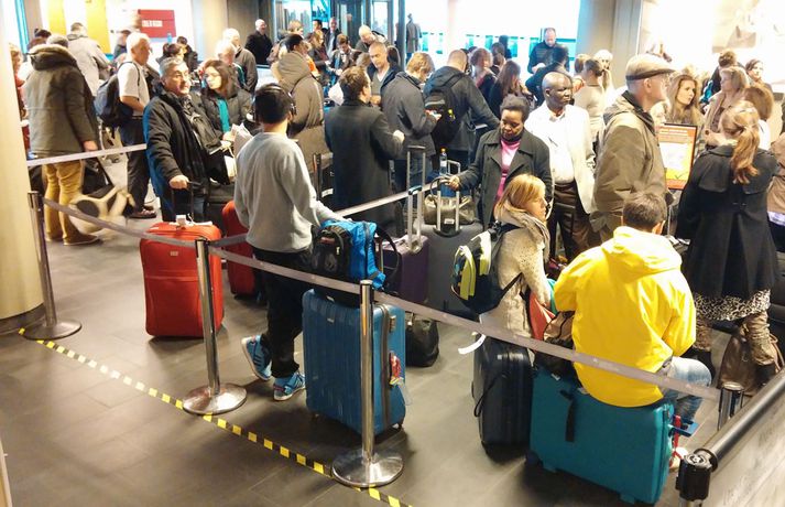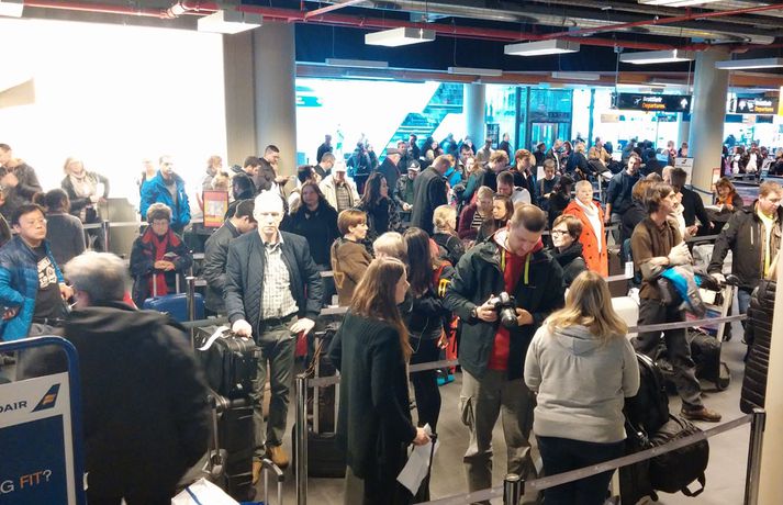 Vinna hafin á ný á Keflavíkurflugvelli Stefán Árni Pálsson skrifar 8. apríl 2014 09:09 visir/gva Vinnustöðvun er nú lokið á Keflavíkurflugvelli en verkfallsaðgerðir flugvallastarfsmanna á Keflavíkurflugvelli hófust klukkan fjögur í nótt og lauk þeim klukkan níu. Allir formann stéttarfélaganna voru á svæðinu sem og verkfallsverðir. Flugvélar streyma nú að utan á Keflavíkurvöll og lenda ein af annarri. Sex vélar lentu á nokkra mínútna fresti rétt eftir klukkan níu í morgun. Nú bíða þrír stórir breskir skólahópar á vellinum í þeirri von um að komast aftur heim. Brottför sjö véla Icelandair frá Bandaríkjunum og Kanada var frestað ytra um þrjár klukkustundir. Tvær morgunvélar Easy Jet frá Evrópu voru einnig fyrir töfum til klukkan níu. Óvenju mikil örtröð var í Leifsstöð um níu leitið þegar innritun, vopnaleit og önnur þjónusta í stöðinni hófst á ný. Næsti samningafundur í kjaradeilunni verður á fimmtudag, en viðlíka aðgerðir og núna, hafa verið boðaðar þann 23. og 25. þessa mánaðar og svo allsherjar verkfall þann þrítugasta, ef ekki semst fyrir þann tíma. Tengdar fréttir Allt flug stöðvast í fyrramálið Allt flug mun liggja niðri á milli klukkan fjögur og níu í fyrramálið og kemur það til með að snerta um fjögur þúsund farþega. 7. apríl 2014 16:18 Vinnustöðvun á Keflavíkurflugvelli Brottför sjö véla Icelandair frá Bandaríkjunum og Kanada var frestað ytra um þrjár klukkustundir vegna verkfallsaðgerða flugvallastarfsmanna á Keflavíkurflugvelli, sem hófust klukkan fjögur í nótt og standa til klukkan níu. 8. apríl 2014 07:00 Allt stefnir í verkfall á þriðjudag Samninganefndir Isavia og flugmálastarfsmanna funduðu í húsakynnum ríkissáttasemjara í dag. 400 flugmálastarfsmenn hafa boðað til fimm klukkustunda verkfallsagerða næstkomandi þriðjudag. 4. apríl 2014 19:56 Áttatíu brottfarir og lendingar í Keflavík innan verkfallstímans Þrjú skæruverkföll flugvallarstarfsmanna gætu sett úr skorðum áttatíu lendingar og brottfarir í utanlandsflugi auk röskunar á innanlandsflugi. Isavia og flugfélögin gera áætlun til að lágmarka truflunina sem gæti orðið ennþá meiri í lok apríl. 2. apríl 2014 07:00 Félag flugmálastarfsmanna boða til verkfallsaðgerða Verkfallsaðgerðir munu raska flugi um allt land þá daga sem þær standa yfir, bæði innanlands- og millilandaflugi. 31. mars 2014 11:45 Forstjóri Isavia tjáir sig um kjaradeilur Björn Óli Hauksson segir formann FFR fara með ósannindi. 3. apríl 2014 18:48 Allt stefnir í verkfall á morgun Flugvallarstarfsmenn og Isavia funduðu ekkert um helgina 7. apríl 2014 06:00 Mest lesið Harpa Elín Haraldsdóttir er látin Innlent Lögreglan innsiglaði Flóka Innlent Snúin staða Sönnu og sameiginlegt framboð virðist ekki í kortunum Innlent Ítrekar hótanir sínar og hvetur íbúa til að kjósa Cuomo Erlent Ætlar ekki að láta „óða“ Demókrata kúga sig Erlent Tveir reyndir lögreglumenn ákærðir fyrir brot í starfi Innlent Með meðvitund fastur í rústunum en lést á leið á sjúkrahús Erlent Líklegast að Reykjavíkurleiðin taki breytingum eftir umsagnir Innlent „Við vorum komin með súrefniskúta heim“ Innlent Hyggjast banna klám sem sýnir kyrkingar Erlent Fleiri fréttir Líklegast að Reykjavíkurleiðin taki breytingum eftir umsagnir Harpa Elín Haraldsdóttir er látin Snúin staða Sönnu og sameiginlegt framboð virðist ekki í kortunum Lögreglan innsiglaði Flóka „Við vorum komin með súrefniskúta heim“ Tveir reyndir lögreglumenn ákærðir fyrir brot í starfi Lögreglumenn ákærðir fyrir uppflettingar og hlerun Sækja slasaðan sjómann djúpt austur af landinu Miðflokkurinn nálgast Sjálfstæðisflokkinn óðfluga Óvænt stólaskipti skyggðu ekki á Bandaríkjareisuna Ákærður fyrir að birta fjölda nektarmynda af fyrrverandi Ekki meiðyrði hjá RÚV að lýsa yfirlýsingum Elds Smára réttilega Georgíumaður hafi kvænst Letta til þess að fá dvalarleyfi Eldur í bíl á Hellisheiði Líklegra að það gjósi nær áramótum Stíga ekki inn í Intra-málið í bili Vélfag kvartar til ESA og ræður kanónu „Væri fínt ef fullorðna fólkið myndi girða sig og setja reglur fyrir sig sjálft“ Álftin fæli bændur frá kornrækt Íslenskir unglingar veðja næst mest í Evrópu Húsnæðismálin í brennidepli og Alvotech lækkar á mörkuðum Aðalmeðferð í Súlunesmálinu frestað Viðreisn stillir upp á lista í Mosfellsbæ Styrktarfélag lamaðra og fatlaðra tekur upp nýtt nafn Foreldrar langveikra barna einangruð og endi jafnvel sem öryrkjar Vilja rýmri reglur um veiðar fjögurra fuglategunda Tvö pör handtekin og afskipti höfð af tvímenningum Grunaður um að nauðga konu þrisvar sömu nóttina „Aldrei fyrirgefanlegt þegar það er farið svona með opinbert fé“ Hjóluðu 1300 kílómetra meðfram Dóná með börnum sínum Sjá meira
