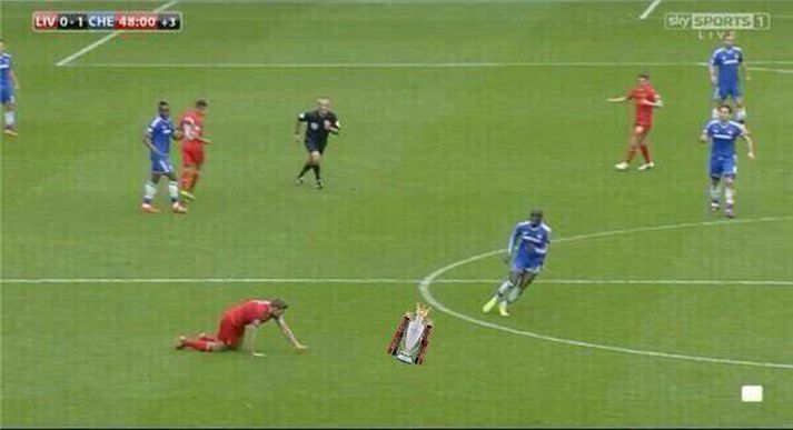 Gera stólpagrín að Gerrard á netinu 28. apríl 2014 12:00 Mourinho er hér búinn að hrifsa bikarinn af Gerrard. Hrikaleg mistök Steven Gerrard, fyrirliða Liverpool, í leiknum gegn Chelsea í gær glöddu marga netverja sem hafa farið mikinn í að stríða Gerrard og Liverpool-mönnum á netinu. Gerrard rann á vellinum og gaf Chelsea fyrra mark sitt í leiknum. Þessi mistök gætu kostað Liverpool titilinn þegar upp er staðið. Búið er að breyta fjölmörgum myndum til þess að gera grín að því er Gerrard rennur og hugsanlega missti af titlinum í leiðinni. Fleiri myndir má sjá hér að neðan. Enski boltinn Mest lesið Bunting dró orð sín til baka með tárin í augunum: „Ég er ekki meistari fólksins“ Sport Sjáðu geggjaðan snúning Alberts áður en hann skoraði frábært mark Fótbolti Sakaður um svindl á HM í pílukasti Sport Áhorfendur ærðust eftir mögulega mark mótsins í fyrsta leik Fótbolti Klappstýrur Björgvins Karls slógu í gegn Sport Óskar Hrafn um komu Arnórs Ingva: „Gífurlega dýrmætt fyrir KR“ Íslenski boltinn Ótrúleg tíðindi á HM í pílukasti: „Mikið sjokk“ Sport Freyr himinlifandi með íslensku strákana Fótbolti Óttast að Isak hafi fótbrotnað Enski boltinn „Ef þið væruð Antoine Semenyo, hvert mynduð þið fara?“ Enski boltinn Fleiri fréttir „Þetta mun ekki buga okkur“ Guardiola mun vigta leikmenn Man City eftir jólin „Ef þið væruð Antoine Semenyo, hvert mynduð þið fara?“ Sjáðu mörkin: Rogers sá um Manchester United Óttast að Isak hafi fótbrotnað Tvenna frá Rogers tryggði Villa sigur gegn Manchester United Fimmta sinn sem Arsenal er á toppnum um jólin: Unnu ekki titilinn í fyrstu fjögur skiptin „Viljum við að okkar verði minnst fyrir að vera skræfur?“ „Ef dómarinn hefði sinnt sínu starfi almennilega hefði Romero ekki fengið spjald“ Haaland gaf barnabarni Hareide gjöf Sjáðu mörkin úr enska: Sviptingar, sænskt þema og svakalegar tæklingar Calvert-Lewin hættir ekki að skora Gyökeres skaut Arsenal aftur á toppinn Slot fámáll um stöðuna á Isak Gleði og sorg í sigri Liverpool Dramatík er Broja reyndist hetja Burnley Haaland frábær er Manchester City komst á toppinn Andri Lucas skoraði í langþráðum sigri Blackburn Chelsea vann upp tveggja marka forskot á St James' Park Ekkert fararsnið á Guardiola sem segir að City verði að vera undirbúið Tíu bestu mörkin úr leikjum Liverpool og Tottenham Salah bað samherjana afsökunar Lineker fokillur við blaðamann: „Þvílíkt kjaftæði“ Skírði soninn LFC og Mac Allister lét draum feðganna rætast Jóga og pílates lykillinn að snöggri endurkomu Fantasýn: „Hann setti allt á 3 og það kom upp 19“ Alexander Isak fékk sænska gullboltann „Salah líkaði ekki að vera í skugganum af Isak og Wirtz“ Amorim vill Neves Benti á hinn íslenska Dan Burn Sjá meira