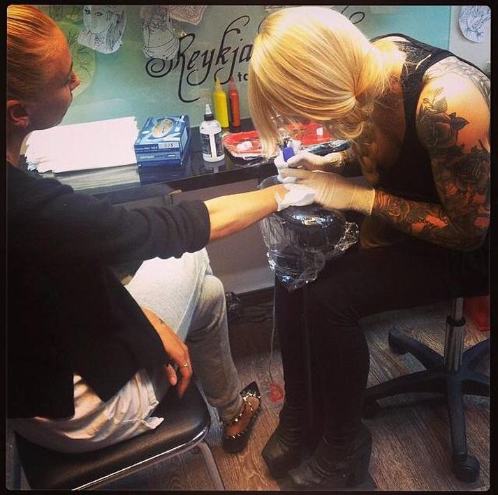 "Hún var voða næs og rosa ánægð með flúrin“ Ellý Ármanns skrifar 25. apríl 2014 16:15 Ólafía Kristjánsdóttir flúraði Medinu. „Hún var voða næs og rosa ánægð með flúrið,“ segir Ólafía Kristjánsdóttir, 28 ára, húðflúrari á Reykjavík Ink á Frakkastíg 7 í Reykjavík sem húðflúraði dönsku söngkonuna Medinu í gær. Söngkona fékk sér eitt gat í eyra og 3 lítil húðflúr. Eitt af húðflúrunum sem hún fékk sér var „Mediva“ sem hún setti á úlnliðinn til heiðurs aðdáendum sínum en þeir kalla hana Medivu. Mynd af umræddu húðflúri birti Medina á instagram síðunni sinni.Húðflúrarinn, Ólafía, vakti verðskuldaða athygli á Íslandsmóti IFBB í fitness sem fram fór í Háskólabíó síðustu helgi en líkami hennar er húðflúraður að miklu leyti.Ólafía starfar á húðflúrstofunni Reykjavík Ink.Ólafía húðflúrari á pósunámskeiði fyrir Íslandsmótið í vaxtarrækt sem fram fór í Háskólabíó á dögunum. Húðflúr Tengdar fréttir Danska stórstjarnan Medina á Íslandi Söngkonan Medina póstaði myndum af sér í Bláa Lóninu í dag. 22. apríl 2014 13:30 "Ég veit ekki hvað ég er með mörg húðflúr“ Ólafía Kristjánsdóttir, 28 ára, vakti verðskuldaða athygli á Íslandsmóti IFBB í fitness í ár. 22. apríl 2014 11:15 Mest lesið Helvíti á jörðu: Emmsjé Gauti minnti á líkamsræktarþjálfara í maníu Gagnrýni Hefur misst vini og kunningja vegna skoðana sinna Lífið Veikindi eyðilögðu líka stóru stund Manúelu Lífið „Ég hugsa til þín á hverjum einasta degi“ Lífið Leitin á Svínafellsjökli sem hefur enn ekki skilað árangri Lífið Stjörnulífið: Óskar tíkunum gleðilegra jóla Lífið Einmana um jólin og sex góð ráð Áskorun Bestu, stærstu, slökustu og verstu myndir ársins 2025 Bíó og sjónvarp Wire-stjarna látin langt fyrir aldur fram Bíó og sjónvarp Jólatónleikar eru ekki tónlist. Þeir eru neyðaraðgerð Gagnrýni Fleiri fréttir „Ég hugsa til þín á hverjum einasta degi“ Stjörnulífið: Óskar tíkunum gleðilegra jóla Veikindi eyðilögðu líka stóru stund Manúelu Hefur misst vini og kunningja vegna skoðana sinna Leitin á Svínafellsjökli sem hefur enn ekki skilað árangri Krakkatía vikunnar: Ísskápastríð, Eivör og Grafarvogur „Við byrjuðum að hlusta á jólalög í júlí“ Frægir fundu ástina 2025 Íslenska stelpan sem gerðist mormóni „Við erum öll dauð hvort sem er“ Fréttatía vikunnar: Rob Reiner, Dóra Björt og fullir unglingar 500 Esjuferðir á árinu: „Sumir hrista bara hausinn og lygna augunum“ Útgefandi Walliams lætur hann róa Fáklæddir barþjónar þegar Regnboginn opnaði í Bíó Paradís Þriðja stigs krabbameinið það besta sem kom fyrir hann Dúnninn bakaður í fjóra sólarhringa til að drepa allt í honum Heilsu krónprinsessunnar hrakar gríðarlega Pete orðinn pabbi Nýkominn úr meðferð og „sjaldan verið betur nýsleginn túskildingur“ Laufey á lista Obama „Ég heyrði þá kalla á mig en gat engu svarað“ Opnar sig í fyrsta sinn: Kyssti yfirmanninn í fyrsta sinn þetta kvöld Sex hundruð ára kastali Björns í Frakklandi svo gott sem klár Fyrirsát að Valgerði, Stund Pírata og meint alzheimer Þráins Bertelssonar „Það jafnar sig enginn eftir svona og við munum aldrei gera það“ Ungir sjálfstæðismenn gefa út vandræðalegt fjölskyldudagatal Keough sögð líffræðileg móðir Benjamin Travolta Rússland aftur í Eurovision - undirskriftasöfnun Óskarsverðlaununum streymt á Youtube Karmað muni bíta þjófinn í rassinn þegar títan og glyttan byrja að dansa í hitanum Sjá meira