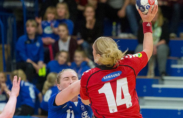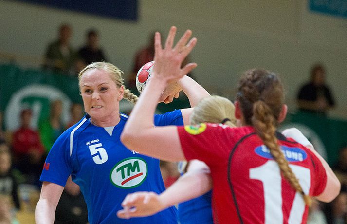 Umfjöllun, viðtöl og myndir: Stjarnan - Valur 22-20 | Deildarmeistararnir komnir yfir Guðmundur Marinó Ingvarsson í Mýrinni skrifar 7. maí 2014 16:36 Vísir/Daníel Stjarnan vann Val 22-20 í fyrsta leik liðanna í úrslitum Olís deildar kvenna í handbolta í Mýrinni í Garðabæ í kvöld. Stjarnan var fjórum mörkum yfir í hálfleik 12-8.Daníel Rúnarsson, ljósmyndari Vísis og Fréttablaðsins, var á leiknum í kvöld og náði þessum skemmtilegum myndum hér fyrir ofan og neðan. Stjarnan mætti mjög ákveðin til leiks og fór sérstaklega Jóna Margrét Ragnarsdóttir á kostum í sókninni í byrjun leiks. Hún kom liði sínu á bragðið og var Stjarnan mun betri lengst framan af. Varnarleikur Stjörnunnar var frábær og Florentina Stanciu naut sín í markinu. Valur átti samt sína kafla í leiknum. Vörnin var á köflum góð og framliggjandi vörnin sem liðið fór í eftir að Stjarnan náði sex marka forystu snemma í seinni hálfleik, var mjög öflug. Valur varð fyrir miklu áfalli í fyrri hálfleik þegar Ragnhildur Rósa Guðmundsdóttir skaddaðist á hásin og kom ekki meira við sögu. Ekki bætti úr skák þegar Rebekka Rut Skúladóttir snéri sig á ökkla um miðbik seinni hálfleiks. Það þýddi að Valur þurfti að færa vörnina aftar en sóknarleikur Stjörnunnar var farinn að hiksta verulega. Rebekka jafnaði sig og kom aftur inn þegar fimm mínútur voru til leiksloka og Valur gerði loka tilraun til að fá eitthvað út úr leiknum. Segja má að tapaðir boltar hafi farið illa með Val í leiknum og einn slíkur þegar liðið hafði náð að minnka muninn í þrjú mörk og þrjár mínútur voru eftir, gerði Val erfitt fyrir en liðið náði þó að minnka muninn í eitt mark þegar hálf mínúta var eftir en það var of lítið og of seint því Helena Örvarsdóttir gerði út um leikinn þegar skammt var eftir. Stjarnan leiðir einvígið 1-0 en annar leikur liðanna verður leikinn í Vodafone höllinni að Hlíðarenda á föstudagskvöldið. Jóna Margrét: Gerðum þetta óþarflega spennandi„Við fórum að bakka í staðin fyrir að halda línunum okkar og fórum að hægja á leiknum sem er ekki gott fyrir okkur,“ sagði Jóna Margrét Ragnarsdóttir sem fór fyrir Stjörnunni í sóknarleiknum í dag um síðustu mínútur leiksins í kvöld. „Við lokuðum fyrri hálfleiknum ágætlega og byrjuðum seinni vel. Svo fórum við að hægja á leiknum og þá fóru þær að saxa á og við gerðum þetta óþarflega spennandi í restina. „Maður þarf að klára þetta með stæl. Þetta er síðasta tímabilið og vonandi nær maður að gefa allt í þessa síðustu leiki,“ sagði Jóna sem fór mikinn í upphafi og var sá sóknarmaður Stjörnunnar sem reyndi hvað mest enda tók hún yfir 20 skot í leiknum. „Varnarleikur var mjög góður þangað til við fórum að bakka í restina. Það kemur aftur upp og vonandii höldum við þessu. „Þetta er bara 1-0 og er rétt að byrja. Við þurfum að halda okkar baráttu og gleði og vonandi lendir þetta réttum megin,“ sagði Jóna. Anna Úrsúla: Eins og við værum ekki tilbúnar í leikinn„Það dugar ekki að hrökkva í gang þegar það eru tíu mínútur eftir af leiknum. Sannarlega á maður ekki möguleika á að vinna dollu þannig,“ sagði Anna Úrsúla Guðmundsdóttir línumaður Vals og varnartröll í kvöld. „Það er eins gott að það sé stutt í næsta leik svo við getum hysjað upp um okkur buxurnar. Annars eigum við þetta ekkert skilið. „Við náum ekki að nýta okkur okkar styrkleika sem er vörn og hraðaupphlaup. Það kom ekki fyrr en í lokin. Það þarf að vera 100% allan leikinn til að vinna Stjörnuna. „Sóknarleikurinn var vandræðalegur. Það var eins og við værum ekki tilbúnar í leikinn. Allar sem ein og það er eitthvað sem við þurfum að slípa fyrir næsta leik. „Þegar maður er með svona marga tæknifeila þá er það svo lýjandi. Það gengur ekkert upp. Þetta þurfum við að fara yfir og laga fyrir næsta leik,“ sagði Anna Úrsúla en þrátt fyrir öll þessi vandræði var Valur ekki langt frá því að koma þessum leik í framlengingu og smá heppni í lokin hefði geta gjörbreytt stöðunni. „Maður verður að vera bjartsýnn og skoða betur þessar síðustu tíu mínútur og taka það með okkur í næsta leik. Þá eigum við kannski séns.“Vísir/DaníelVísir/DaníelVísir/DaníelVísir/DaníelVísir/DaníelVísir/DaníelVísir/DaníelVísir/DaníelVísir/Daníel Olís-deild kvenna Mest lesið Vonast til að komast í Kórinn: „Menn hafa aldrei séð annað eins“ Fótbolti Landsleiknum aflýst og framhaldið óljóst Fótbolti Fær þrjár milljónir á dag næstu sex árin fyrir að gera ekkert Sport Stöðufundur í Laugardal klukkan 10:30 Fótbolti Enska úrvalsdeildin í jólaköttinn Enski boltinn Elsta konan til klára Járnkarlinn Sport Markvörður Inter banaði háöldruðum manni í hjólastól Sport Segir að Slot verði að taka tvo leikmenn út úr Liverpool-liðinu Enski boltinn Landsliðskonur aðstoðuðu ökumenn í vanda Fótbolti Nýi íþróttastjóri Kjartans stal mörgæs og endaði í fangelsi í Singapúr Fótbolti Fleiri fréttir Teitur inn í landsliðið Gísli bjó til meira en þriðjung markanna Haukur magnaður í sigri Löwen Blær skoraði þrjú og lagði upp jöfnunarmarkið KA/Þór sótti sigur gegn Fram og stigalausar Stjörnukonur Fram kjöldró HK og spenna í Eyjum Meistararnir unnu gegn ÍBV og ÍR hafði betur gegn Selfyssingum Donni og félagar björguðu stigi undir lokin Afturelding komst upp að hlið Hauka Seldu bleika búninginn hennar Herrem fyrir meira en milljón „Leið vel þegar ég fór inn úr færinu“ Uppgjörið FH - Haukar 27-26 | Birgir Már tryggði FH sigur eftir spennutrylli Bernard fór mikinn en Valsmenn sluppu með sigurinn Fyrsti sigur Þórsara síðan í byrjun se