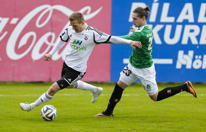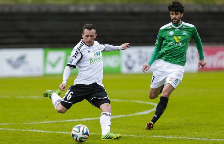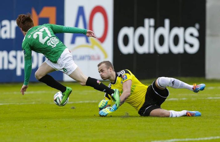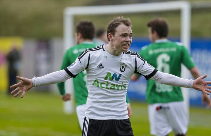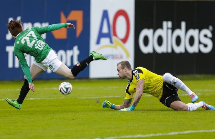 Umfjöllun, viðtöl, einkunnir og myndir: FH - Breiðablik 1-1 | Blikar héngu á stiginu Henry Birgir Gunnarsson í Kaplakrika skrifar 5. maí 2014 14:55 FH-ingar geta engum nema sjálfum sér um kennt að hafa ekki tekið öll stigin gegn Blikum í kvöld. Þeir óðu í færum í fyrri hálfleik en nýttu aðeins eitt þeirra. Leikurinn dó svo í síðari hálfleik. Vilhelm Gunnarsson, ljósmyndari Vísis og Fréttablaðsins, var á leiknum í kvöld og tók þessar myndir hér fyrir ofan. Leikurinn byrjaði með látum því strax á 3. mínútu voru gestirnir komnir yfir. Tómas Óli komst einn í gegn og kláraði færið sitt með stæl. Hann virkaði rangstæður og miðað við sjónvarpsmyndir var hann það. Ekki var flaggað og því stóð markið. Eftir markið tóku FH-ingar algjörlega yfir leikinn og Blikar komust vart yfir miðju. FH-ingar fengu fjölda góðra færa en virtist algjörlega fyrirmunað að skora. Markið kom þá á endanum og kom það upp úr horni frá Ólafi Páli. Pétur skallaði boltann frá fjærstöng að marki. Þar var Hólmar Örn Rúnarsson mættur og hann setti boltann í markið með öxlinni. Það má og telur jafn mikið og öll hin mörkin. Jafnt á með liðunum í leikhléi og með ólíkindum að FH skyldi aðeins skora eitt mark í hálfleiknum. Ólafur Kristjánsson, þjálfari Blika, var eðlilega ósáttur við leik sinna manna í fyrri hálfleik. Hann gerði því tvær breytingar á liðinu í hléi og færði Stefán Gíslason upp á miðjuna. Þessar breytingar hjá Ólafi skiluðu sínu því varnarleikur Blikanna var mun þéttari. FH sem fyrr með boltann en var ekki að skapa sömu færi og í fyrri hálfleik. Síðari hálfleik verður best lýst sem dauðanum á skriðbeltunum. Blikar sóttu lítið og FH dútlaði með boltann en gerði ekkert. Þeim tókst ekki að opna vörn Blikanna og Blikarnir þurftu sjaldnast að hafa mikið fyrir því að loka á þá. FH komst næst því að klára leikinn á 90. mínútu er skalli Kassim fór í stöngina. FH hafði aðeins áhuga á að vinna leikinn en Blikar héngu á stiginu. Frábær fyrri hálfleikur hjá FH en Blikar lokuðu vel fyrir í seinni og héngu á stiginu. Góð uppskera hjá þeim miðað við hvernig leikurinn spilaðist.Ólafur: Keyrðum þetta jafntefli heim "Ég er sáttur við stigið eins og leikurinn spilaðist. FH-ingarnir voru grimmari, sterkari og heilt yfir betri út á vellinum. Við keyrðum þetta jafntefli heim og ég er sáttur við það," sagði Ólafur Kristjánsson, þjálfari Blika. Hans menn voru stálheppnir að vera ekki undir í leikhléi. Ólafur gerði síðan breytingar á sínu liði og fyrir vikið varð varnarleikur liðsins allt annar. "Við verðum að skoða aðeins okkar menn og þeirra. Þeir voru með hávaxnari menn sem eru sterkari líkamlega. Þeir nýttu sér það. Ég varð rólegri þegar við vorum komnir með stærri og þyngri menn inn á völlinn." Ólafur segist ekki hafa áhyggjur af neinu sérstöku eftir þennan leik. "Við skoðum það sem þarf að laga. Við vorum að spila tæpa bolta á köflum upp völlinn. Við getum lagað þetta allt. Það er ekkert áhyggjuefni." Ólafur sagðist ekki geta lagt mat á mark Blikaliðsins sem margir töldu vera rangstæðu. "Það var ómögulegt að sjá það frá mínu sjónarhorni."Heimir: Tveggja rútu varnarleikur hjá Blikum Heimir Guðjónsson, þjálfari FH, var merkilega léttur eftir leik þó svo hans menn hefðu misst af tveimur stigum. "Ég er kannski ekki í kastinu að hafa ekki fengið öll stigin en auðvitað eru það vonbrigði að fá ekki þrjú stig á heimavelli," sagði Heimir. "Það voru forsendur fyrir því að fá öll stigin. Mér fannst við miklu betri í þessum leik. Lentum i basli fyrsta korterið og fengum á okkur mark. Unnum okkur síðan inn í leikinn og vorum sterkari aðilinn það sem eftir lifði leiks." Menn sem fylgdust með leiknum í sjónvarpinu sögðu að mark Blika hefði verið rangstöðumark. "Ég hef ekki séð þetta atvik og ætla ekki að tjá mig um það fyrr en ég hef séð það. Í seinni og fyrri hálfleik fengum við fín færi sem við náum ekki að nýta. "Blikarnir spiluðu sterkan varnarleik. Lágu til baka og sérstaklega eftir því sem leið á leikinn. Þetta var tveggja rútu varnarleikur hjá þeim." FH gekk illa að skapa sér færi í seinni hálfleik en Heimir brást ekki við því fyrr en seint í hálfleiknum. "Mér fannst vera góð holning á liðinu. Það hefði mátt vanda fyrirgjafirnar aðeins meira. Það var pínu klaufagangur og smá ónákvæmni. Við getum samt verið sáttir við spilamennskuna í heild sinni en ekki við að fá aðeins eitt stig."Blikar höfðu oft heppnina með sér í kvöld.Vísir/Vilhelm Pepsi Max-deild karla Mest lesið Hetja Englands á EM sleit krossband Enski boltinn Lofar frekari fjárfestingum Enski boltinn „Búnir að sýna hvað við getum verið lélegir“ Körfubolti Haukur Helgi: Höfum ekki verið að spila góðan körfubolta Körfubolti „Getum verið fjandi góðir“ Körfubolti ÍR áfram eftir sigur í Mosfellsbæ Handbolti Uppgjörið: Þýskaland - Ísland 42-31 | Þrot í Þýskalandi Handbolti Uppgjörið: Valur - Grindavík 55-90 | Taplausir Grindvíkingar kjöldrógu Val Körfubolti Uppgjörið: Keflavík - Þór Þ. 86-82 | Þarf ekki alltaf að vera fallegt ef það virkar Körfubolti KR - ÍA 109-75 | KR-ingar sýndu allar sínar bestu hliðar þegar þeir burstuðu Skagamenn Körfubolti Fleiri fréttir Tölur úr Bestu: Hallgrímur Mar bjó til langflest færi „Mjög sáttur með samninginn“ „Hefði séð eftir því alla ævi“ Magnús Már í viðræðum við HK Uppgjörið: Ísland - Norður-Írland 3-0 | Áfram hluti af elítunni Tölur úr Bestu 2025: Klúðraði langflestum dauðafærum í sumar FH bíður með að tilkynna nýjan þjálfara Óskar Hrafn fer ekki fet Birnir frá Akureyri í Gar