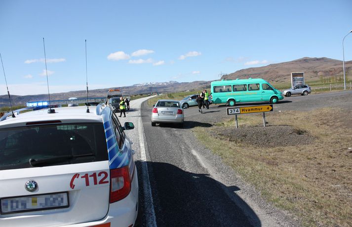 Harkaleg aftanákeyrsla á skólabíl á Suðurlandsvegi Magnús Hlynur Hreiðarsson skrifar 19. maí 2014 16:28 Mynd af slysstað. Mynd/Magnús Hlynur Hreiðarsson Harður árekstur varð á fjórða tímanum á Suðurlandsvegi þegar fólksbíll keyrði aftan á skólabíl sem var að koma úr Hveragerði og ætlaði að beygja upp Hvammsveg í Ölfus með tvö skólabörn á leið heim úr skólanum.Bíllinn var illa leikinn eftir áreksturinn.Mynd/Magnús Hlynur HreiðarssonFlytja þurfti fólksbílinn í burtu með kranabíl. Ökumaður bílsins fór á Heilsugæslustöð Selfoss til skoðunar. Börnin voru bæði í öryggisbelti í skólabílnum. Lögreglan á Selfossi fer með rannsókn málsins. Mest lesið Starfsmaður grunaður um kynferðisbrot á leikskóla Innlent Gagnheiðargöng verði sáttaleið Austfirðinga Innlent Skógareldur ógnar byggð í Álasundi Erlent Staðfesta andlát Larijani og Soleimani Erlent Lífshættuleg líkamsárás: Fimm úrskurðaðir í gæsluvarðahald Innlent Hóta hefndum fyrir drápið á Larijani Erlent Skárri staða í Álasundi Innlent Umsókn Samhjálpar samþykkt en afgreiðslu frestað um viku Innlent Kosningavaktin 2026: Landsmenn kjósa sér sveitarstjórnir Innlent Geti ekki starfað undir Bandaríkjaforseta með góðri samvisku Erlent Fleiri fréttir Samþykktu að víkja liðhlaupum úr Sjálfstæðisflokknum úr nefndum og ráðum Lífshættuleg líkamsárás: Fimm úrskurðaðir í gæsluvarðahald Hættustigi aflýst og rýmingu aflétt á Ísafirði Skárri staða í Álasundi Umsókn Samhjálpar samþykkt en afgreiðslu frestað um viku Stefán Þór leiðir jafnaðarmenn í Fjarðabyggð Starfsmaður grunaður um kynferðisbrot á leikskóla Gagnheiðargöng verði sáttaleið Austfirðinga Framtíð Foreldrahúss í óvissu: Nær ekki í Ingu Sæland Ákvarða stýrivexti í skugga versnandi verðbólguhorfa Hugsanleg veggjöld á Reykjanesbraut og Suðurlandsvegi: „Þessi áform mega ekki ná fram að ganga“ Ekið á skólarútu Viðskiptavinir hafi fengið fjölda svikapósta Aðlögun að ESB sé þegar hluti af daglegu lífi Komu biluðum báti til bjargar Leita til háskólans fyrir íslenskupróf Mesta kvikusöfnun á milli eldgosa frá upphafi eldgosahrinu Niðurrifið á göngubrúnni hafið Vegagerðin hafnaði tilboði Icelandair í Ísafjarðarflugið Leggur til að atkvæðagreiðslunni verði frestað Alvarlegt að svo ill meðferð á dýrum sé metin refsilaus Þorsteinn tekur við formennsku af Fanneyju Birnu Vilja hætta við Borgarlínu en stórefla strætisvagnakerfið Bein útsending: Ársfundur Samorku Atvinnuhúsnæði á Ísafirði rýmt eftir snjóflóð Kviknaði í kaffibrennsluofni Vaxtaákvörðun framundan og snjóflóðahætta fyrir vestan Um 44 prósent hlynnt forgangsröðun í samgönguáætlun Yfirheyrslur gætu staðið yfir fram á kvöld Árekstur við Suðurlandsbraut Sjá meira