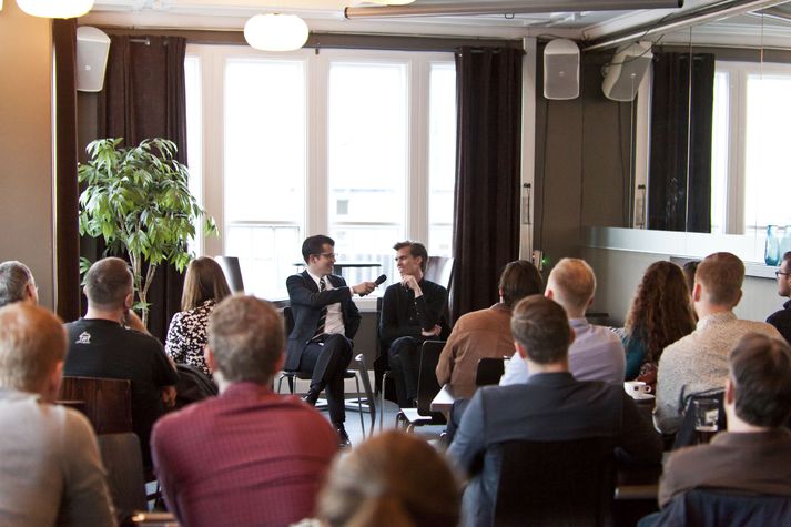 Startup Iceland hefur boðið upp á fyrirlestraröð á Sólon undanfarið og nú á fimmtudag var Guðmundur Jörundsson, eða JÖR, meðal þeirra sem héldu tölu fyrir gesti. Viðburðirnir ganga út á það að tveir til þrír einstaklingar frá sitthvoru fyrirtækinu sem farið hafa í gegnum frumkvöðlaferli tala stuttlega um sína upplifun þegar kemur að því að stofna og reka fyrirtæki. Ókeypis er inná viðburðina en þeir eru haldnir til að hita upp fyrir Startup Iceland-ráðstefnuna sem haldin verður í sumar. Næsti fyrirlestur fer fram fimmtudaginn 29. maí. Guðmundur Jörundsson.Guðmundur Jörundsson og Gunnar Örn Petersen, stofnendur Jör.Bala Kamallakharan.Viggó Ásgeirsson, markaðsstjóri og einn af stofnendum Meniga.